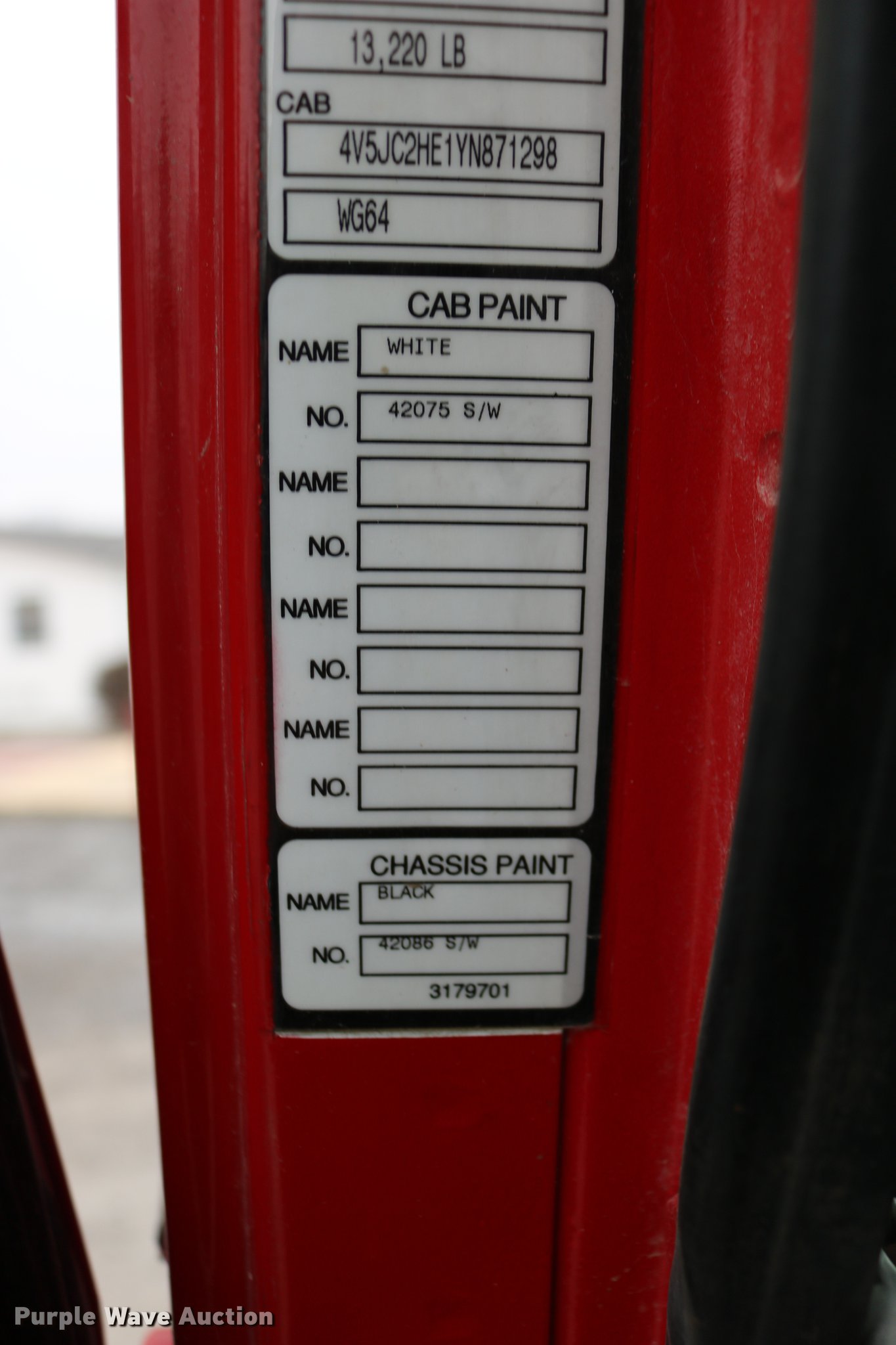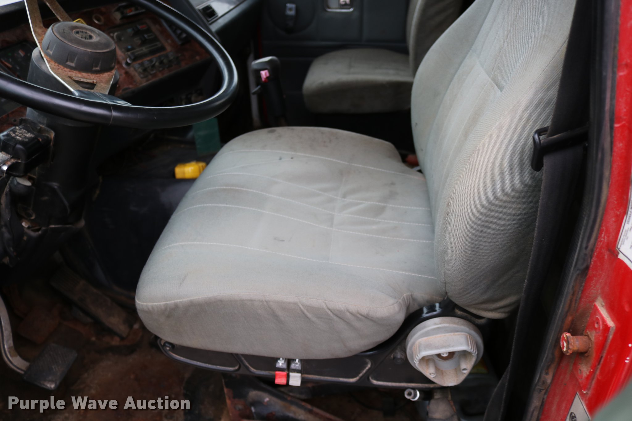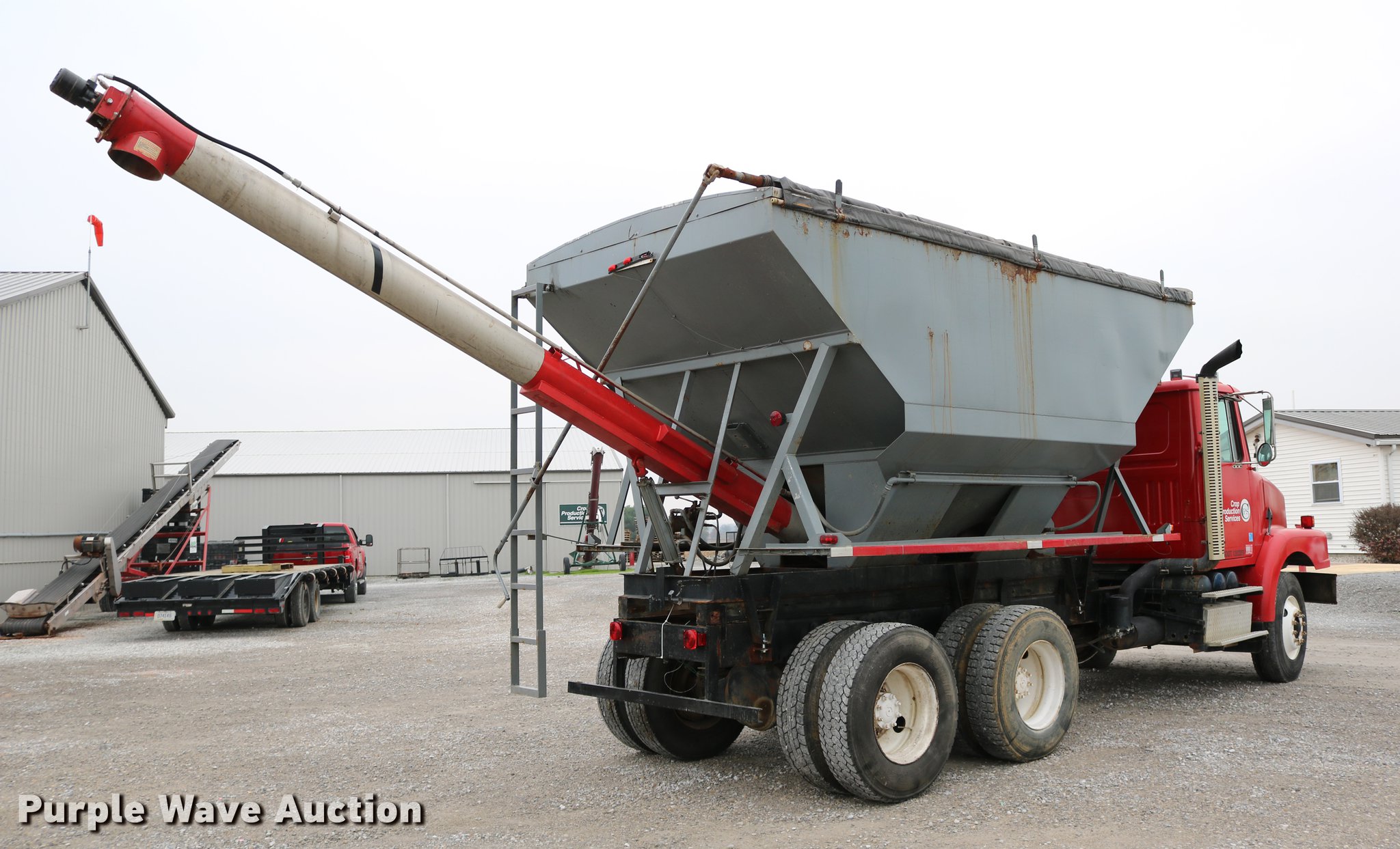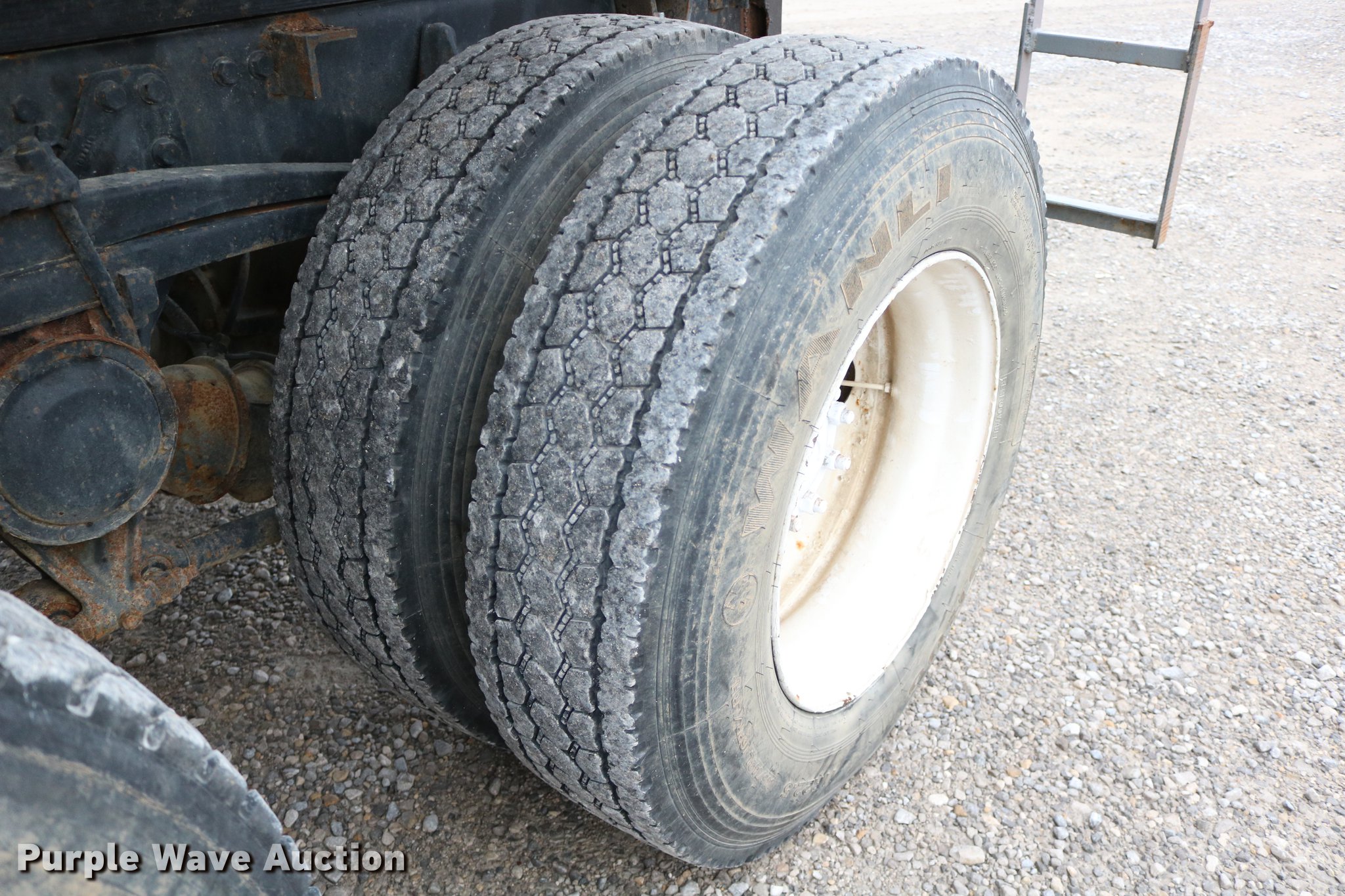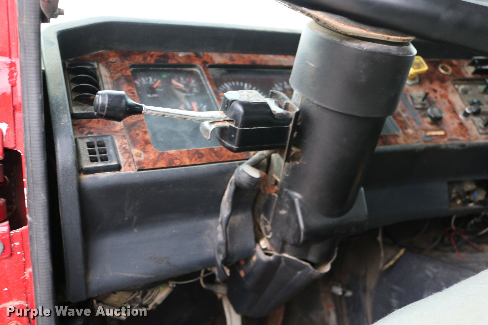 Purple Wave is selling a used Fertilizer or Feed Delivery Truck in Kentucky. This item is a 2000 Volvo WG fertilizer truck with the following: 168,345 miles on odometer, 1,701 hours on meter, Volvo VE D7 6.7L L6 turbo diesel engine, 700 HP, Eaton Fuller RTP-11908LL 10 speed manual transmission, Inter-axle differential lock, Tandem axle, AC and heat, Tilt, Air suspension seat, Block heater, 15'10"L x 95.5"W fertilizer bed, 19.5'L x 8" diameter discharge auger, Rear hydraulic lift, Roll over tarp, Rear/ground controls, 4:88 gear ratio, 196" wheelbase, Spring over walking beam suspension, 11R22.5 tires, GVWR 55,000 lbs, FAWR 13,220 lbs, Windshield cracked, Non-operational AC, No belt on AC compressor, No AC and heat fan switch, Unit# 78010/17254