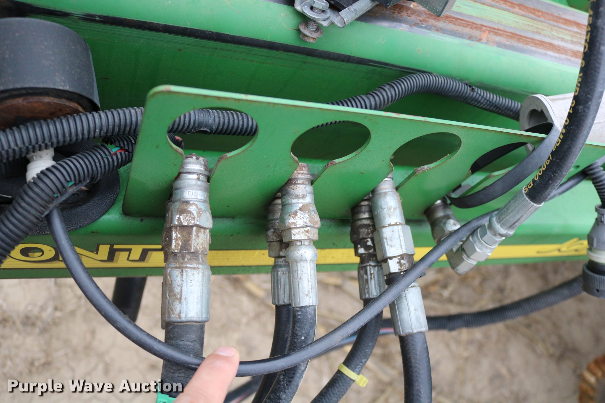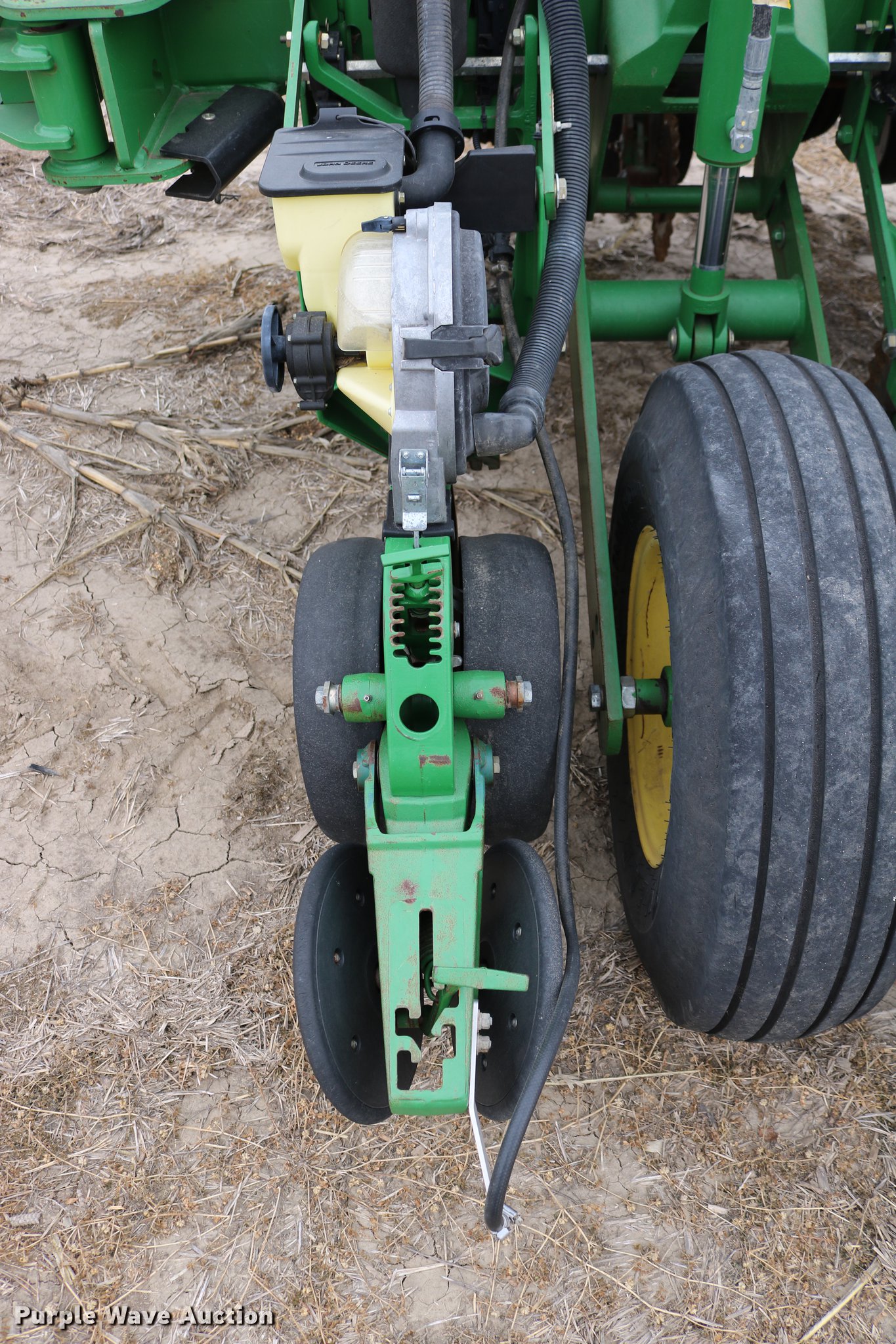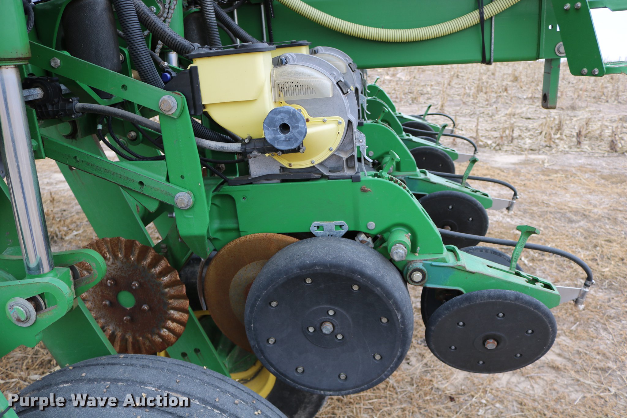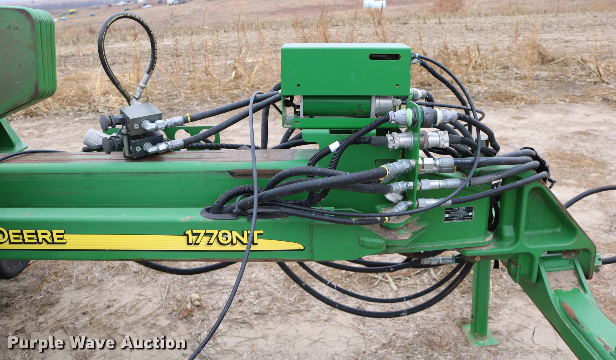 Purple Wave is selling a used Planter in Kansas. This item is a 2011 John Deere 1770NT no-till planter with the following: 16 row units, 30" row spacing, Hydraulic front fold, Bulk fill system, (2) 50 bushel compartments, Air delivery, Vacuum metering, Hydraulic meter drive, Pneumatic down pressure, No-till coulters, Double disk openers, Double gauge wheels, Double rubber closing system, Liquid fertilizer tank, Off-set coulter application, Piston pump, John Deere monitor, Two point, (4) 10.00-15 transport tires, (4) 10.00-15 drive/outside tires, Serial 1A01770PEAM740263