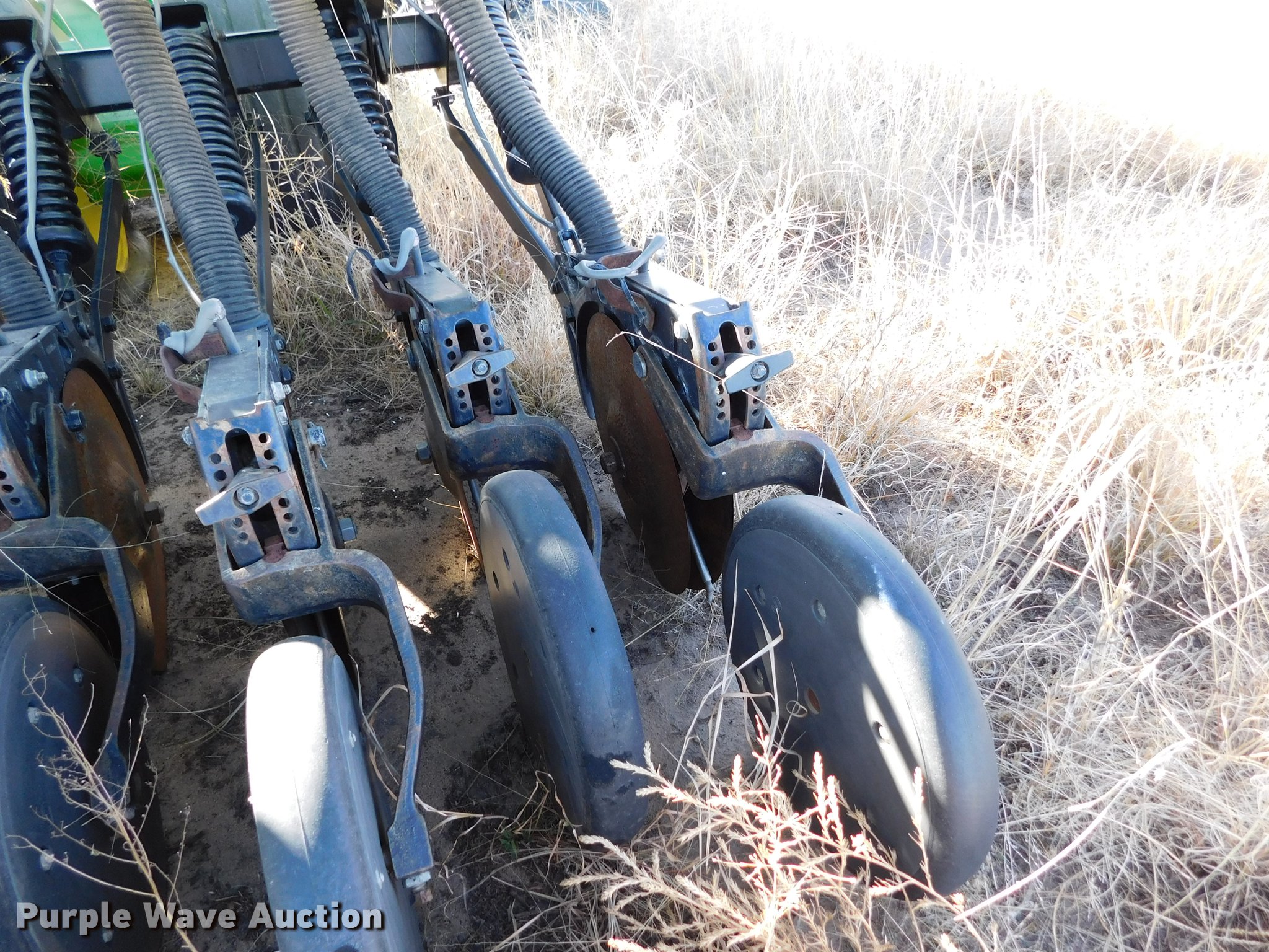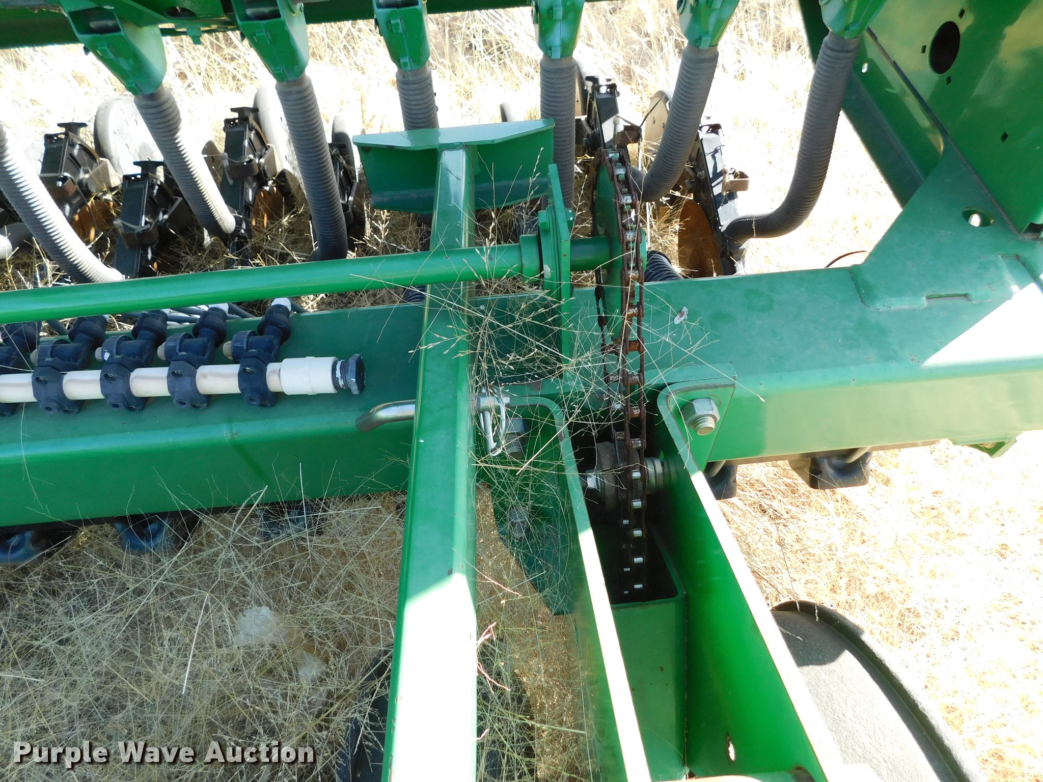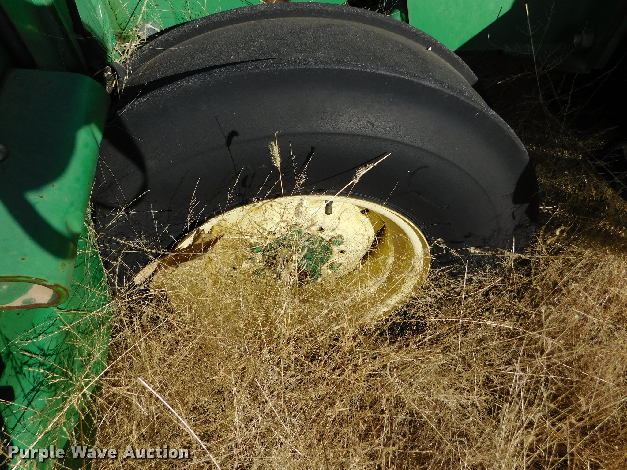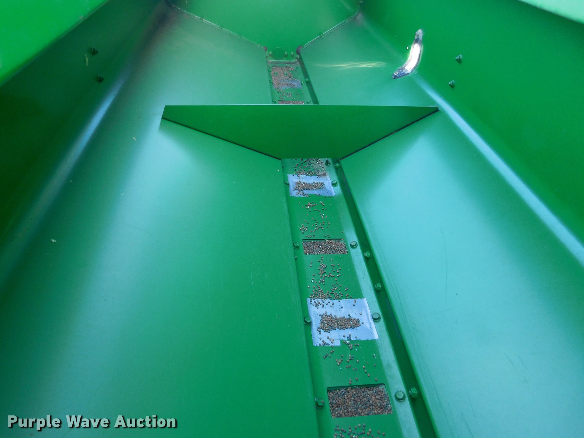 Purple Wave is selling a used Grain Drill or Seeder in Kansas. This item is a John Deere 455 grain drill with the following: 35'W, 56 row units, 7.5" row spacing, Hydraulic front fold, Bulk fill system, Ground meter drive, Double disk openers, Single rubber closing system, Transport lights, Fertilizer manifolds, Stainless steel tube delivery, Pin hitch, (4) 11L-15SL transport tires, (4) 7.60-15 drive/outside tires, Fire damage, Serial N00455X700363, Unit# A303866P00