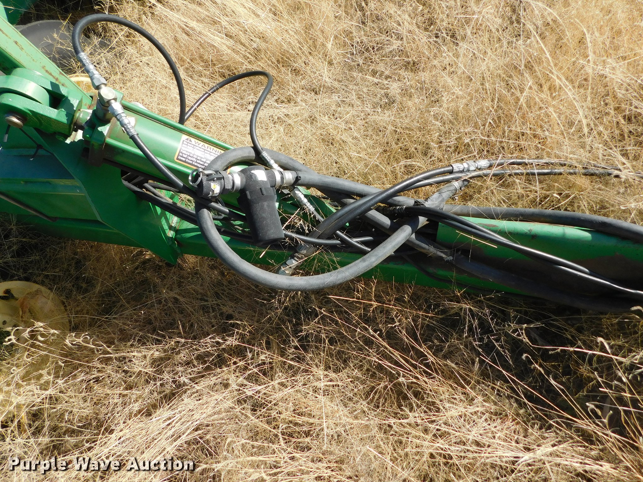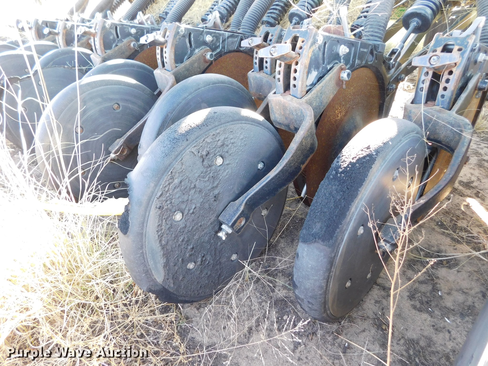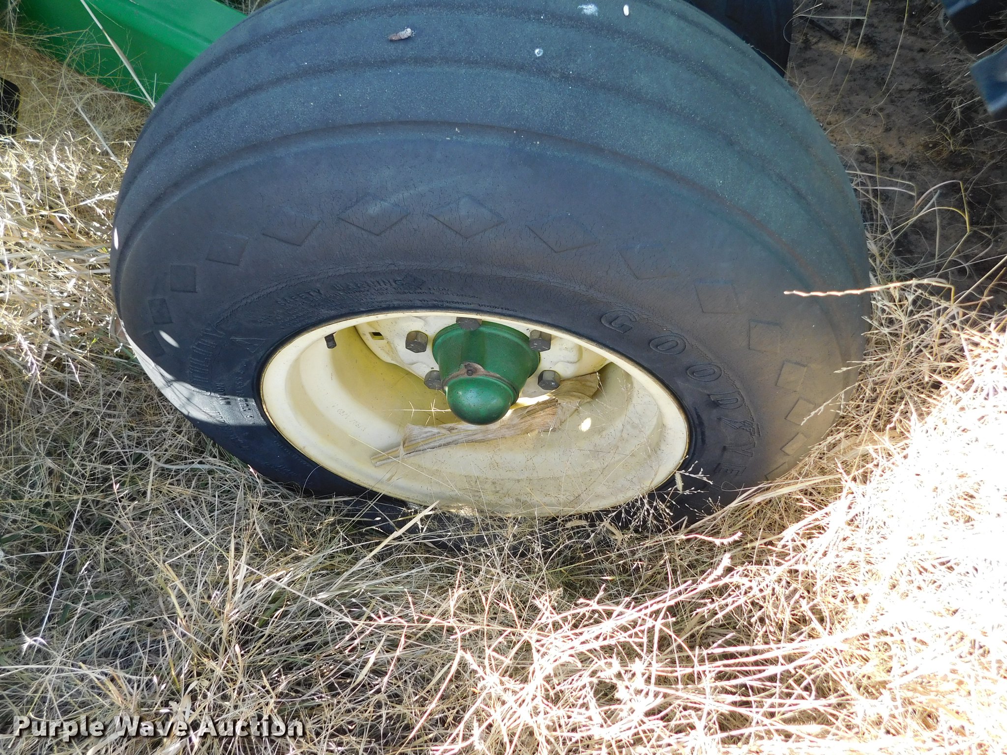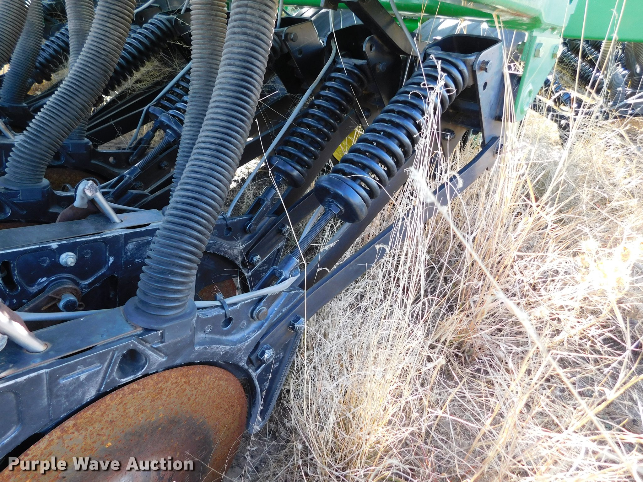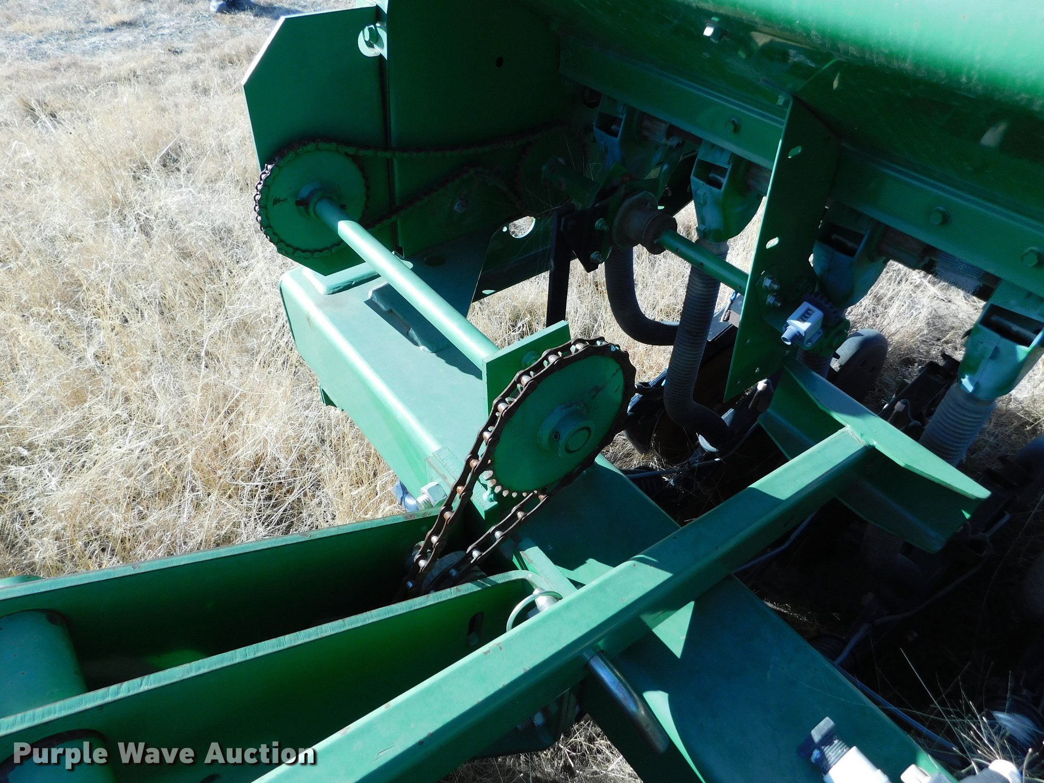 Purple Wave is selling a used Grain Drill or Seeder in Kansas. This item is a John Deere 455 grain drill with the following: 35'W, 56 row units, 7.5" row spacing, Hydraulic front fold, Bulk fill system, Ground meter drive, Double disk openers, Single rubber closing system, Transport lights, Fertilizer manifolds, Stainless steel tube delivery, Pin hitch, (4) 11L-15SL transport tires, (4) 7.60-15 drive/outside tires, Fire damage, Serial N00455X700363, Unit# A303866P00