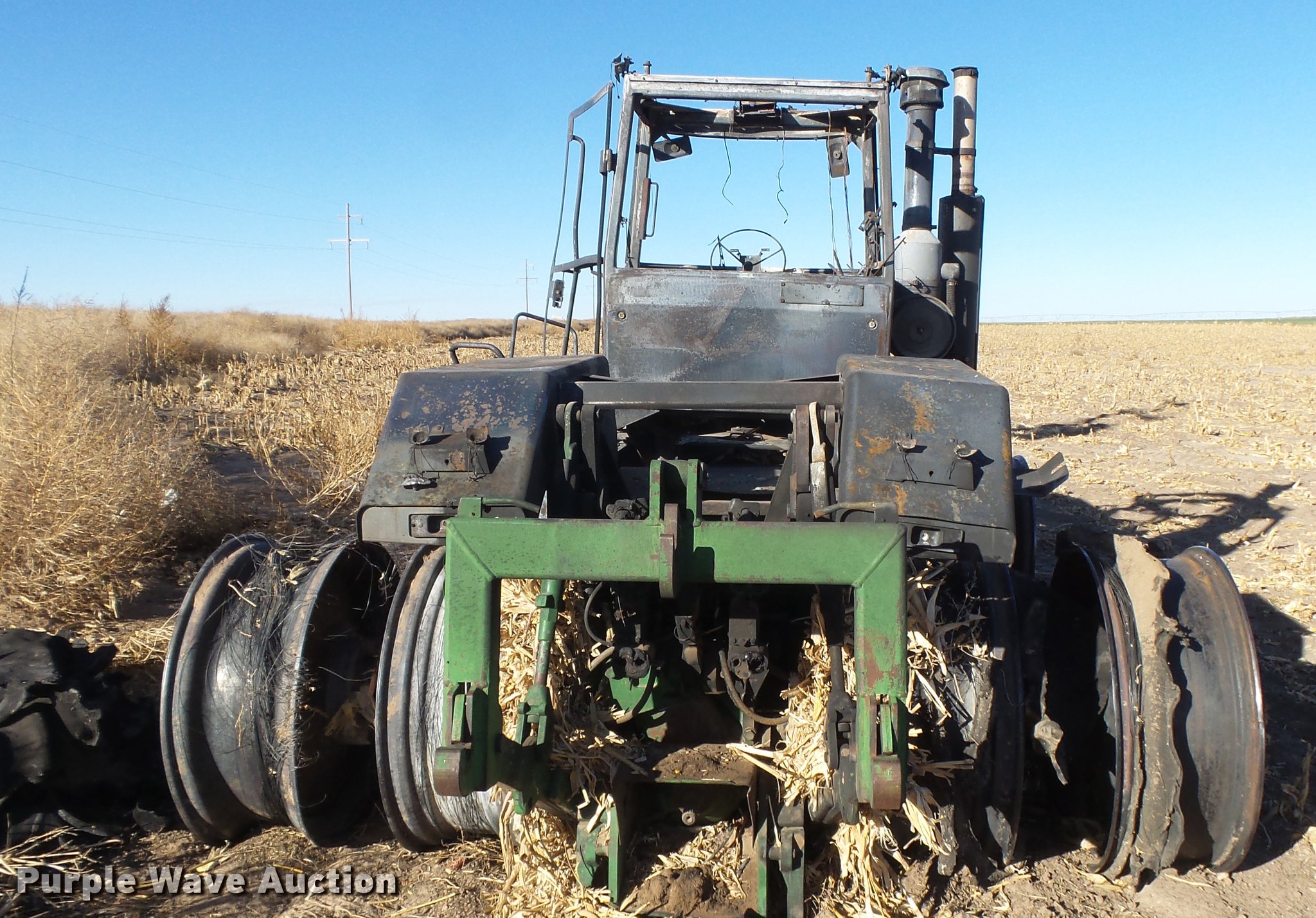 Purple Wave is selling a used Articulated 4-Wheel Drive Tractor in Kansas. This item is a 1993 John Deere 8770 4WD tractor with the following: John Deere 6101HRWH six cylinder turbo diesel engine, Serial RG6101H50106, Synchro transmission, 12F-3R gears, Three point, Top link, Quick attach, Large 1000 PTO, (4) rear hydraulic remote sets, Dual tires, Fire damage, Serial RW8770H001473, Unit# A389281P00