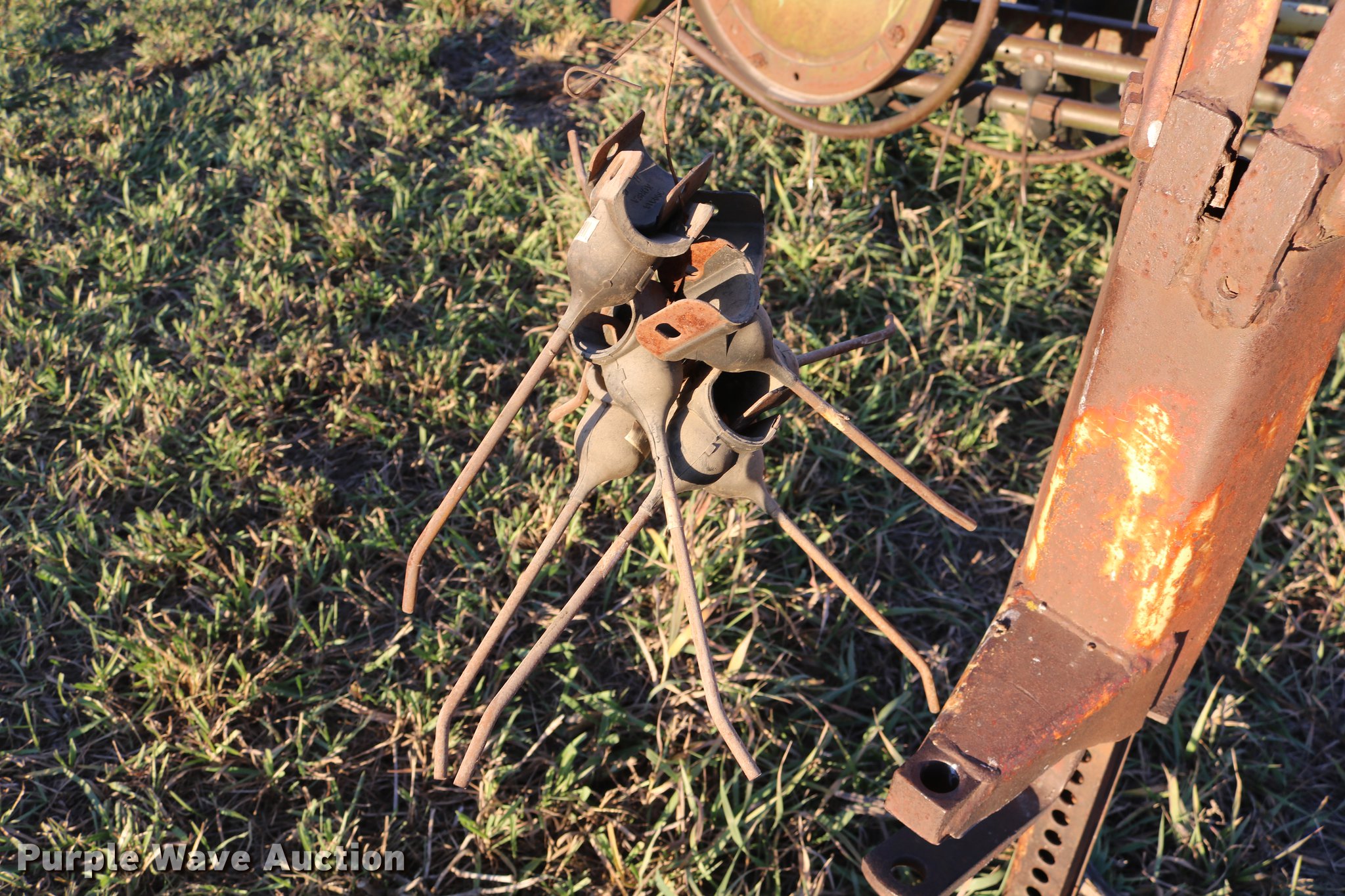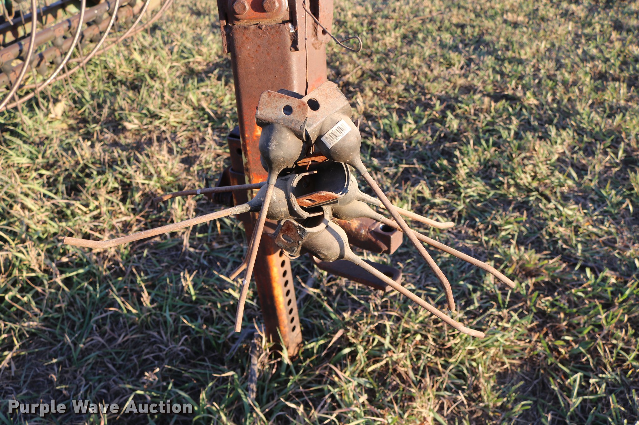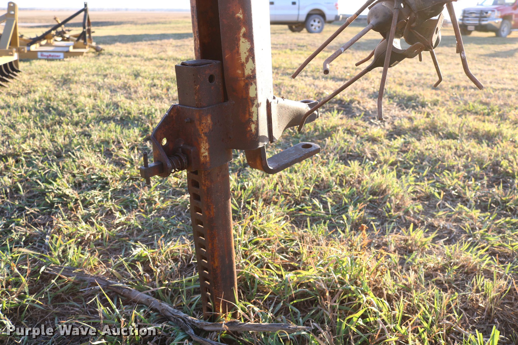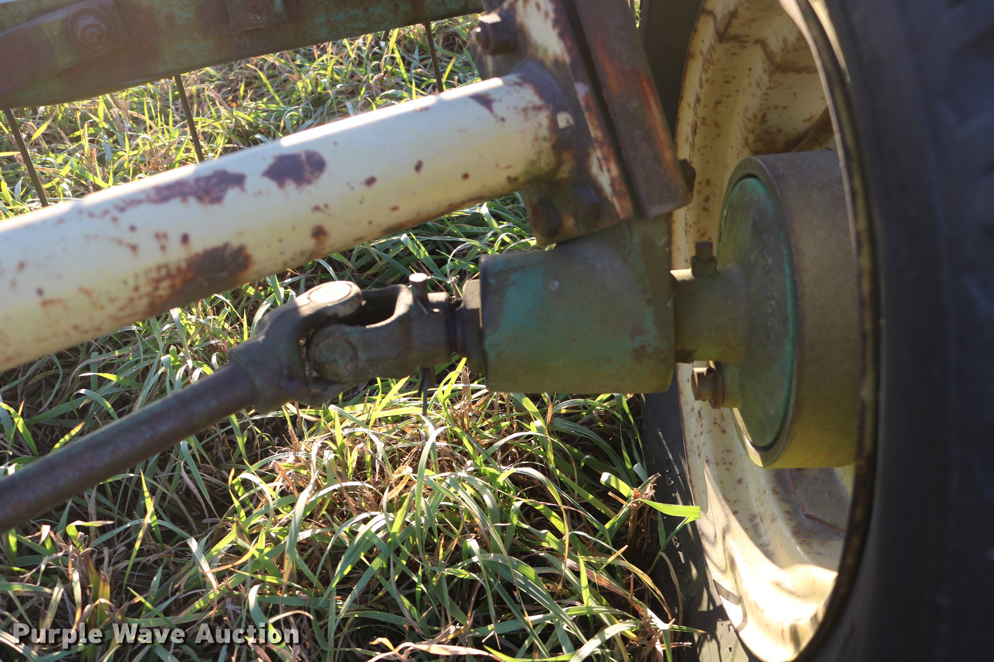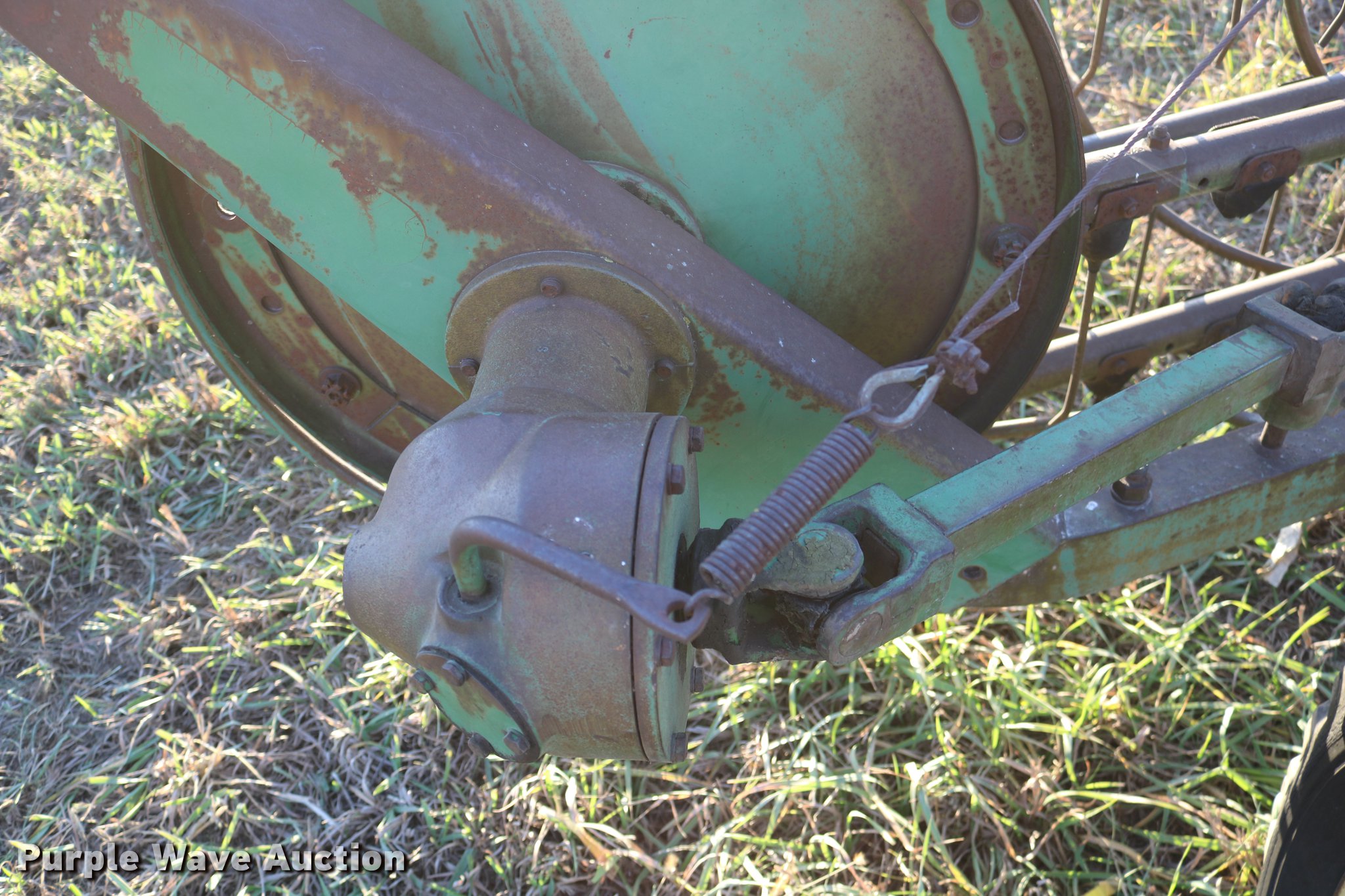 Purple Wave is selling a used Hay Rake in Kansas. This item is a John Deere 640 hay rake with the following: 9'W, Manual adjust, Ground driven, 7.5-14 tires, Serial 9703