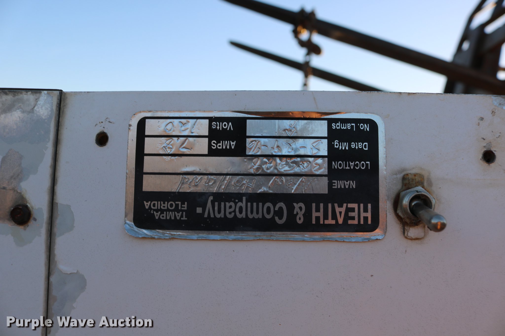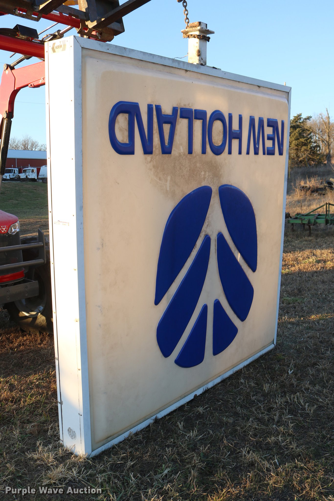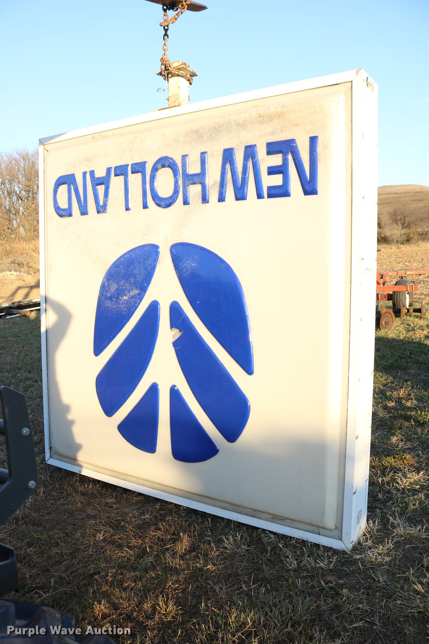Heath & Company New Holland sign. 101" x 96.5" overall, 98" x 96.5", 13" mounting length, 120V, Damaged, Unknown operating condition. Welch Creek Farms. Belvue, KS 66407