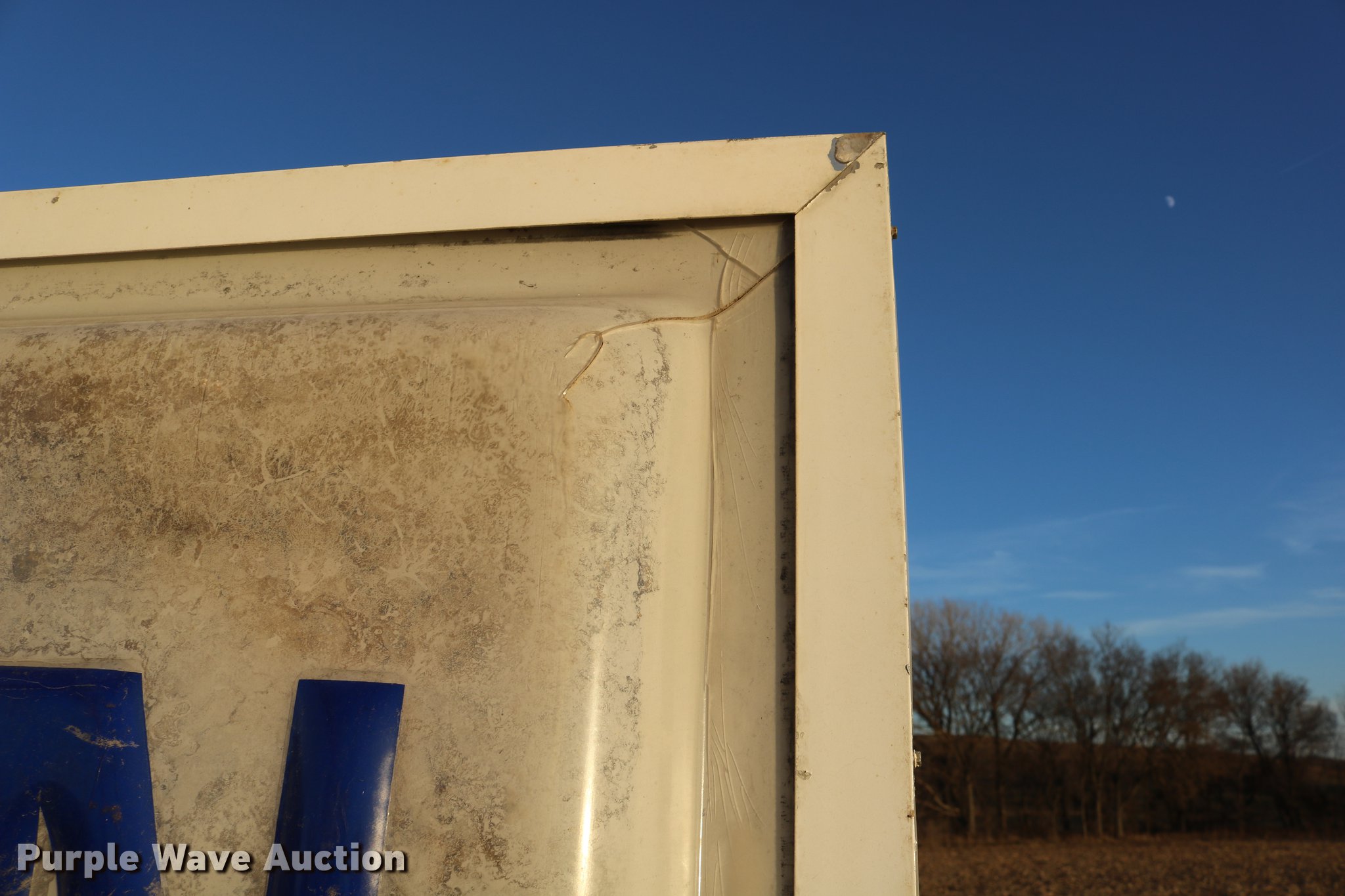 Purple Wave is selling a used Retail Displays in Kansas. This item is a Heath & Company New Holland sign with the following: 101" x 96.5" overall, 98" x 96.5", 13" mounting length, 120V, Damaged, Unknown operating condition