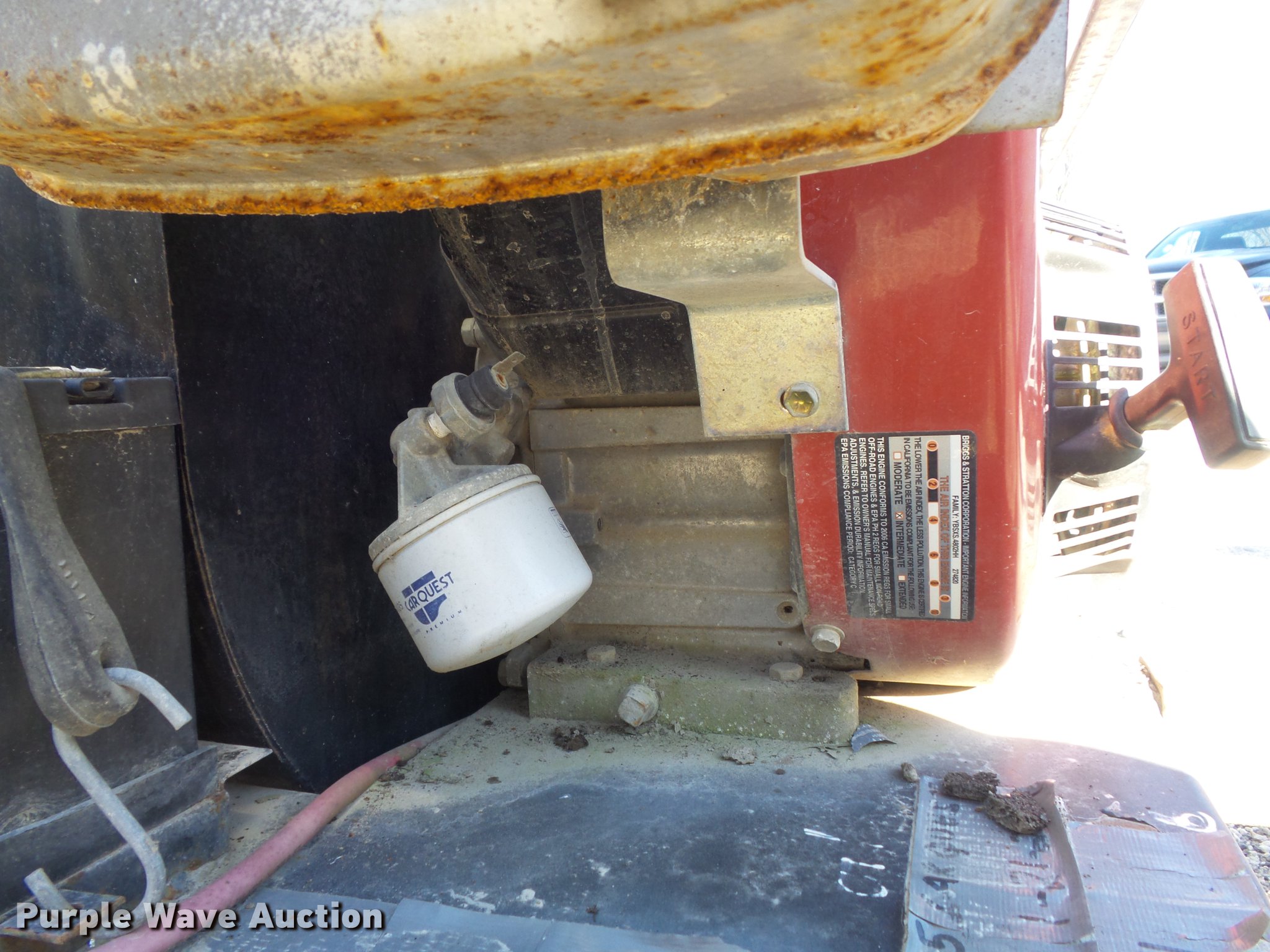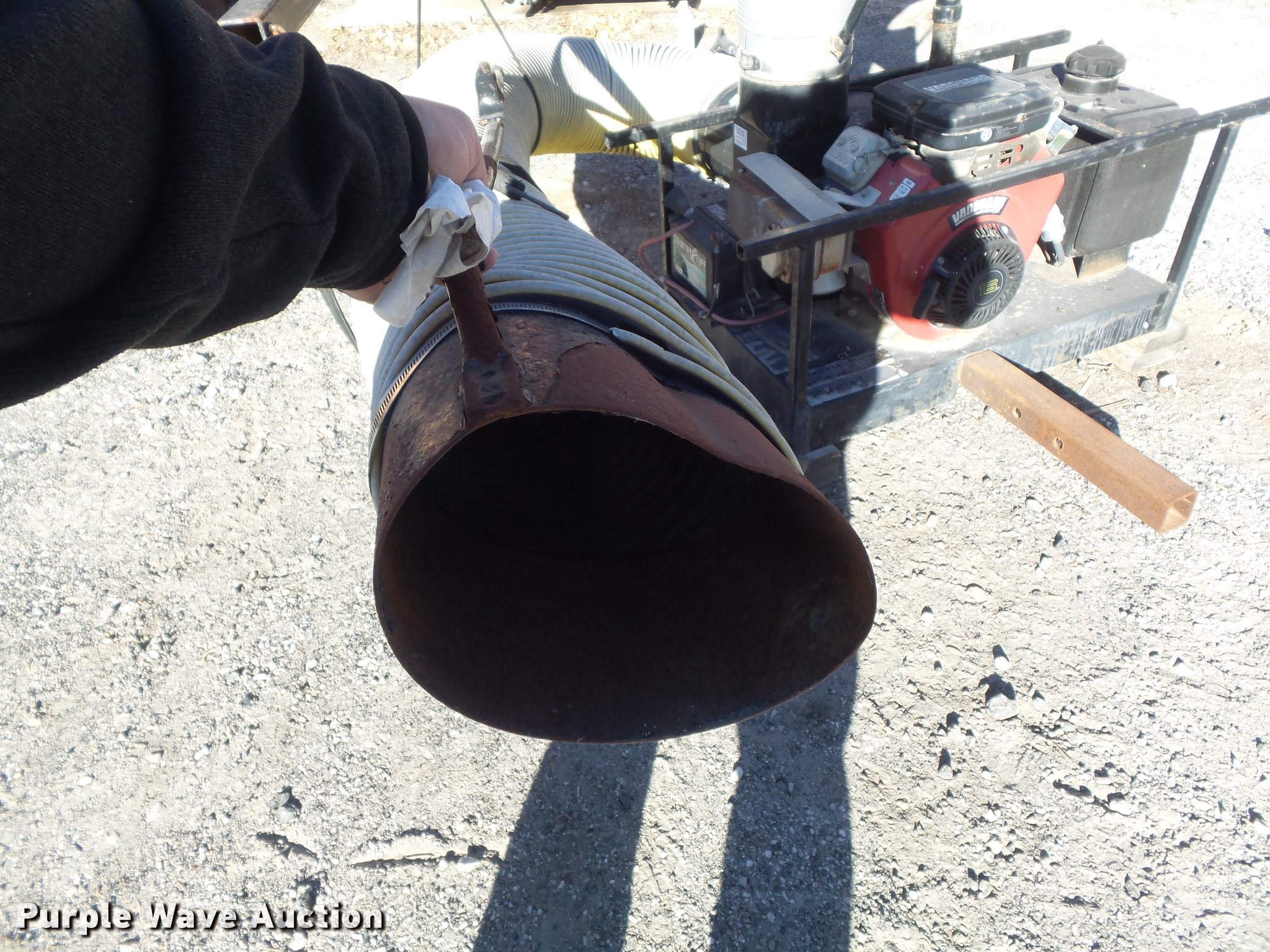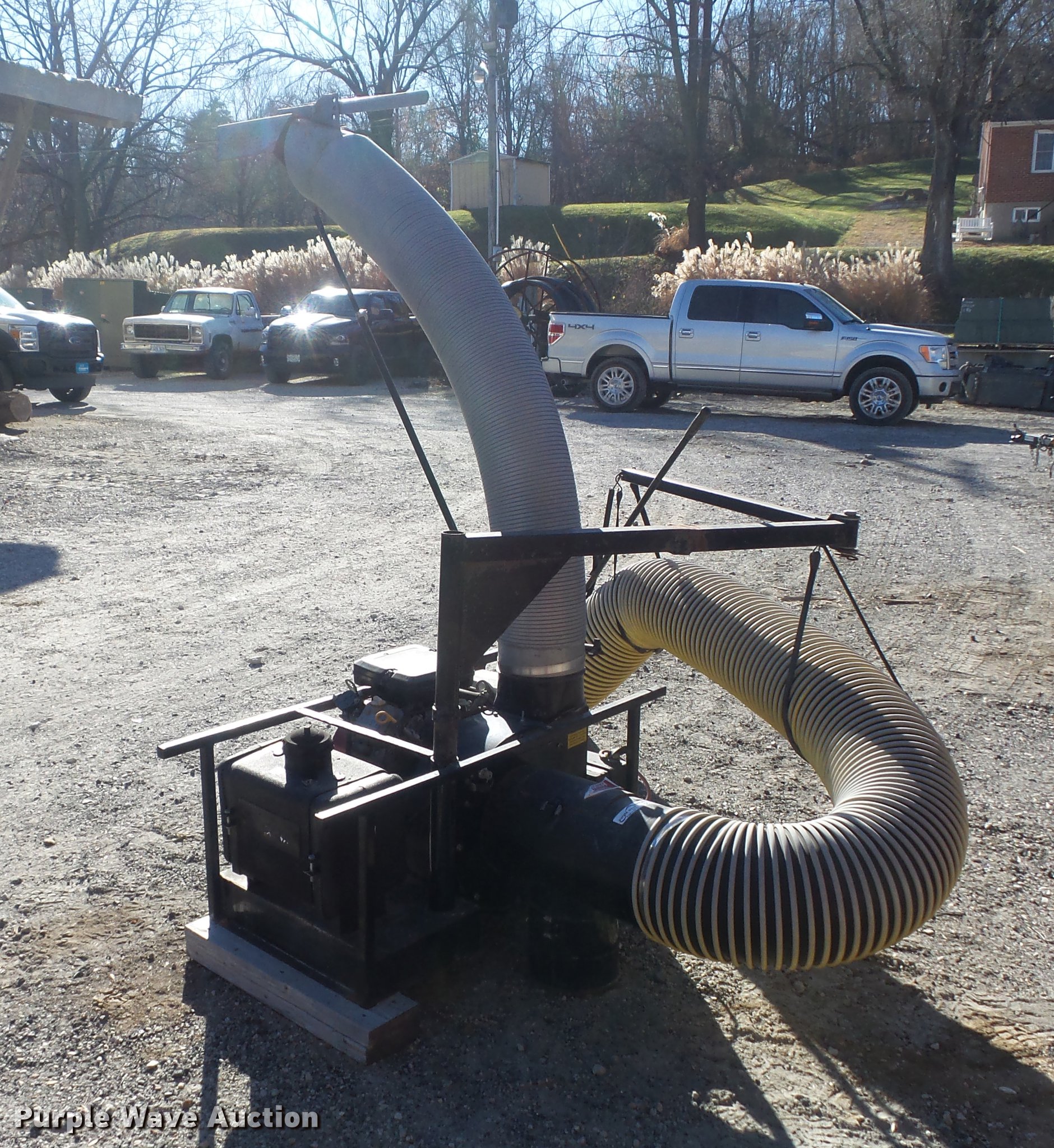 Purple Wave is selling a used Lawn and Garden in Missouri. This item is a Trac-vac 2116 leaf vacuum with the following: Briggs & Stratton two cylinder gas engine, 16 HP, 10' x 10" suction hose, Receiver hitch mounting tube, Dead battery, Serial 241