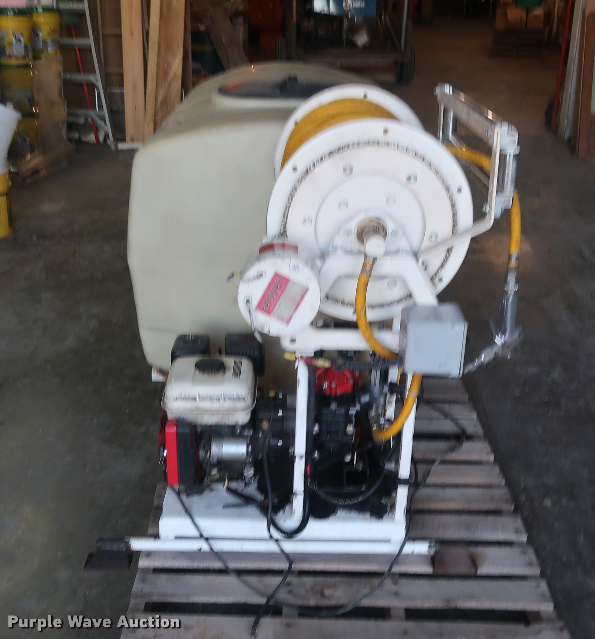 Purple Wave is selling a used Pump in Missouri. This item is a Water pump with the following: Honda GX160 gas engine, 5.5 HP, Hannay hose reel, 8'L skid