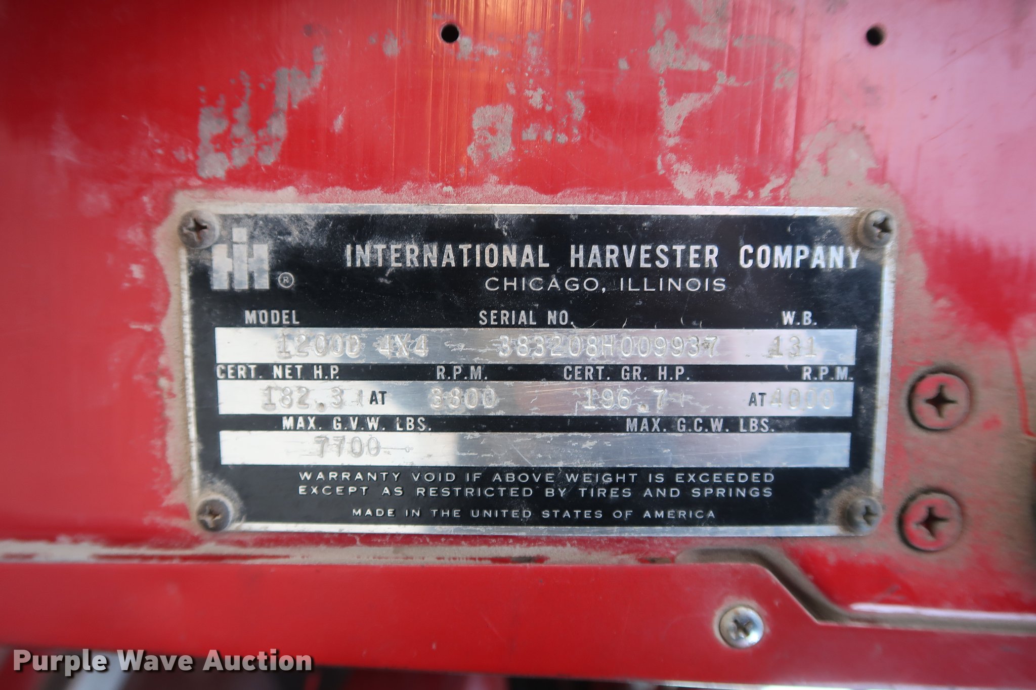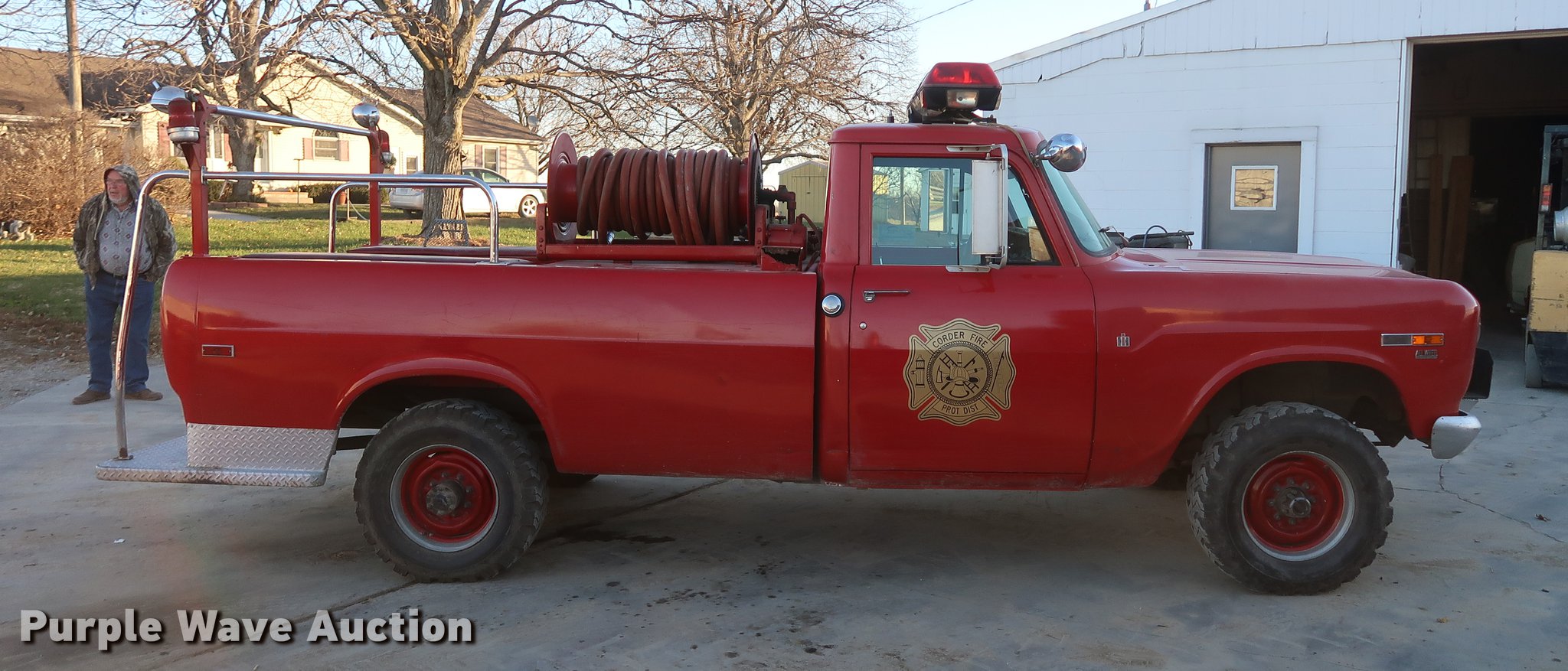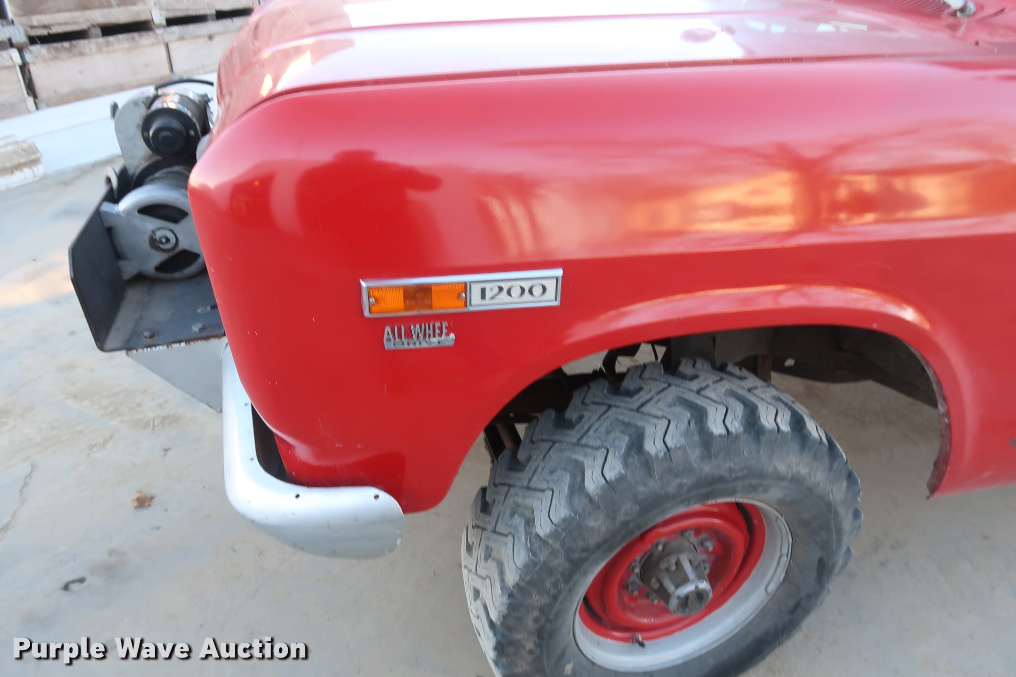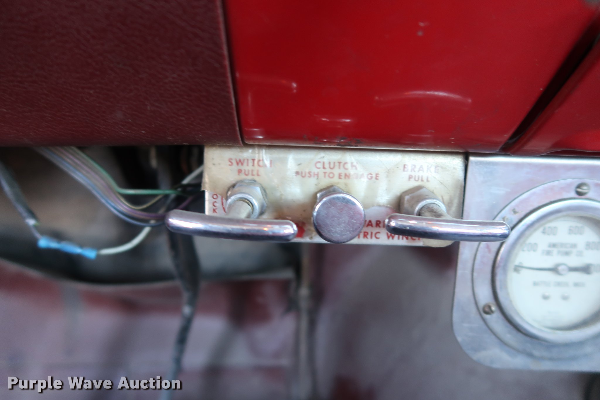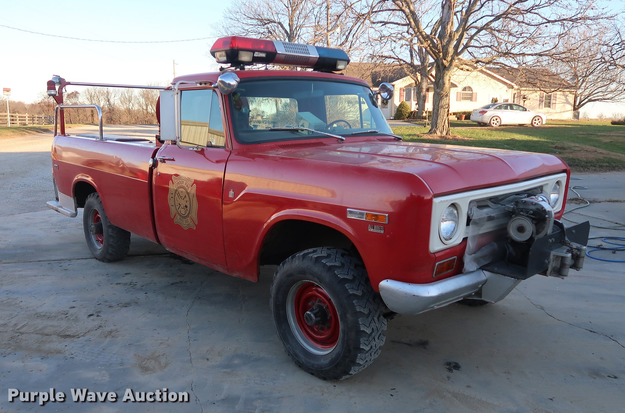Purple Wave is selling a used Fire Truck or Emergency Vehicle in Missouri. This item is a 1970 International 1200 Scout fire truck with the following: Eight cylinder gas engine, Four speed manual transmission, Four wheel drive, Heat, Vinyl interior, PTO, Winch, Hose reel, 9.50-16.5 tires