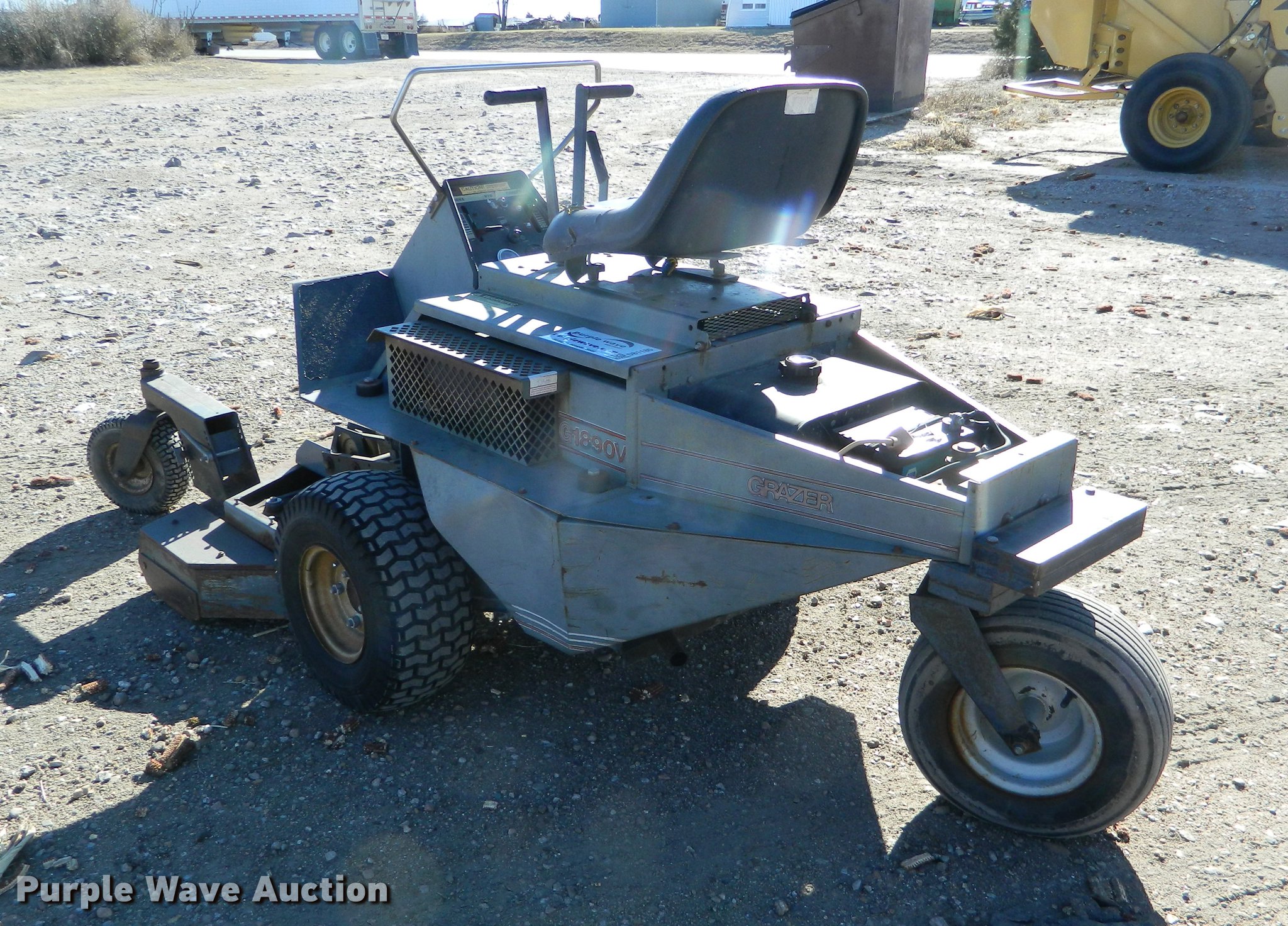 Purple Wave is selling a used Commercial Turf Mower in Kansas. This item is a Grazer G1890V lawn mower with the following: 394 hours on meter, 52"W deck, Briggs & Stratton gas engine, 18 HP, Hydrostatic transmission, 18.50-8 drive tires