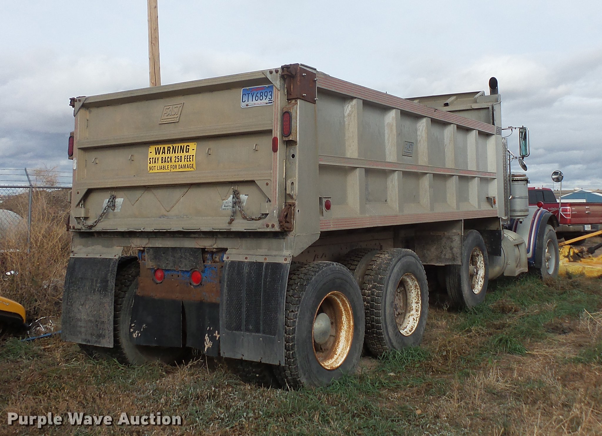 Purple Wave is selling a used Construction Dump Truck in South Dakota. This item is a 1980 Peterbilt 359 S19 dump truck with the following: 542,175 miles on odometer, Caterpillar 3406 six cylinder turbo diesel engine, Eaton Fuller RTO-1258LL eight speed manual transmission, Tandem axle, Pusher lift axle, Inter-axle differential lock, Heat, AM/FM, Air suspension seat, Exterior visor, Chrome bumper, PTO, East aluminum dump bed, 16'L x 96"W, 48" side height, Air operated end gate, Single ram hoist, Serial A995, Single fuel tank, Walking beam suspension, Air brakes, 425/65R22.5 front tires, 11R22.5 rear tires, Motor mounts needs replaced, Non-operational unit