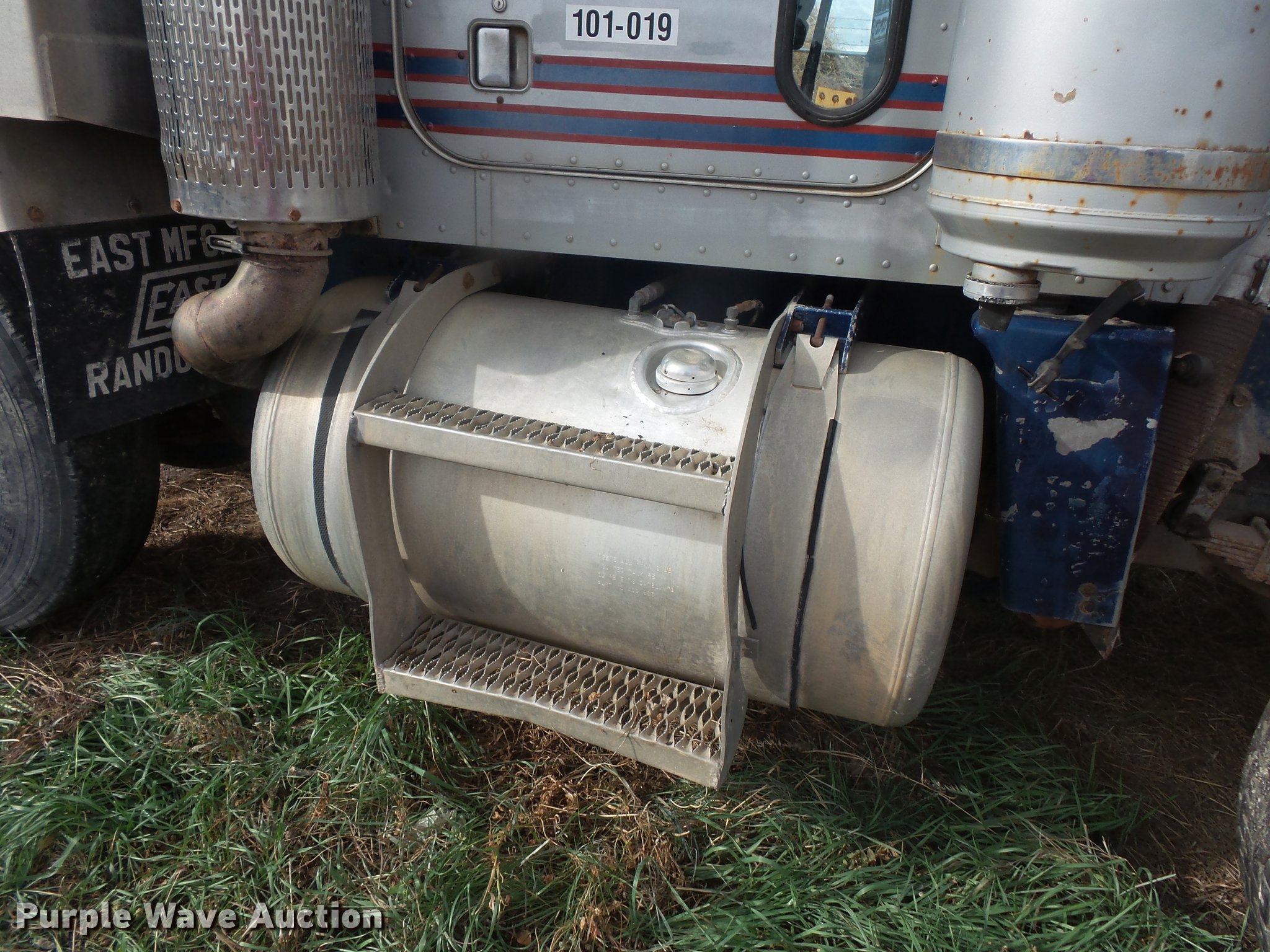 1980 Peterbilt 359 S19 dump truck. 542,175 miles on odometer, Caterpillar 3406 six cylinder turbo diesel engine, Eaton Fuller RTO-1258LL eight speed manual transmission, Tandem axle Pusher lift axle, Inter-axle differential lock, Heat, AM/FM, Air suspension seat, Exterior visor, Chrome bumper, PTO, East aluminum dump bed 16'L x 96"W, 48" side height, Air operated end gate, Single ram hoist, Serial A995, Single fuel tank, Walking beam suspension, Air brakes, 425/65R22.5 front tires, 11R22.5 rear tires, Motor mounts needs replaced, Non-operational unit. South Dakota title. Seller is a government entity who will be assigning and distributing the title. Please contact the seller for distribution questions. 128300N. City of Box Elder. 420 Villa Dr. Box Elder, SD 57719