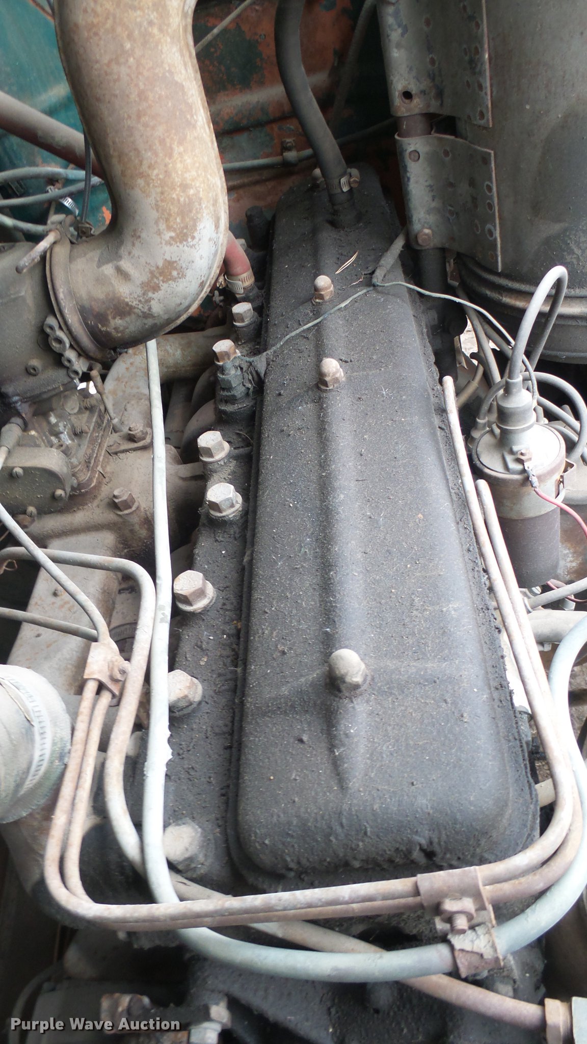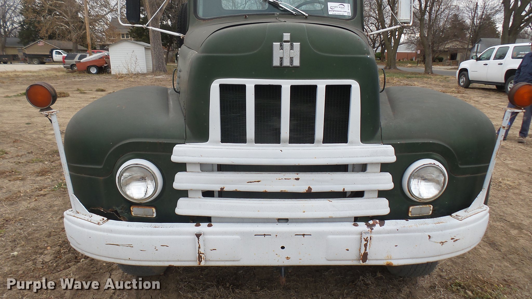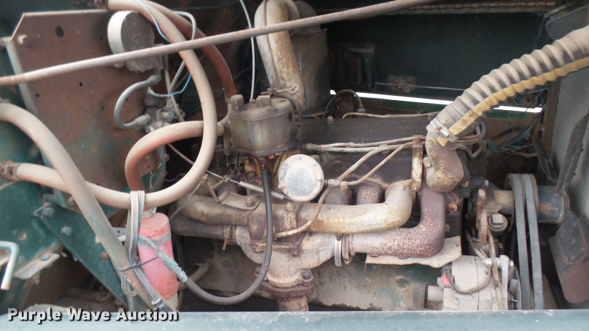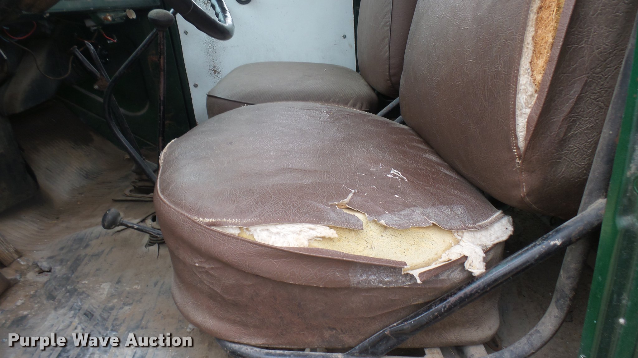 Purple Wave is selling a used Flat Bed Truck in Kansas. This item is a 1953 International RF192 flatbed truck with the following: 32,330 miles on odometer, Actual mileage unknown, 406 C.I.D. six cylinder gas engine, 138 HP, 4+3 manual transmission, Tandem axle, Inter-axle differential lock, Manual windows and locks, Vinyl interior, Converted to 12V, 6V generator is available to be included, Front tow hooks, Fifth wheel plate, Tulsa winch, 7' gin pole, Pin hitch, Full fenders, Air brakes, 157" wheelbase, 9.00-20 tires, GVWR 35,000 lbs, (4) sets of dual tire chains