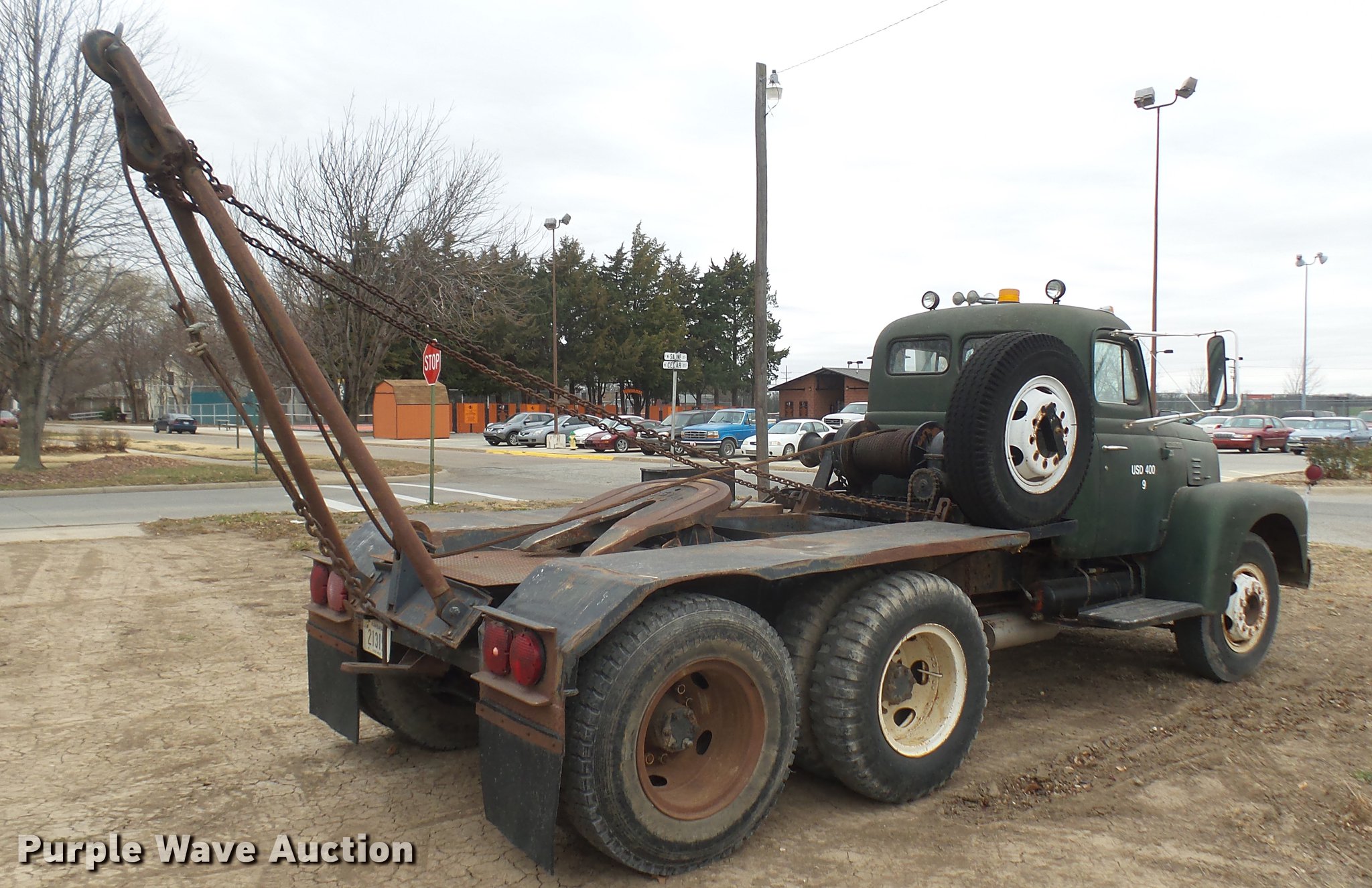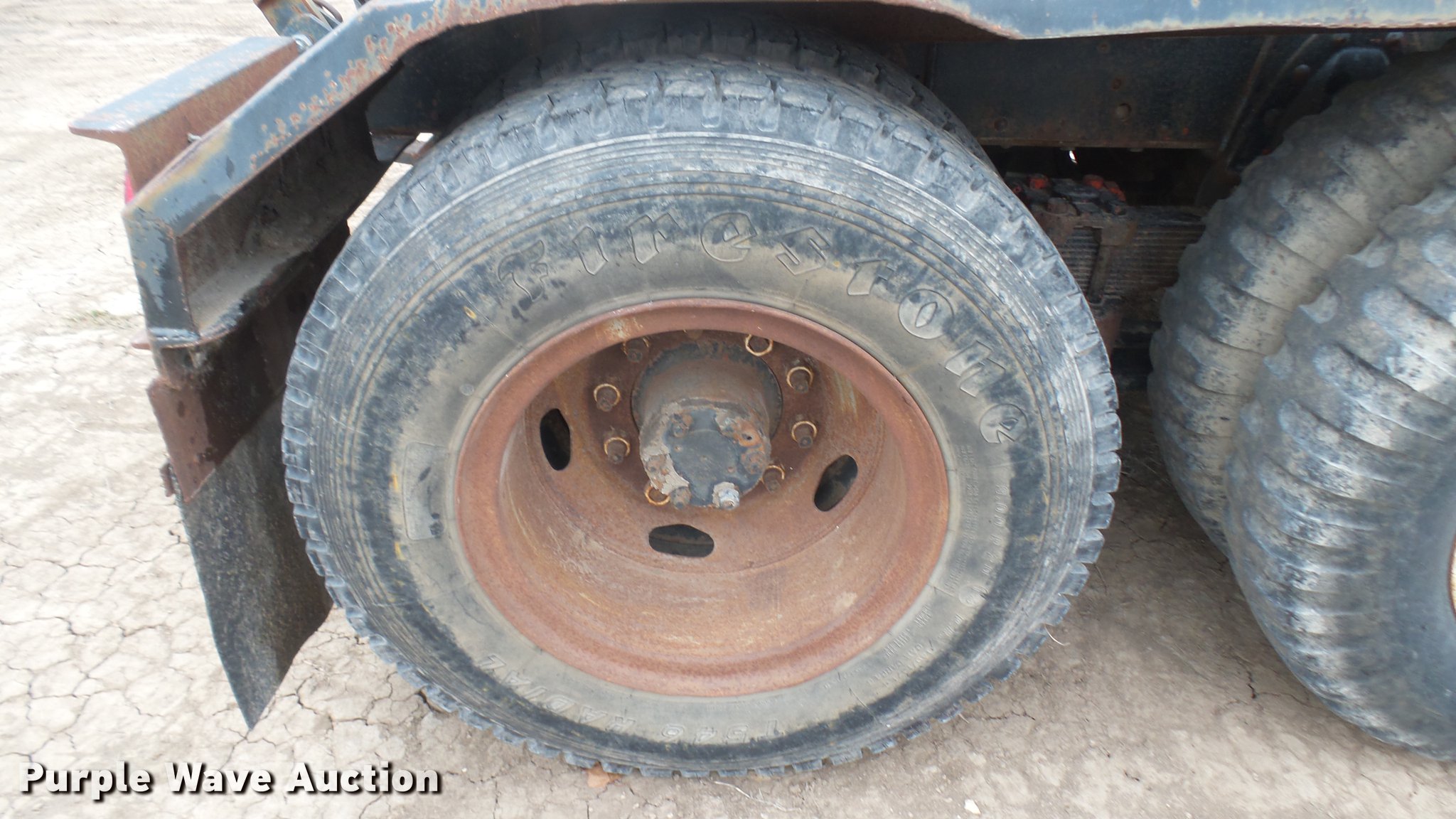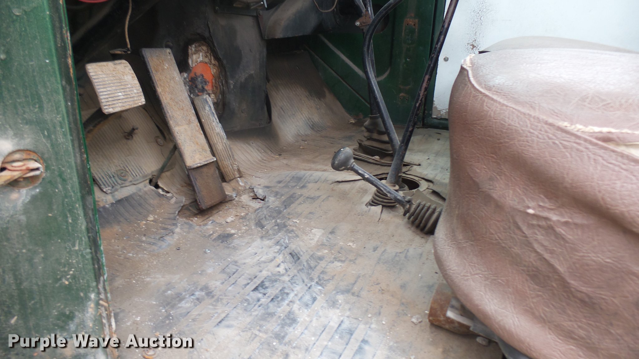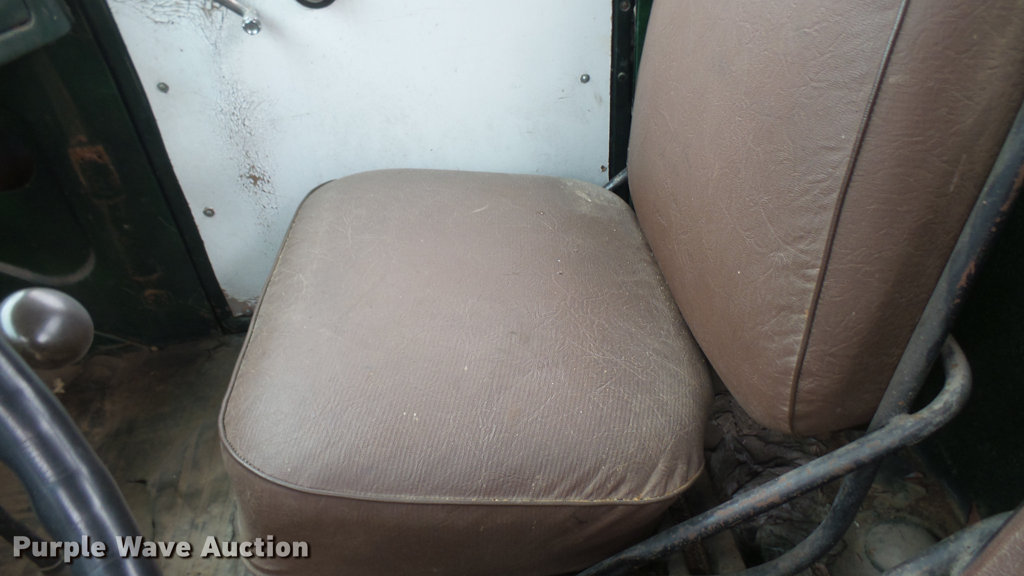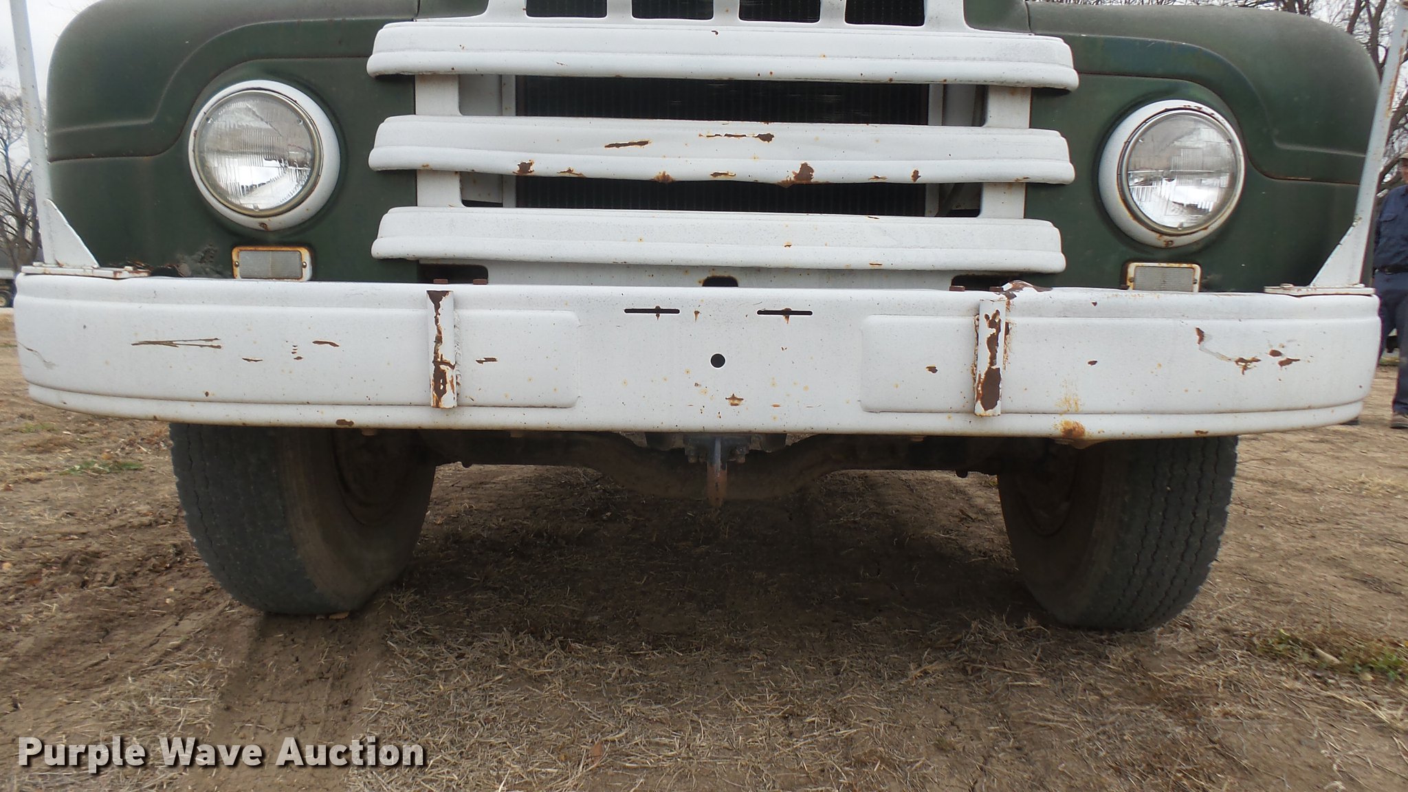 Purple Wave is selling a used Flat Bed Truck in Kansas. This item is a 1953 International RF192 flatbed truck with the following: 32,330 miles on odometer, Actual mileage unknown, 406 C.I.D. six cylinder gas engine, 138 HP, 4+3 manual transmission, Tandem axle, Inter-axle differential lock, Manual windows and locks, Vinyl interior, Converted to 12V, 6V generator is available to be included, Front tow hooks, Fifth wheel plate, Tulsa winch, 7' gin pole, Pin hitch, Full fenders, Air brakes, 157" wheelbase, 9.00-20 tires, GVWR 35,000 lbs, (4) sets of dual tire chains