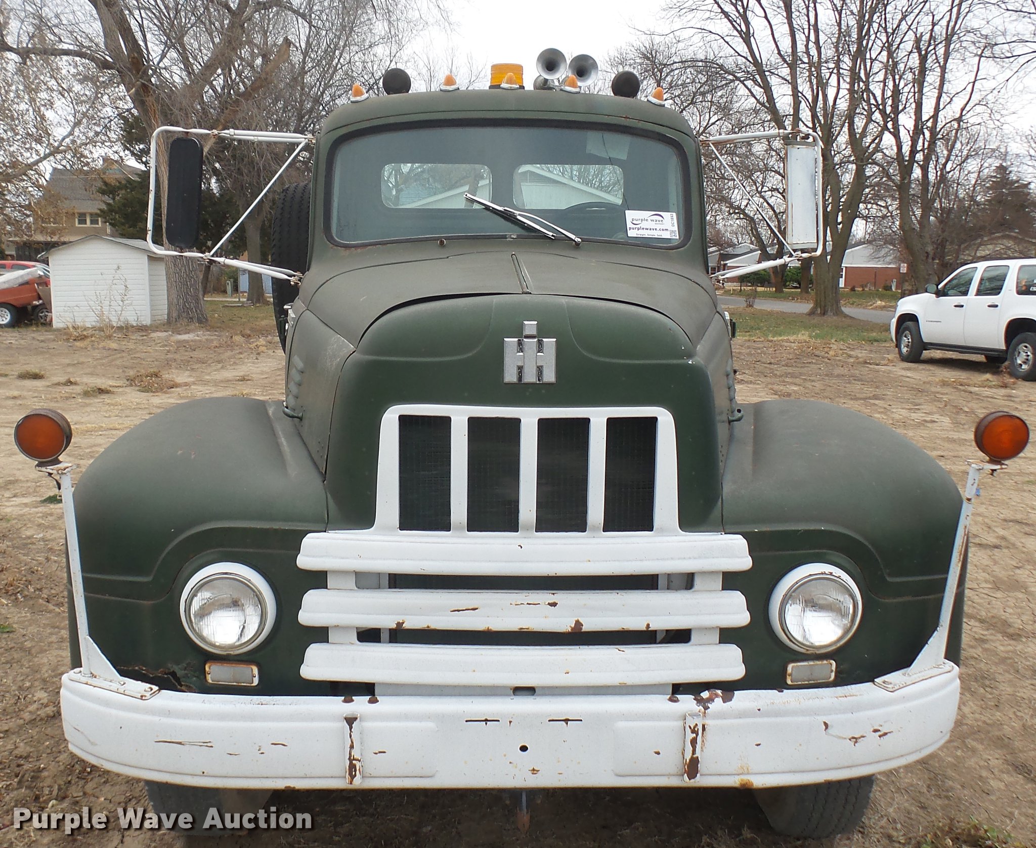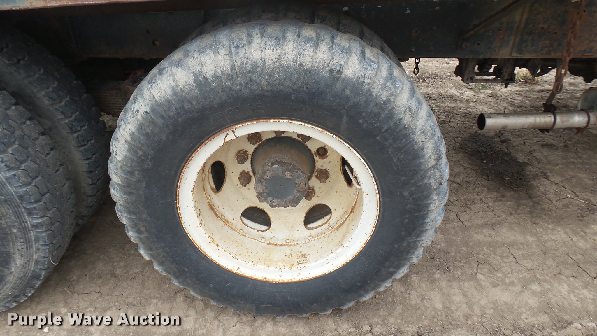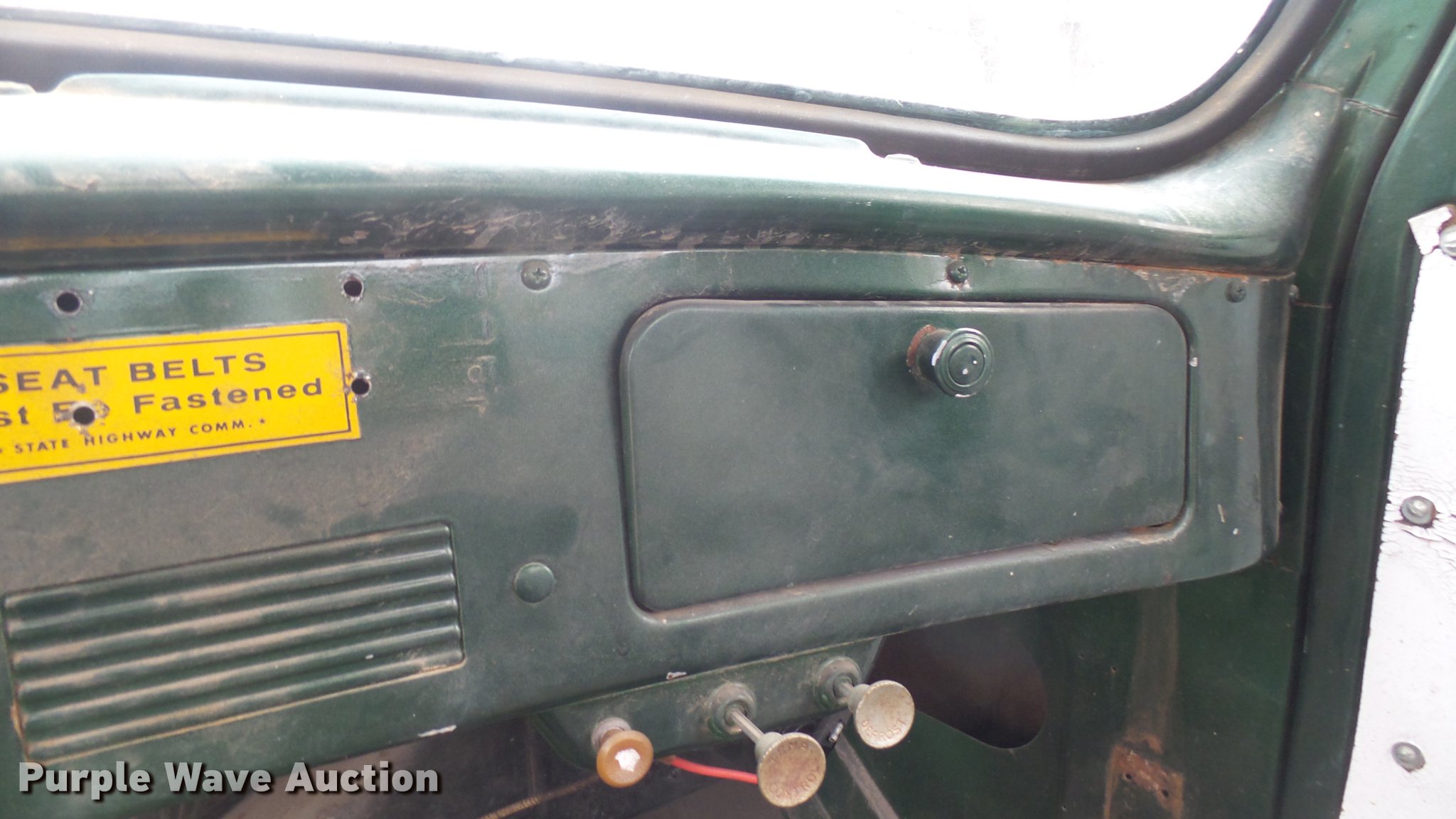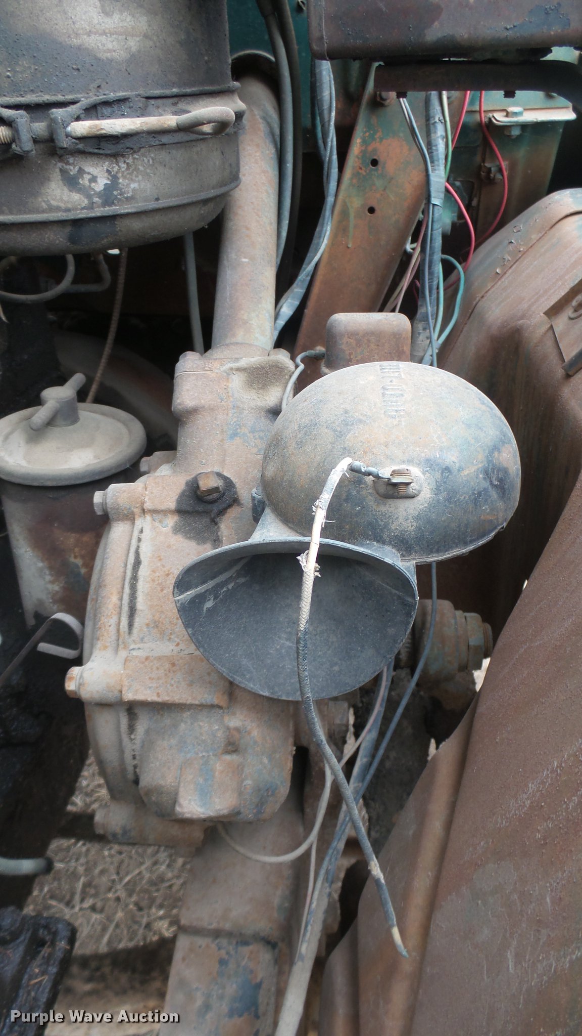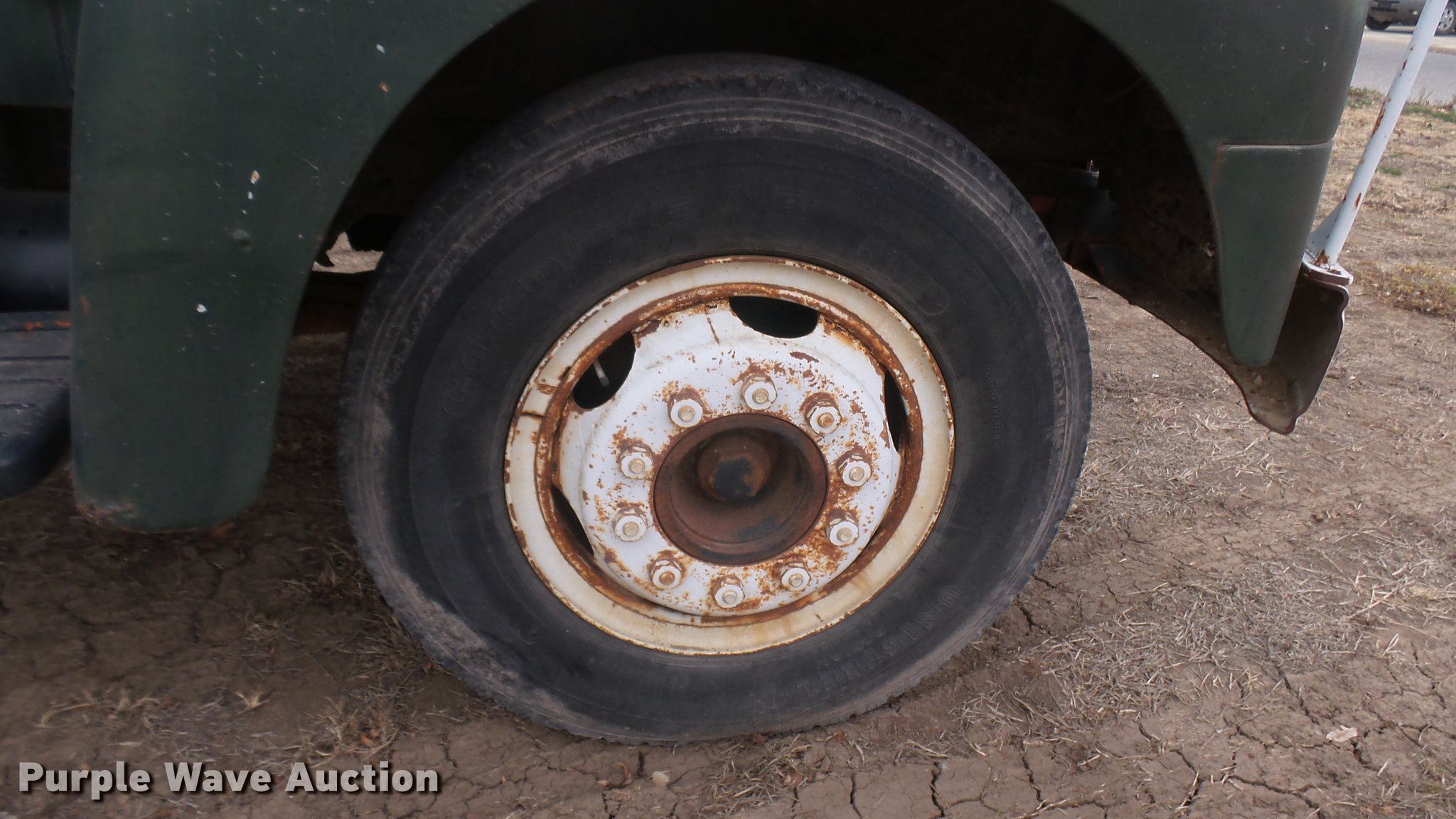 Purple Wave is selling a used Flat Bed Truck in Kansas. This item is a 1953 International RF192 flatbed truck with the following: 32,330 miles on odometer, Actual mileage unknown, 406 C.I.D. six cylinder gas engine, 138 HP, 4+3 manual transmission, Tandem axle, Inter-axle differential lock, Manual windows and locks, Vinyl interior, Converted to 12V, 6V generator is available to be included, Front tow hooks, Fifth wheel plate, Tulsa winch, 7' gin pole, Pin hitch, Full fenders, Air brakes, 157" wheelbase, 9.00-20 tires, GVWR 35,000 lbs, (4) sets of dual tire chains