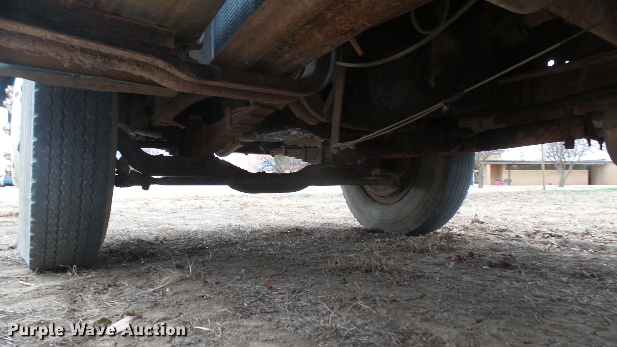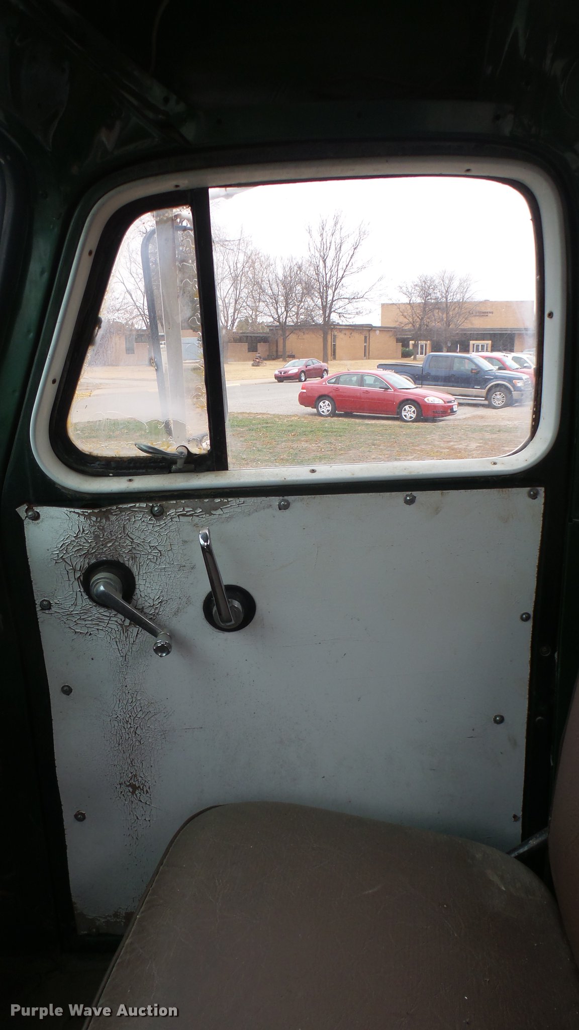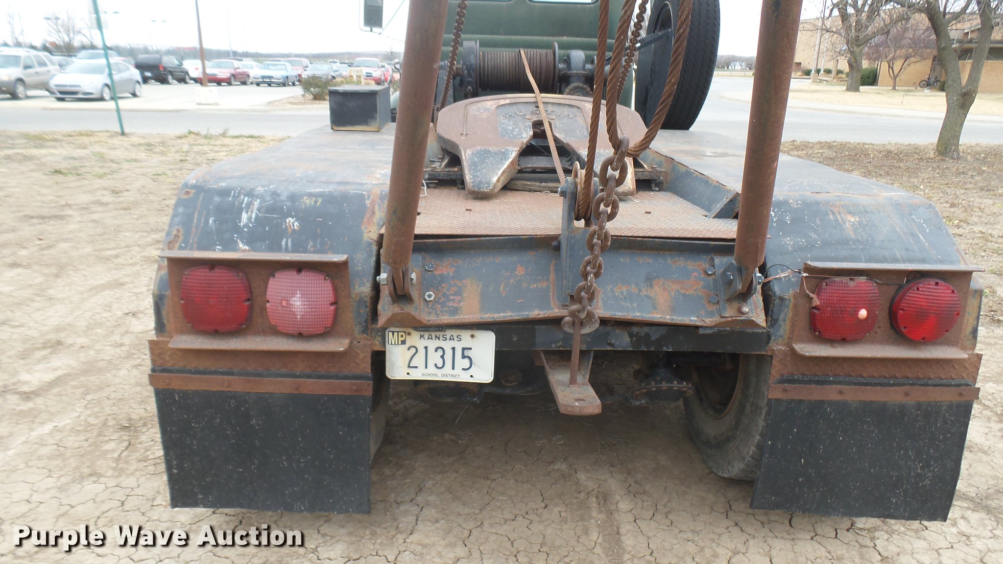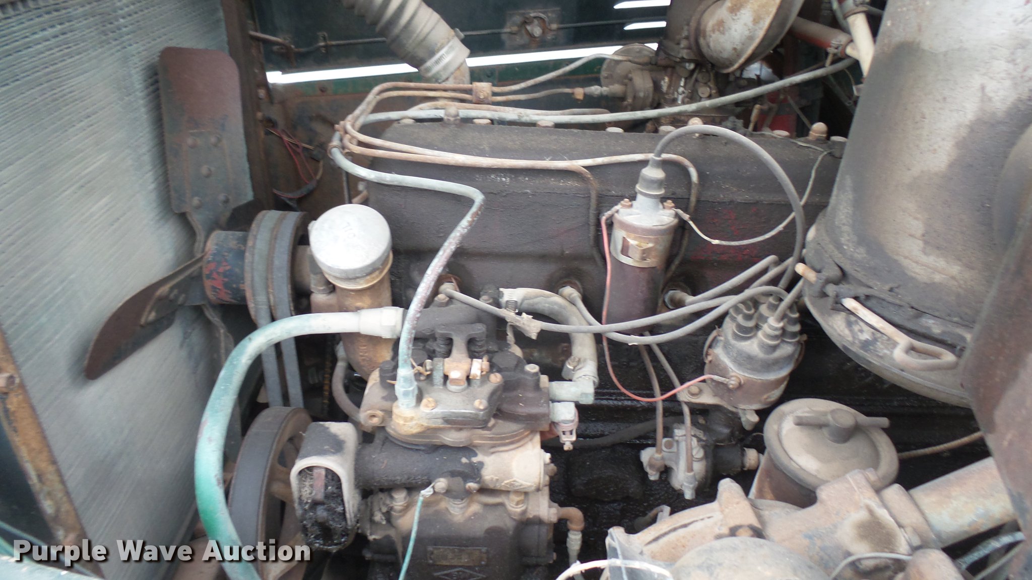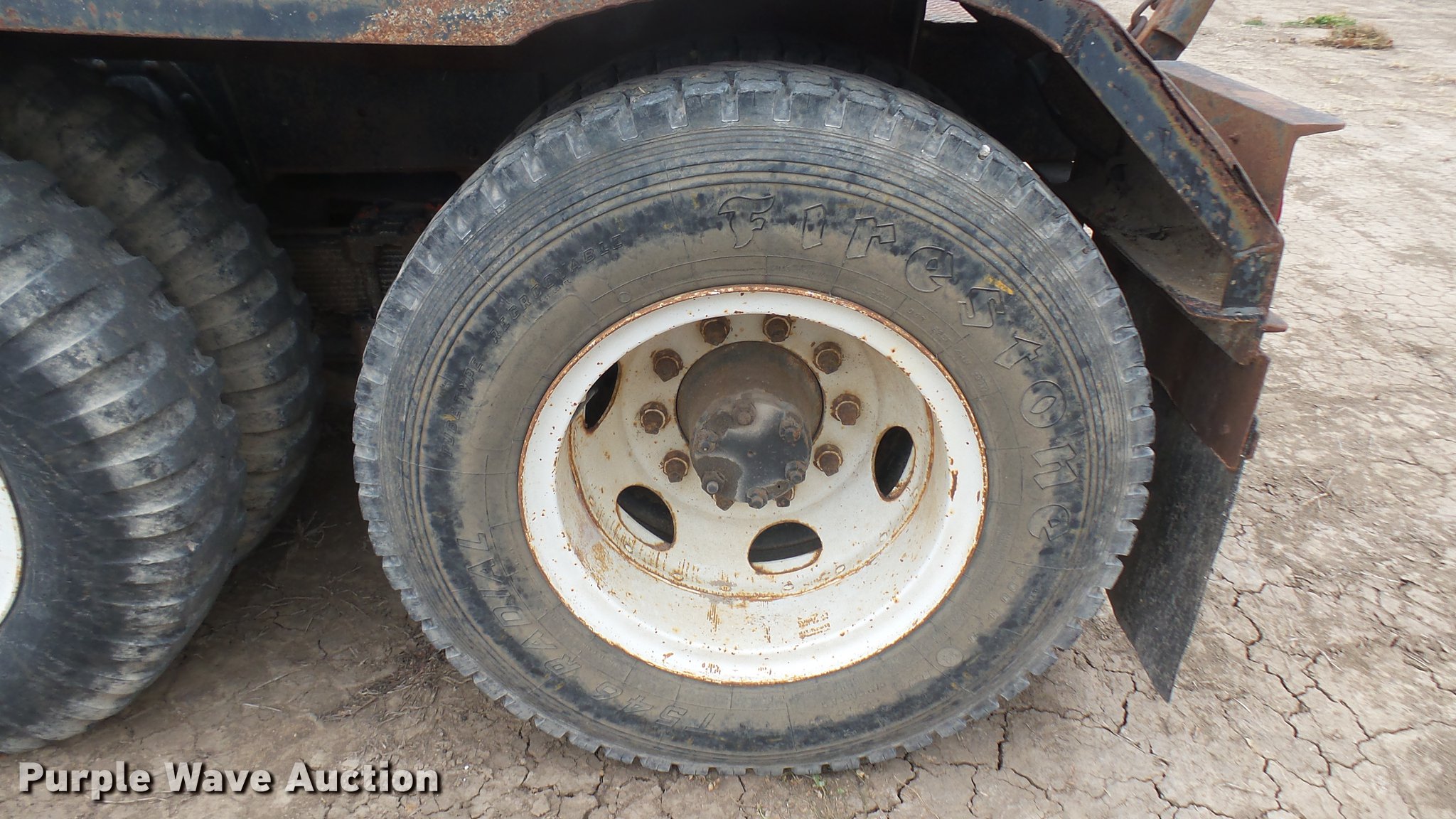 Purple Wave is selling a used Flat Bed Truck in Kansas. This item is a 1953 International RF192 flatbed truck with the following: 32,330 miles on odometer, Actual mileage unknown, 406 C.I.D. six cylinder gas engine, 138 HP, 4+3 manual transmission, Tandem axle, Inter-axle differential lock, Manual windows and locks, Vinyl interior, Converted to 12V, 6V generator is available to be included, Front tow hooks, Fifth wheel plate, Tulsa winch, 7' gin pole, Pin hitch, Full fenders, Air brakes, 157" wheelbase, 9.00-20 tires, GVWR 35,000 lbs, (4) sets of dual tire chains