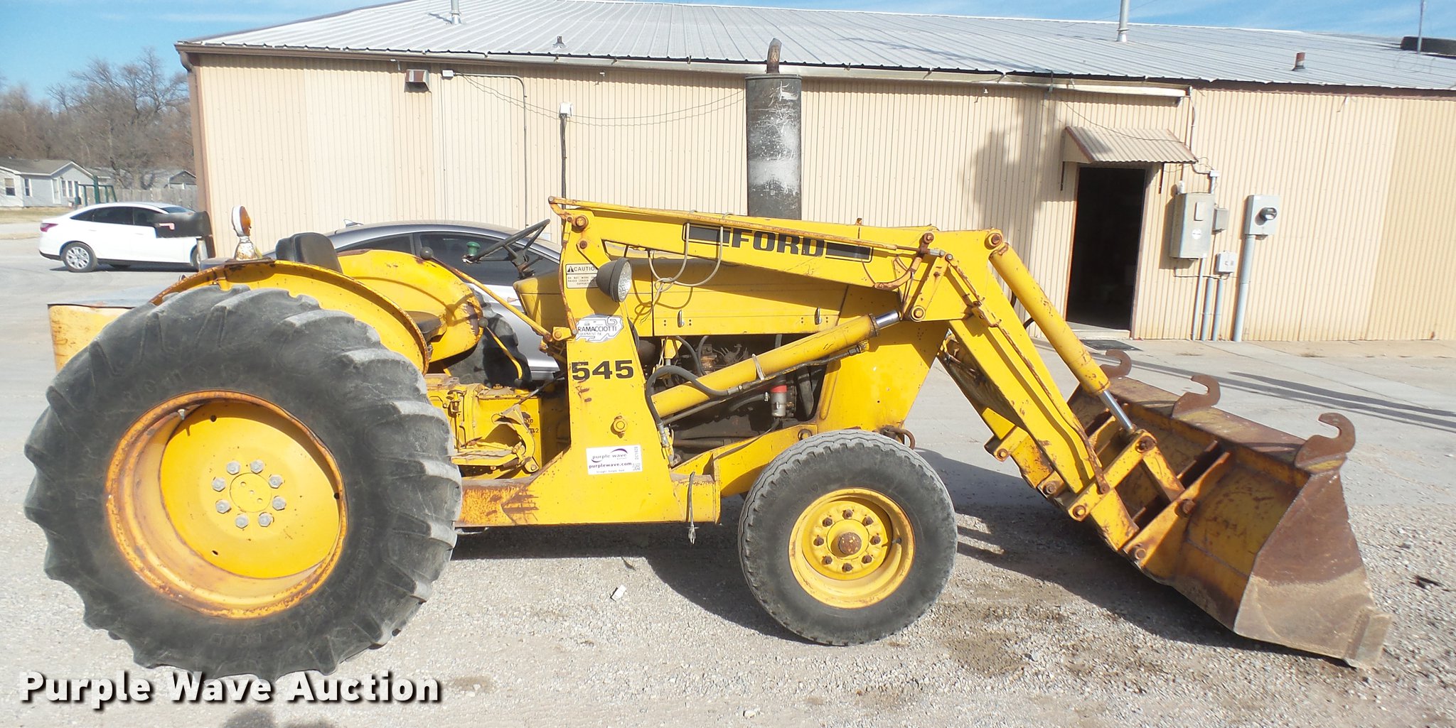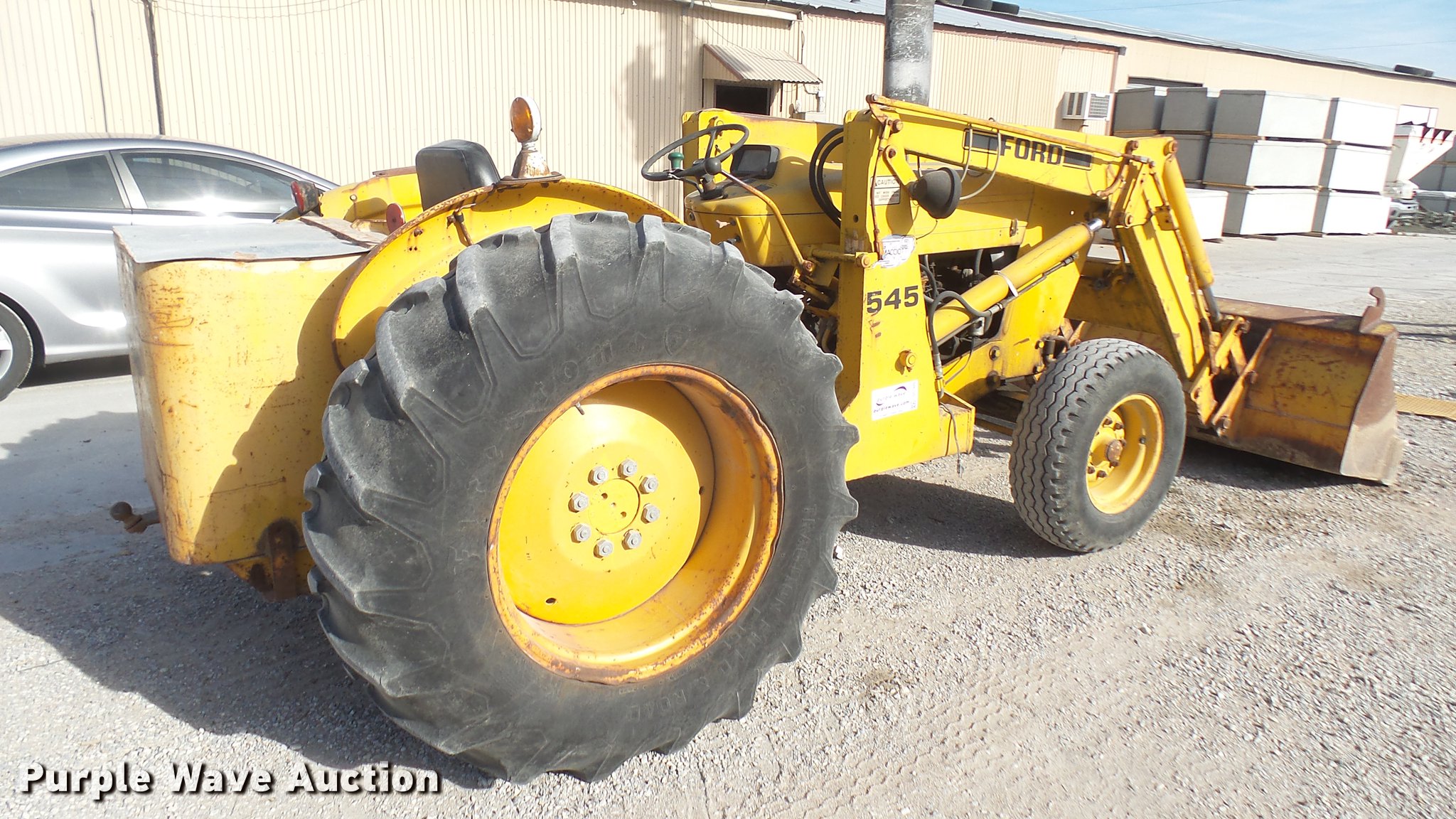 Purple Wave is selling a used Tractor in Kansas. This item is a Ford 545 tractor with the following: 2,424 hours on meter, Ford 3.3L three cylinder diesel engine, Manual transmission, 8F-2R gears, Loader, 80"W bucket, 11L-16 front tires, 16.9-28 rear tires