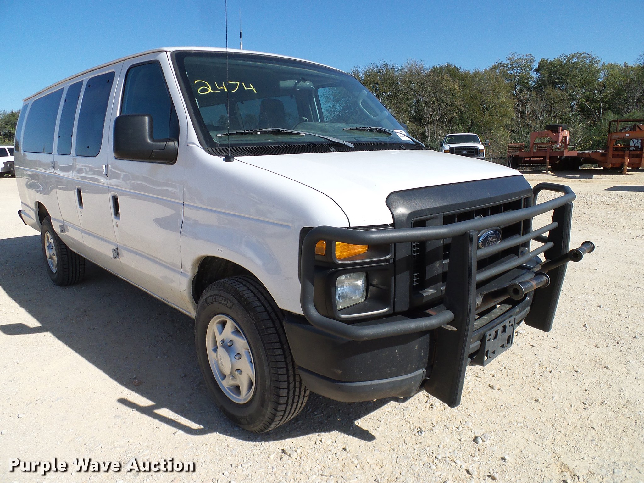 Purple Wave is selling a used 3/4 or 1 Ton Pickup or Van in Texas. This item is a 2011 Ford E350 Super Duty Extended van with the following: 173,311 miles on odometer, 6.8L V10 SOHC 20V gas engine, Automatic transmission, AC and heat, Tilt, Cruise, Power windows and locks, Cloth interior, Grill guard, Receiver hitch, Trailer wiring, Michelin 245/75R16 tires, Weak battery, AC does not blow out of front vents, Unit# 52474