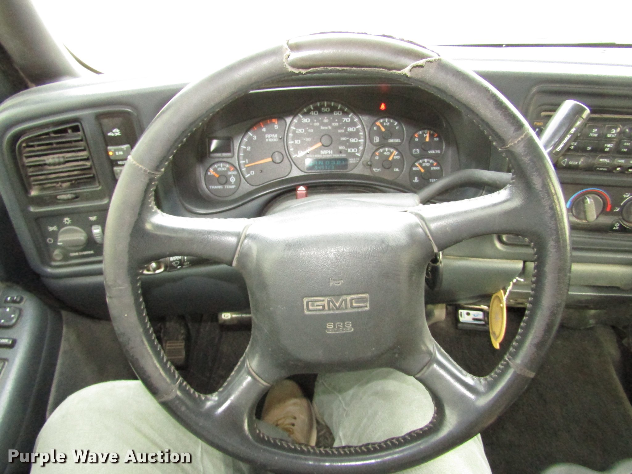 2002 GMC Sierra 2500HD SLE Crew Cab pickup truck. 349,323 miles on odometer Miles may vary, still in use, 6.6L V8 OHV 32V turbo diesel engine 300 HP, Automatic transmission, Four wheel drive, AC and heat, Tilt, Cruise, AM/FM/CD, Power windows, locks, mirrors, and seats, Cloth interior, Front tow hooks, Running boards, Brake controller, Ranch Hand grill guard, Long bed, Bed liner, Gooseneck ball, Receiver hitch, Trailer wiring, Aluminum wheels, Nitto Terra Grappler LT305/70R16 tires, Head gaskets and bolts replaced in October 2017, Injectors and fuel lines replaced in 2016, Windshield damage, Bed rail damaged. View repairs. Nebraska title. 1GTHK23112F162488. The Pivot Doc LLC. 1711 Rd 12. York, NE 68467