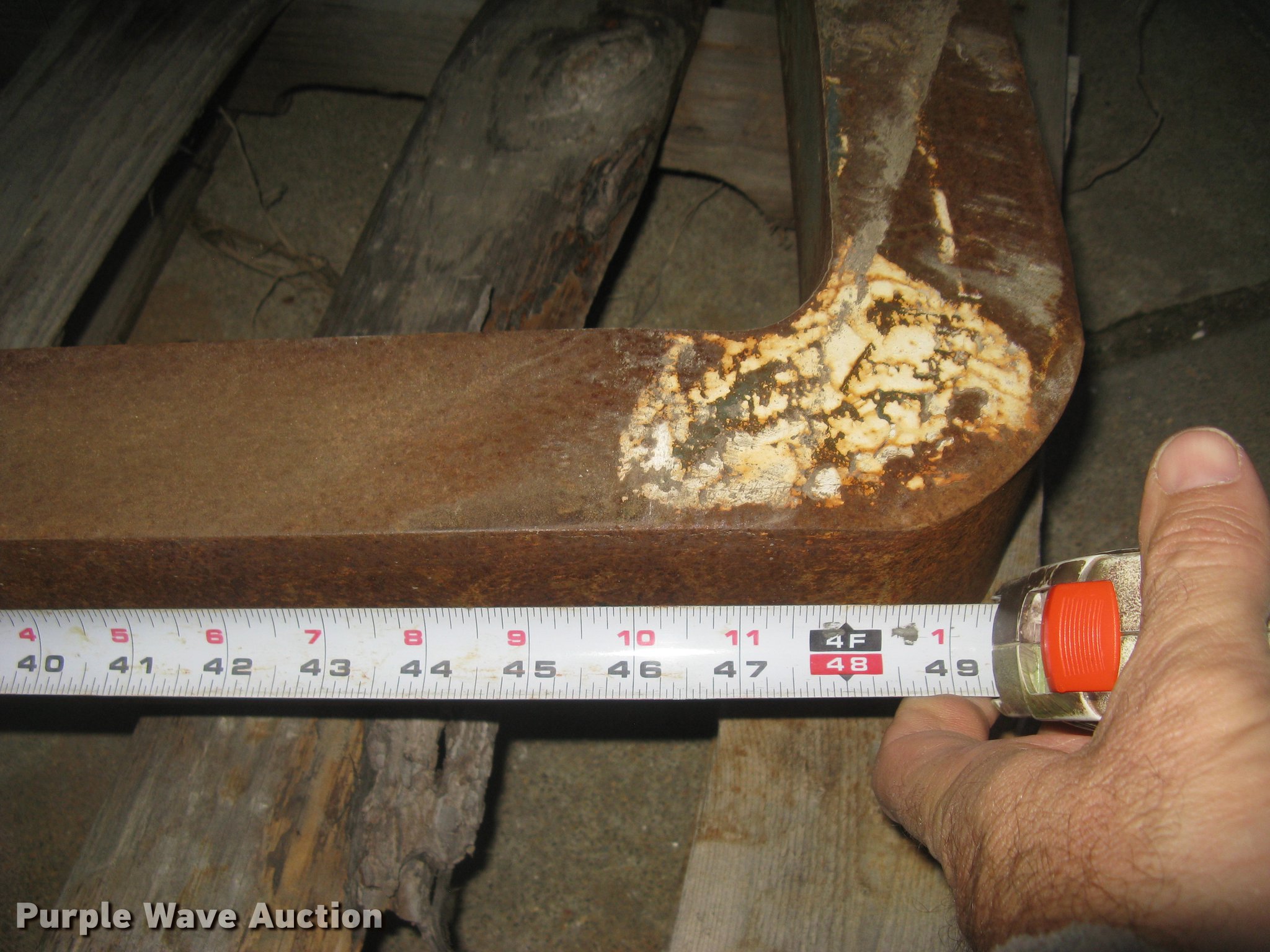 Purple Wave is selling a used Bucket or Loader Attach. in Kansas. This item is a (2) lift forks with the following: 48"L x 4"W, 5,475 lbs rated lift capacity at 24", 55"L spreader/hanging bar
