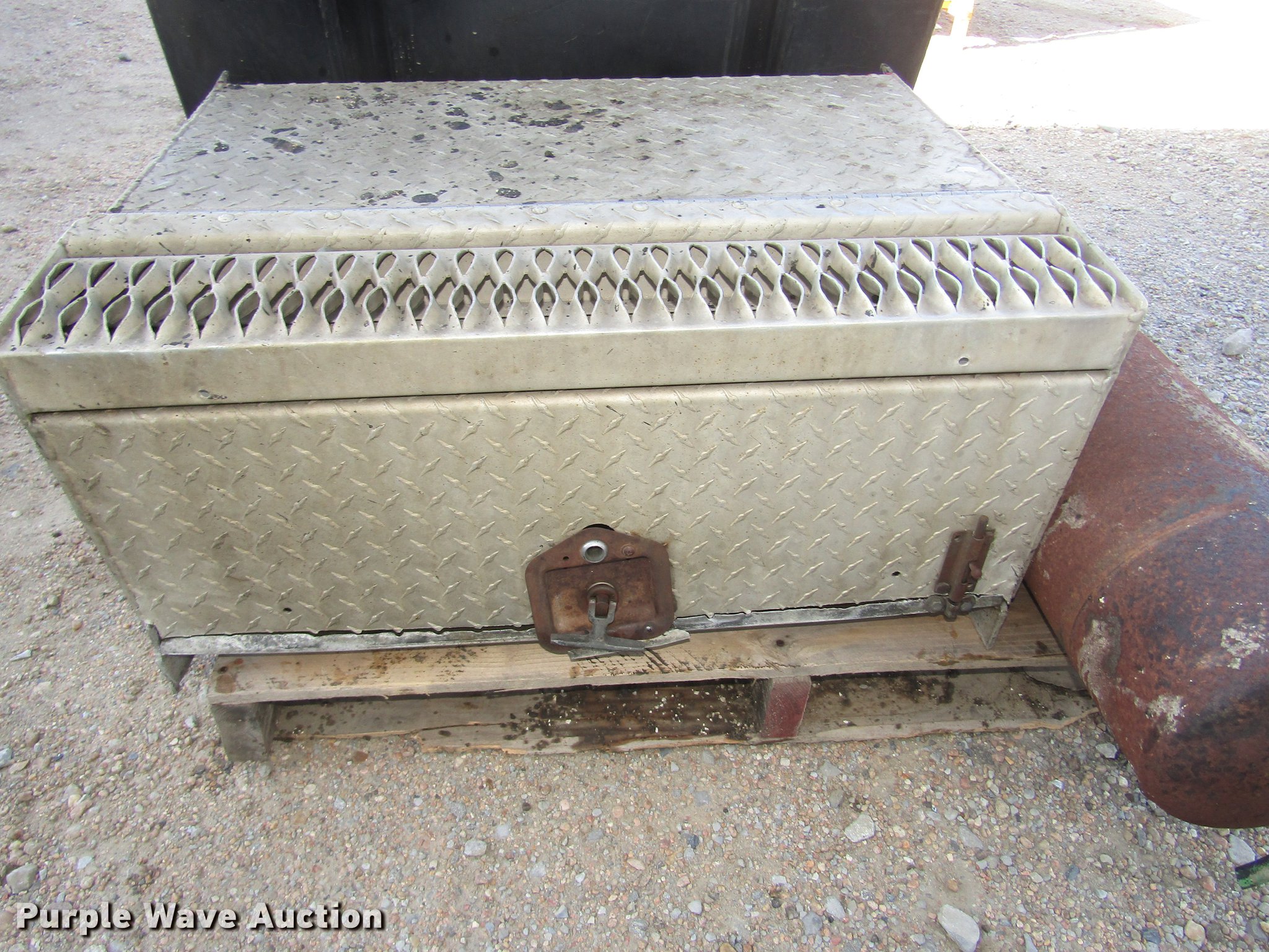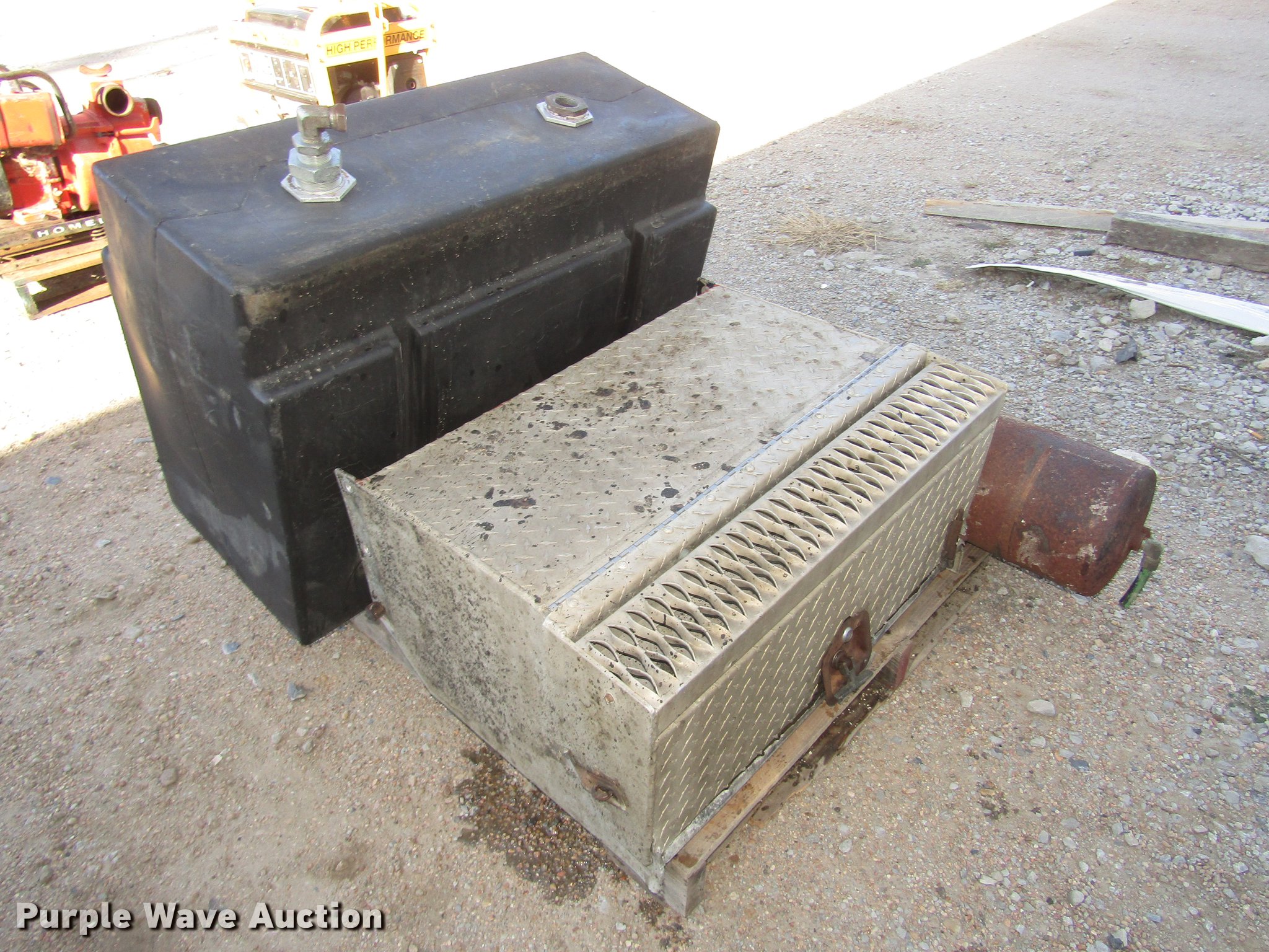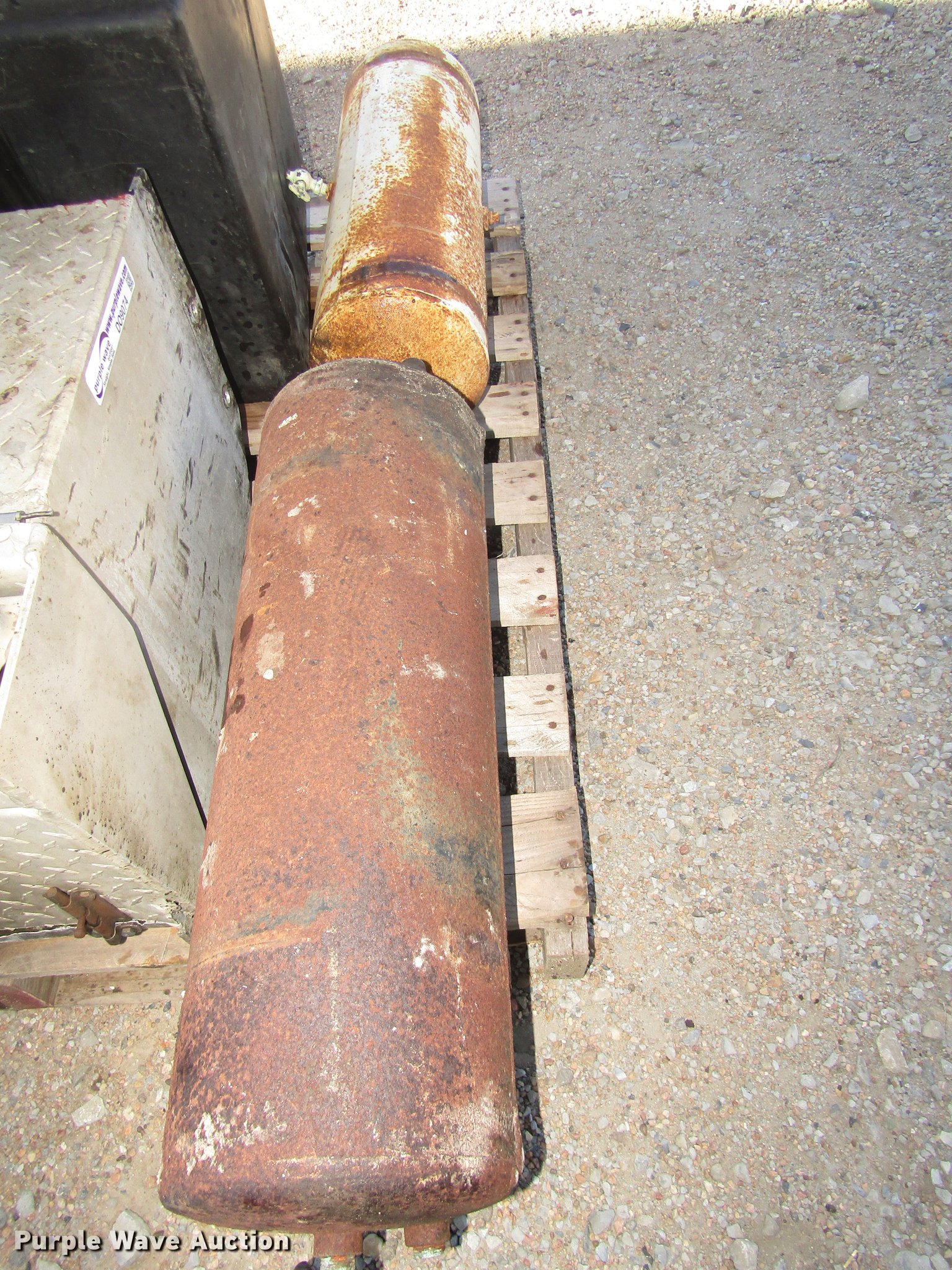 Purple Wave is selling a used Tools in Nebraska. This item is a Tools with the following: (2) air tanks, 28.5"L x 9" diameter O.D., 26"L x 8" diameter O.D., Under bed toolbox, 31"W x 21"D x 15"H, Poly hydraulic tank, 35.5"W x 16"D x 26"H, Fittings, Cloth bucket seats