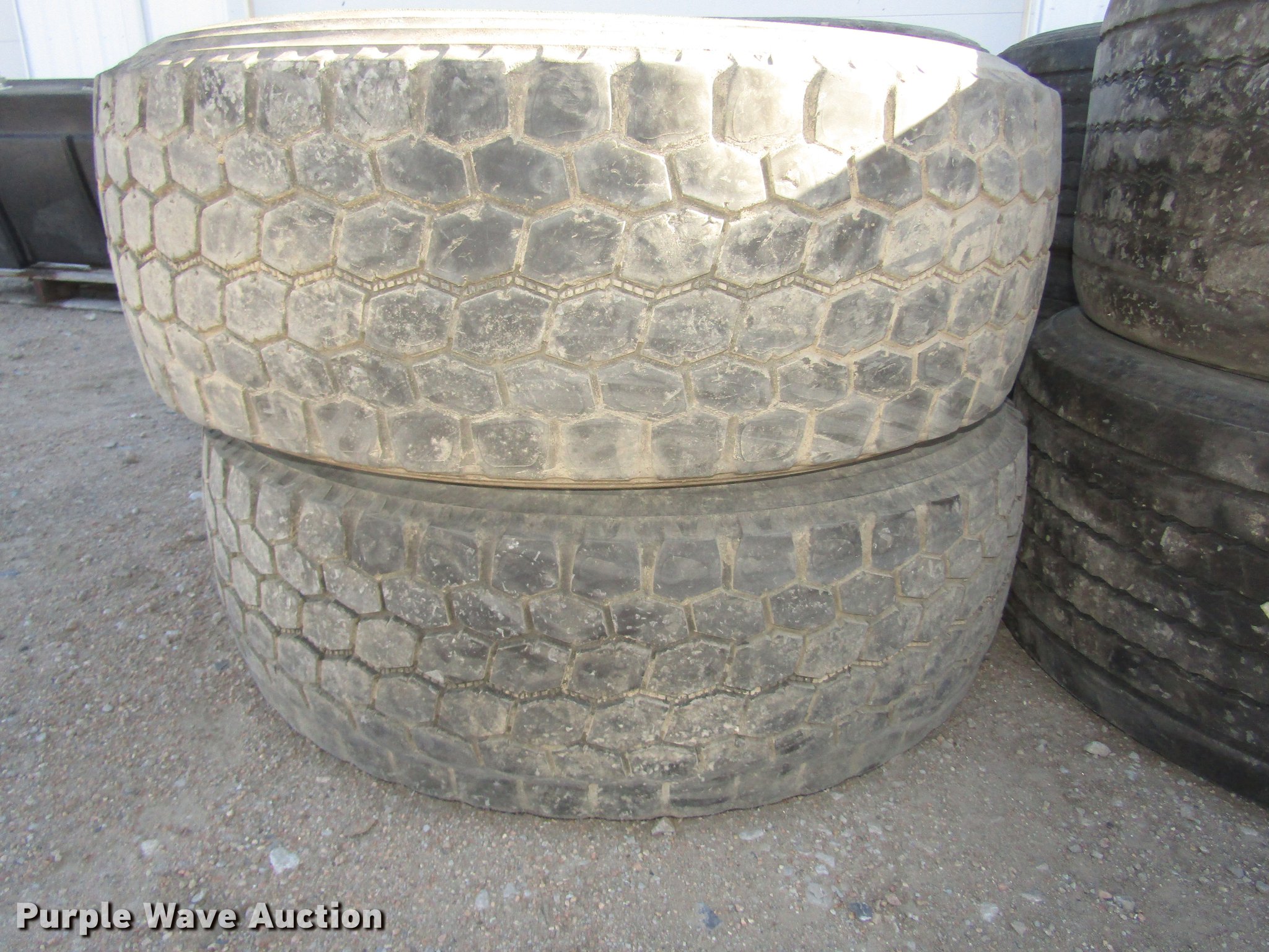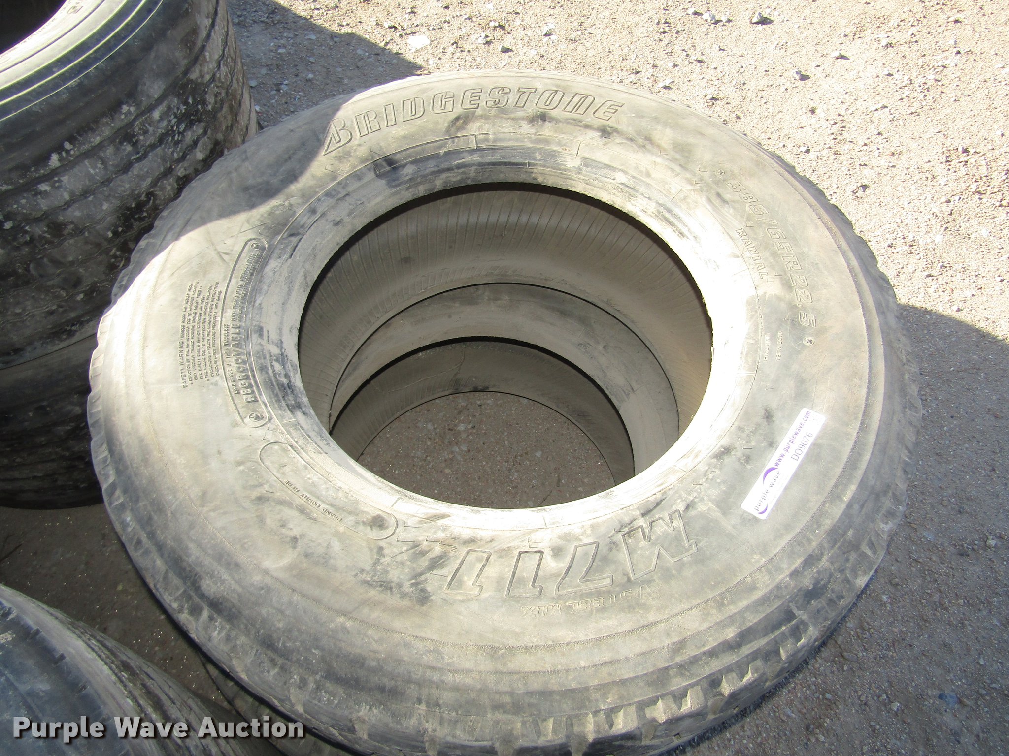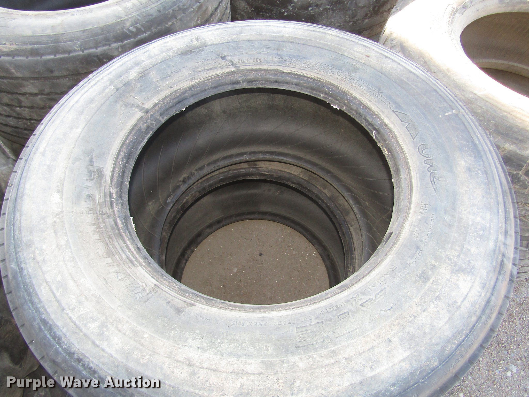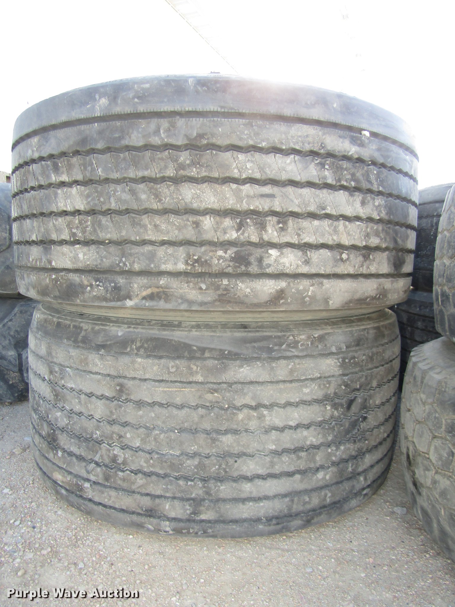 Purple Wave is selling a used Fleet Tires in Nebraska. This item is a (8) super single tires with the following: (5) Michelin 445/50R22.5, Goodyear 445/50R22.5, (2) Bridgestone 385/65R22.5