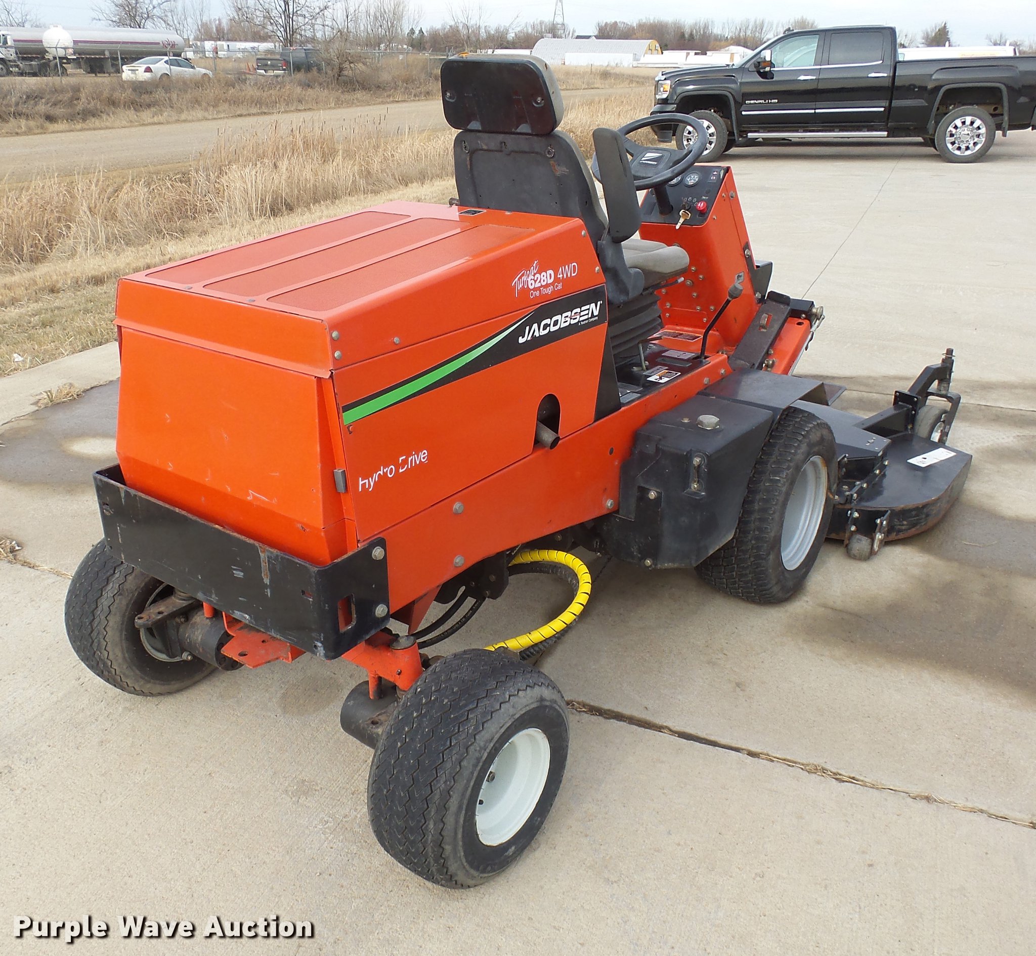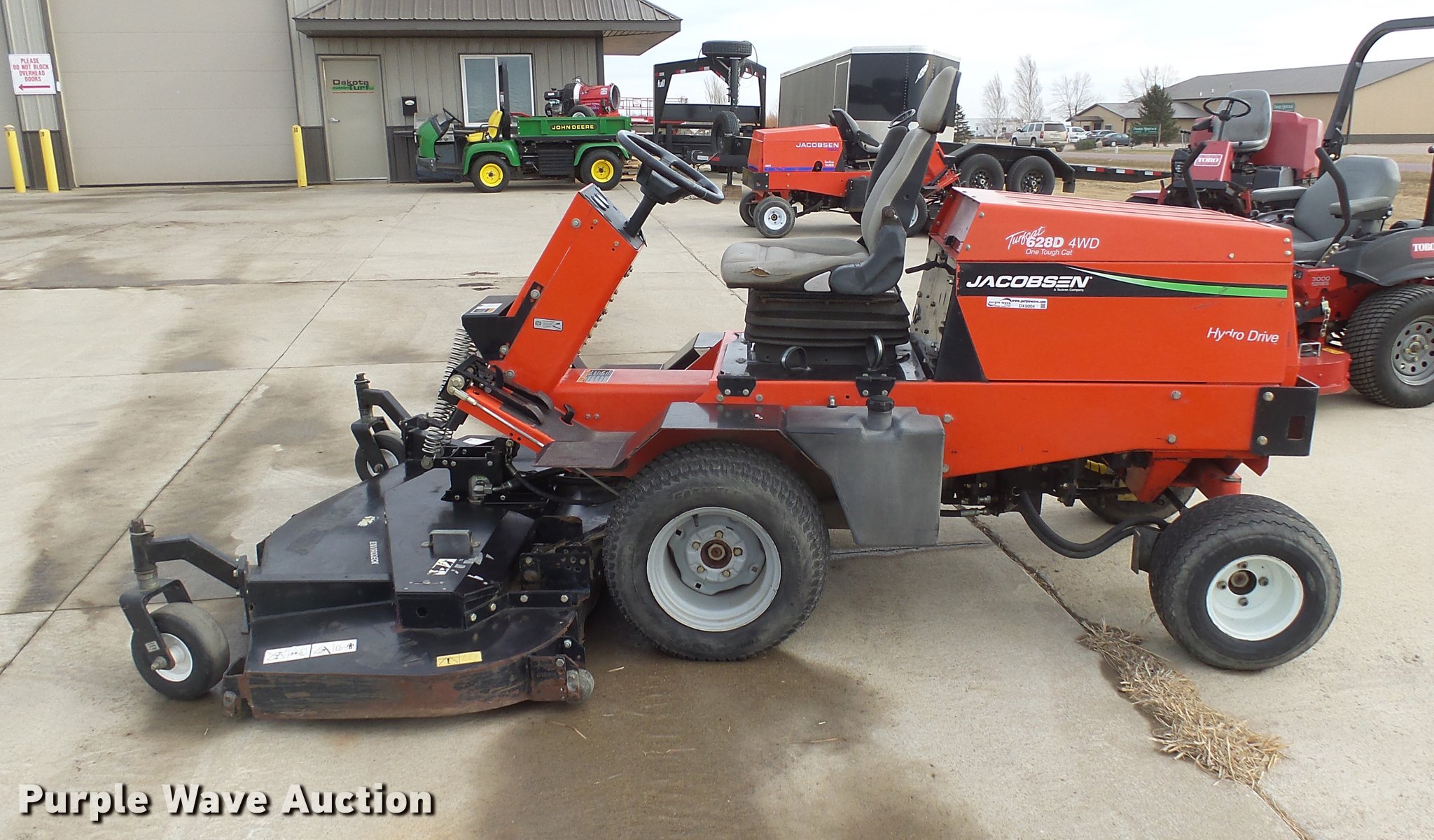 Purple Wave is selling a used Commercial Turf Mower in South Dakota. This item is a Jacobsen 628D Turf Cat lawn mower with the following: 2,929 hours on meter, 72" cut, Kubota D1105 diesel engine, 29 HP, Hydrostatic transmission, Four wheel drive, (2) 11x4.5 casters, 23x10.5-12 front tires, 18x8.5-9 rear tires, Serial 94671401946