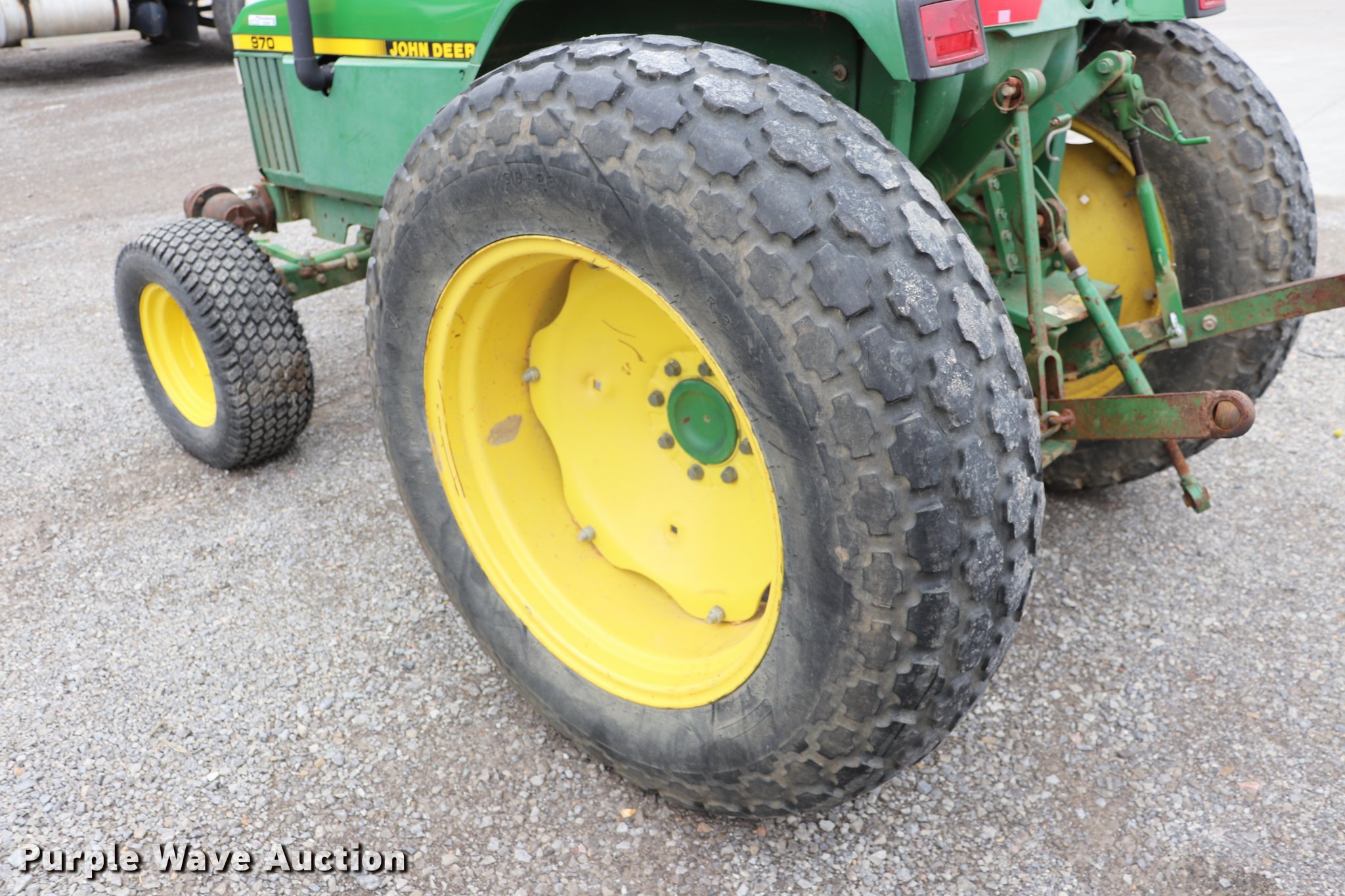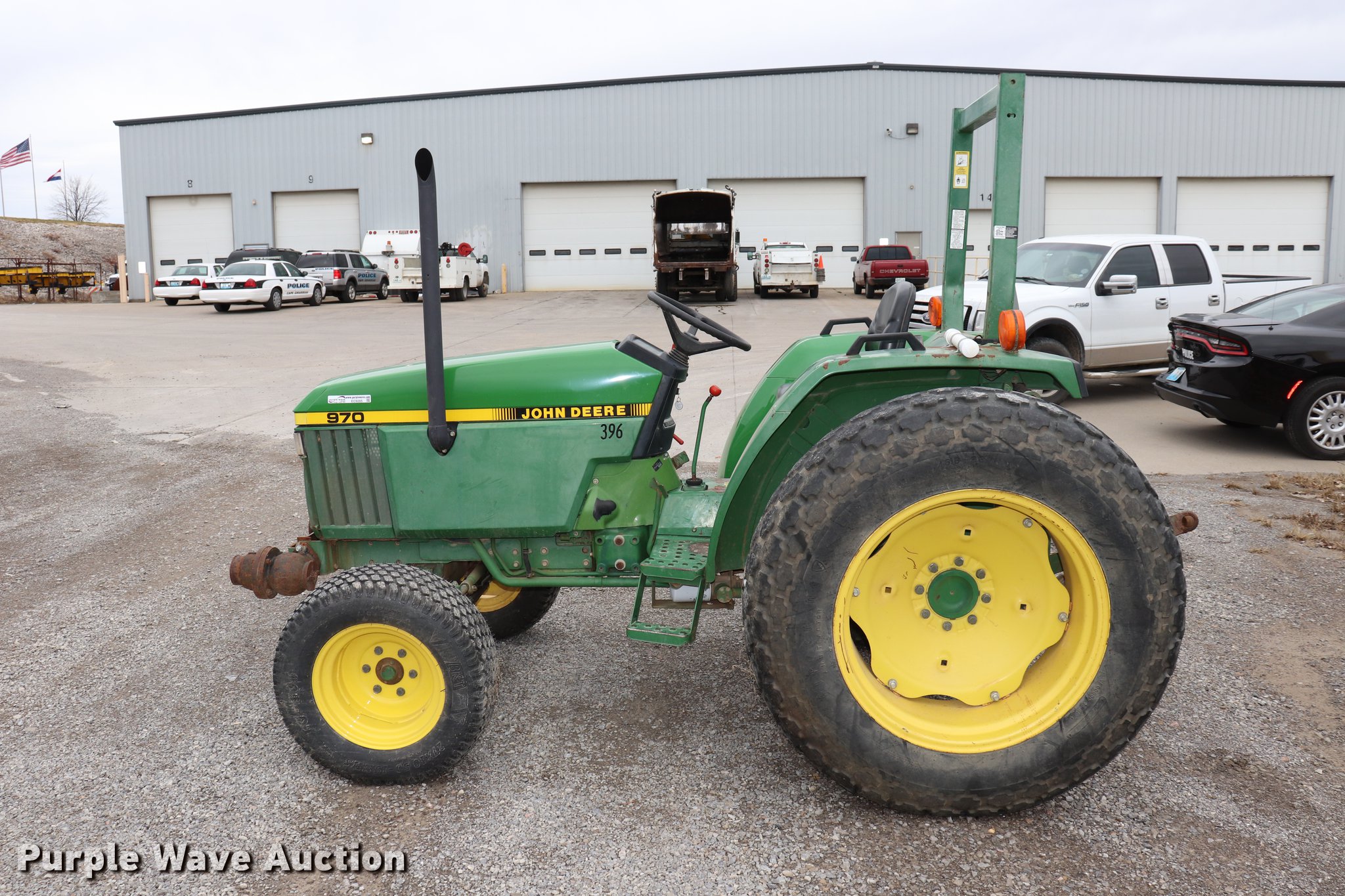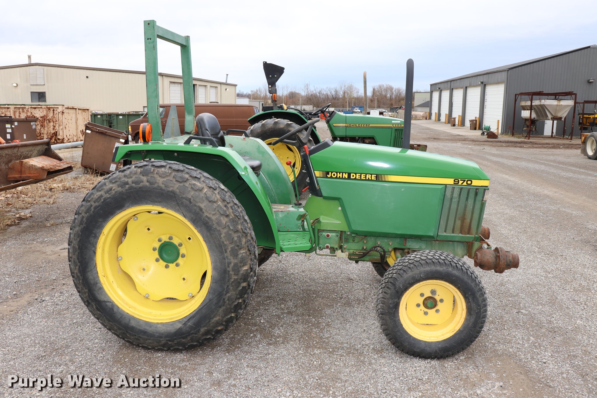 Purple Wave is selling a used Tractor in Missouri. This item is a John Deere 970 tractor with the following: 2,049 hours on meter, John Deere four cylinder diesel engine, Manual transmission, 3F gears, Suspension seat, Three point, 540 PTO, 27-10.50 front tires, 13.6-28 rear tires, Unit has been hit on the right side, but has been repaired, Serial M00970B140332, Unit# 396