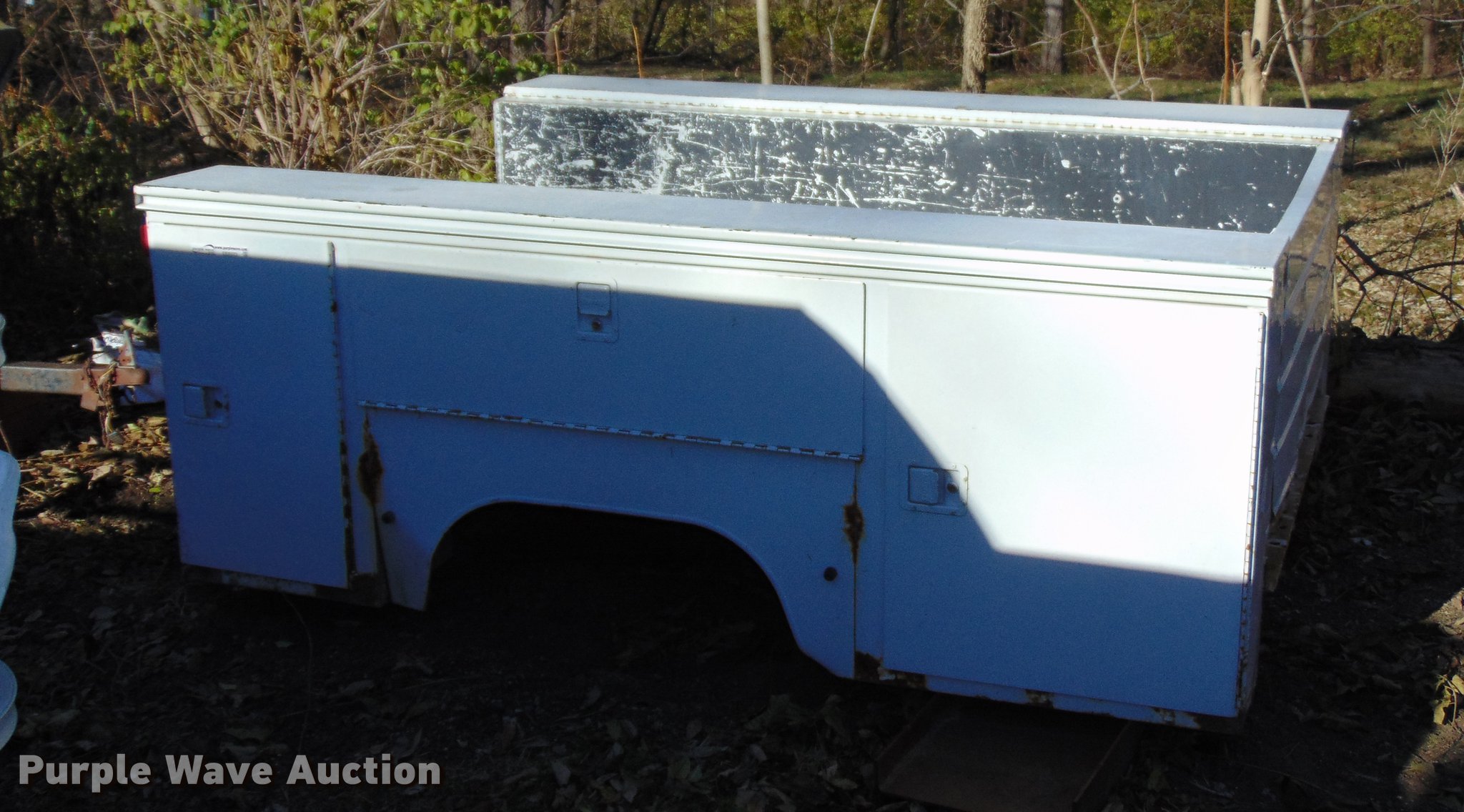 Purple Wave is selling a used Automotive Parts or Acces. in Iowa. This item is a Knapheide utility bed with the following: 8'L x 4'W, (6) compartments, Serial 746171-753942