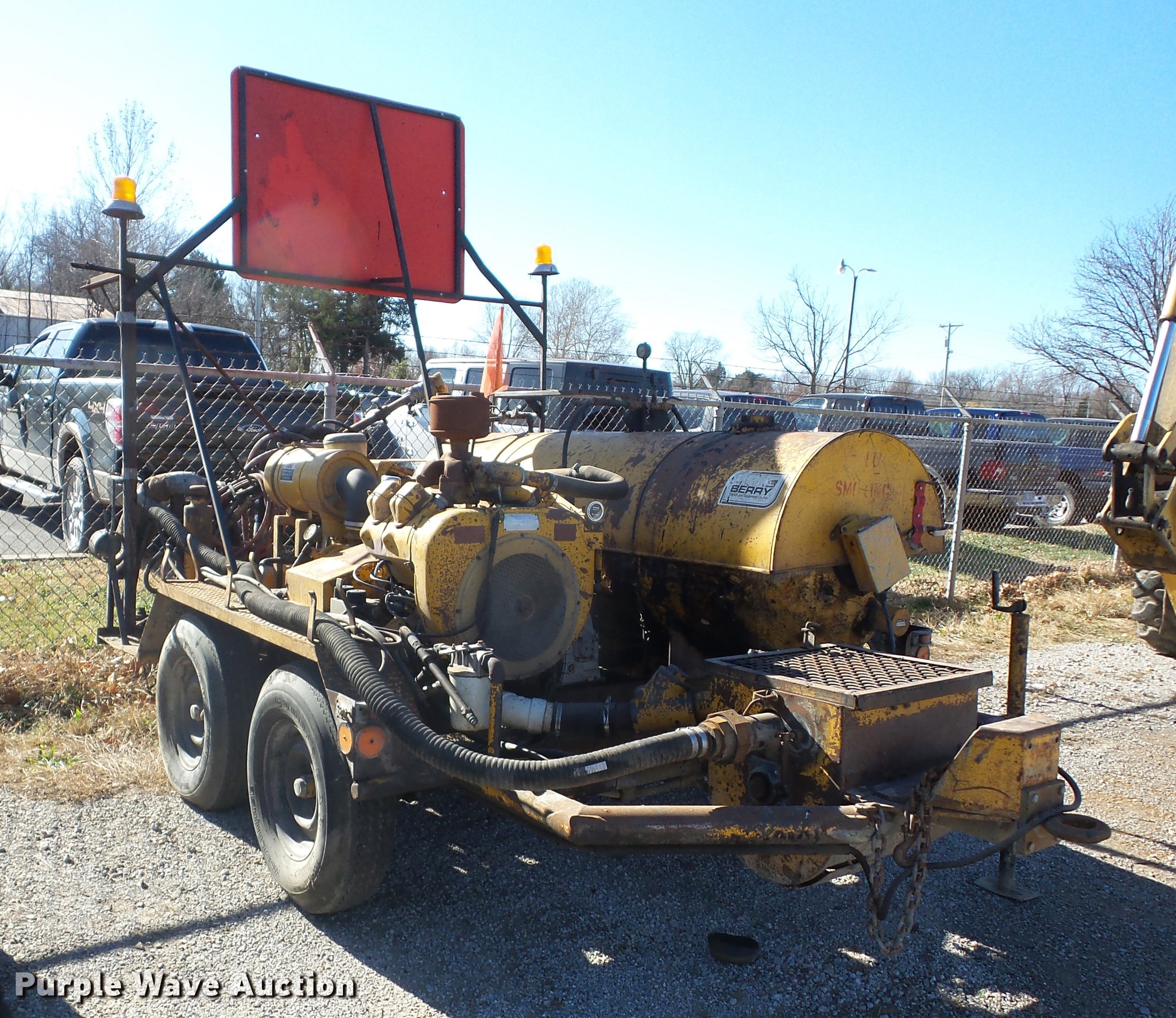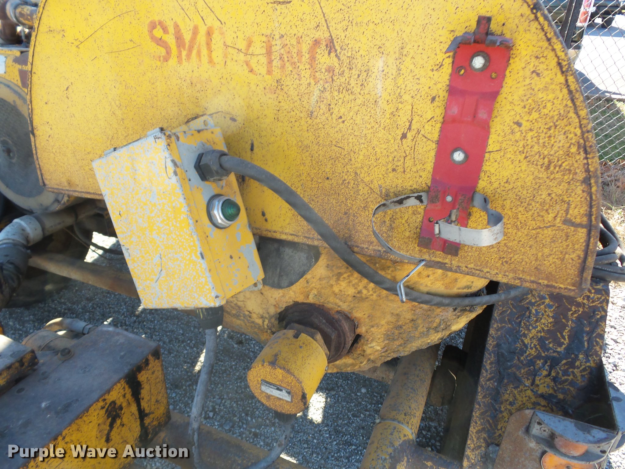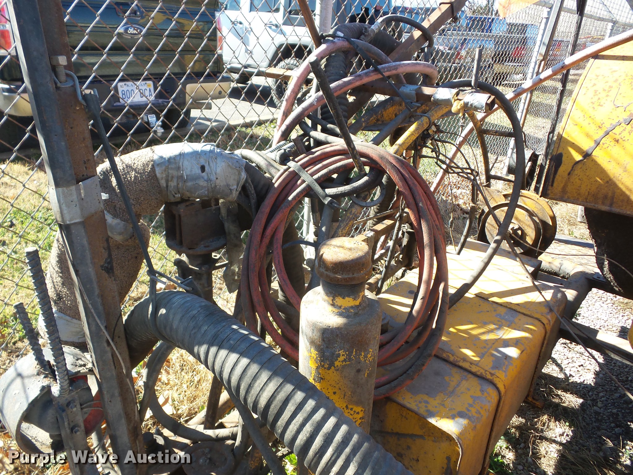 Purple Wave is selling a used Pot Hole Patcher in Kansas. This item is a 1985 AMZ Magnum pot hole patcher with the following: Wisconsin V465D four cylinder gas engine, California F series blower, American IMC T25 air compressor, Diesel fuel flush tank, Pintle hitch, 7.00-15 tires