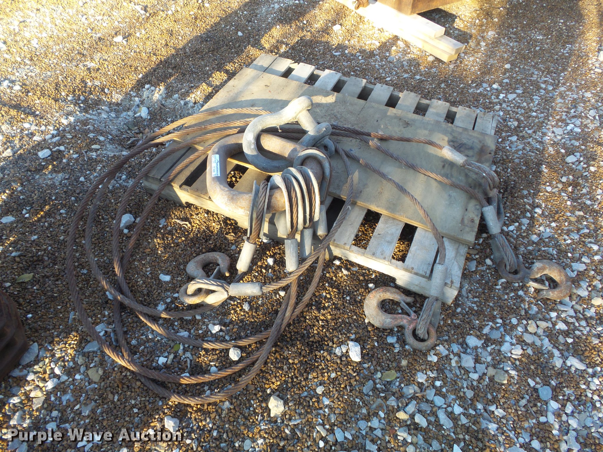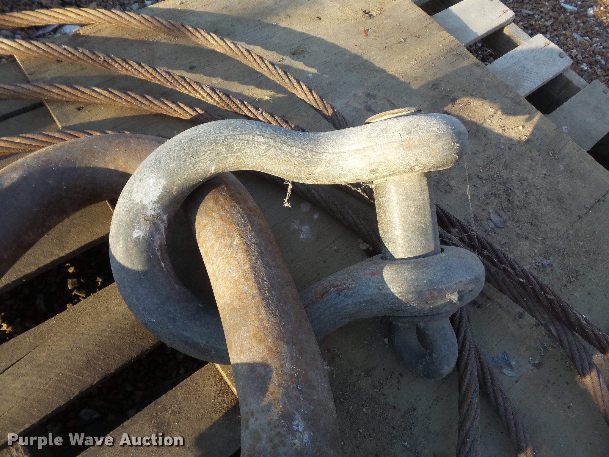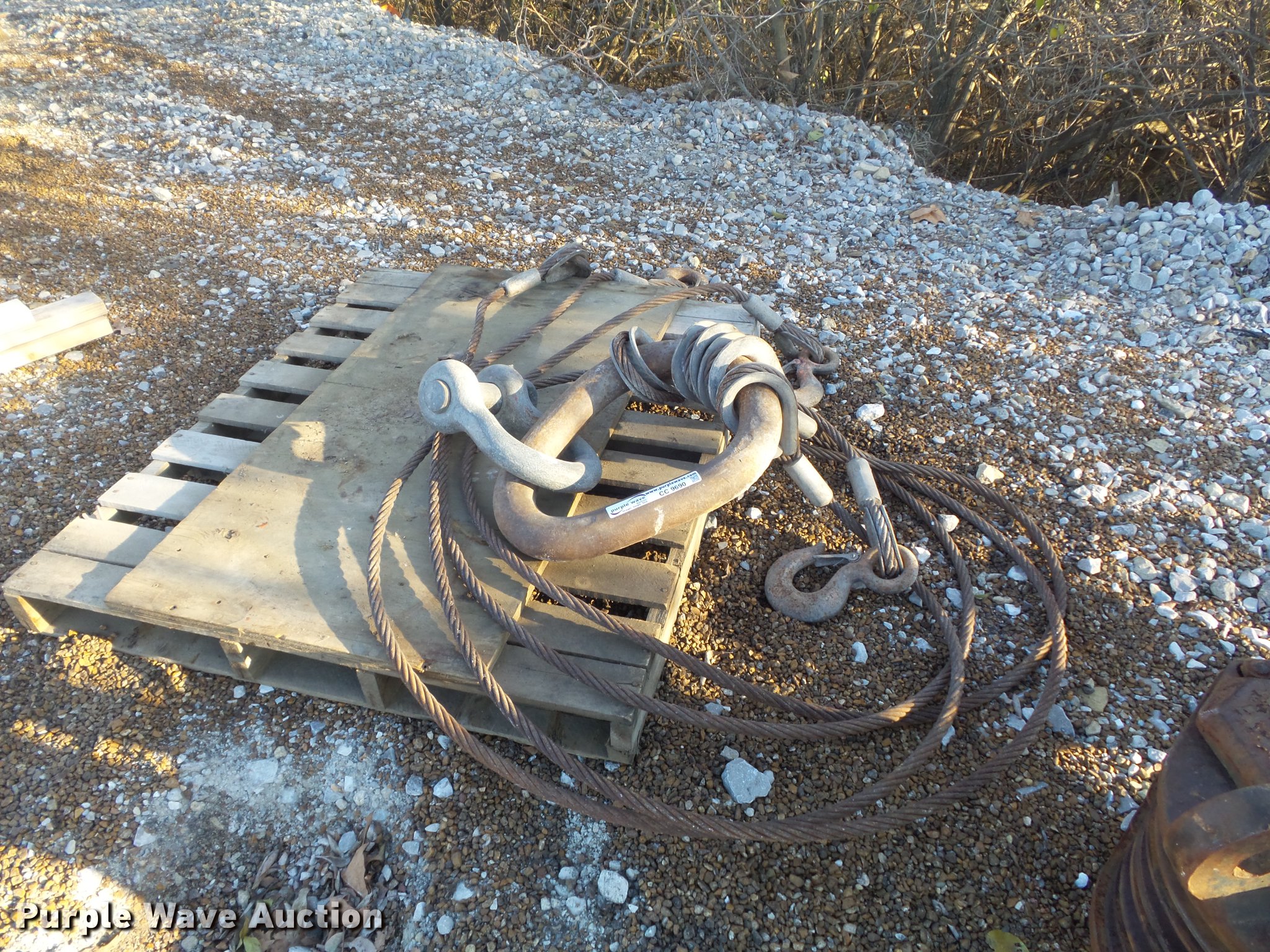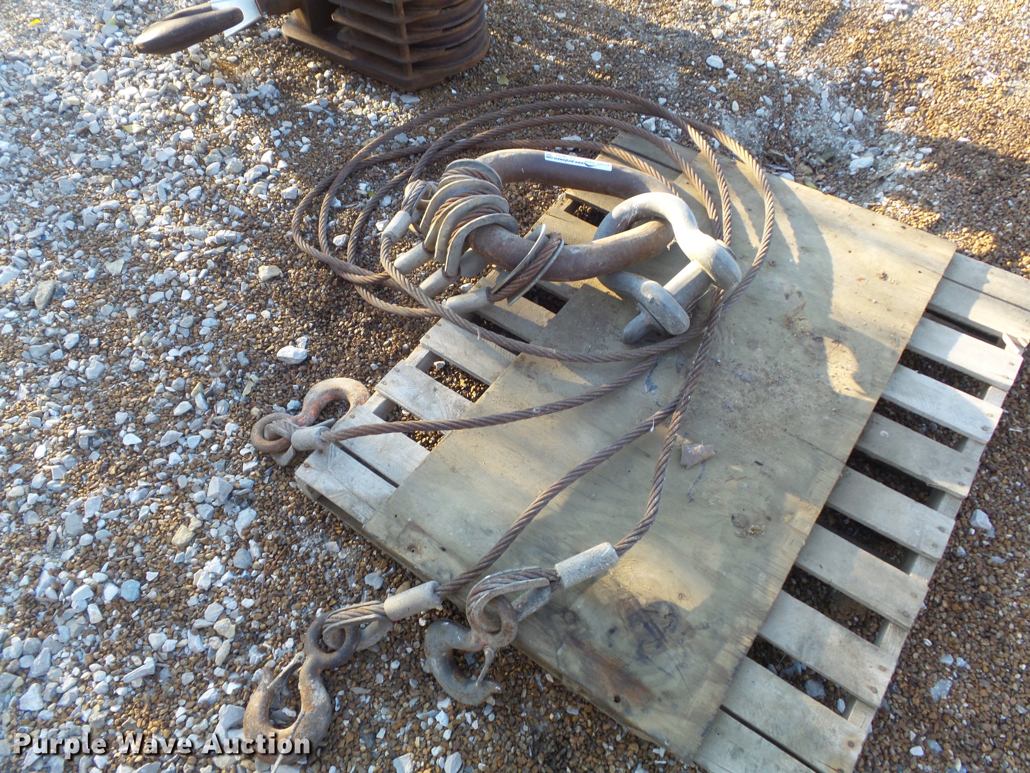 Purple Wave is selling a used Lifting and Rigging in Missouri. This item is a Lifting sling with the following: 35 ton clevis, (4) cables, 10'L x 3/4" diameter, (4) hooks with safety latches