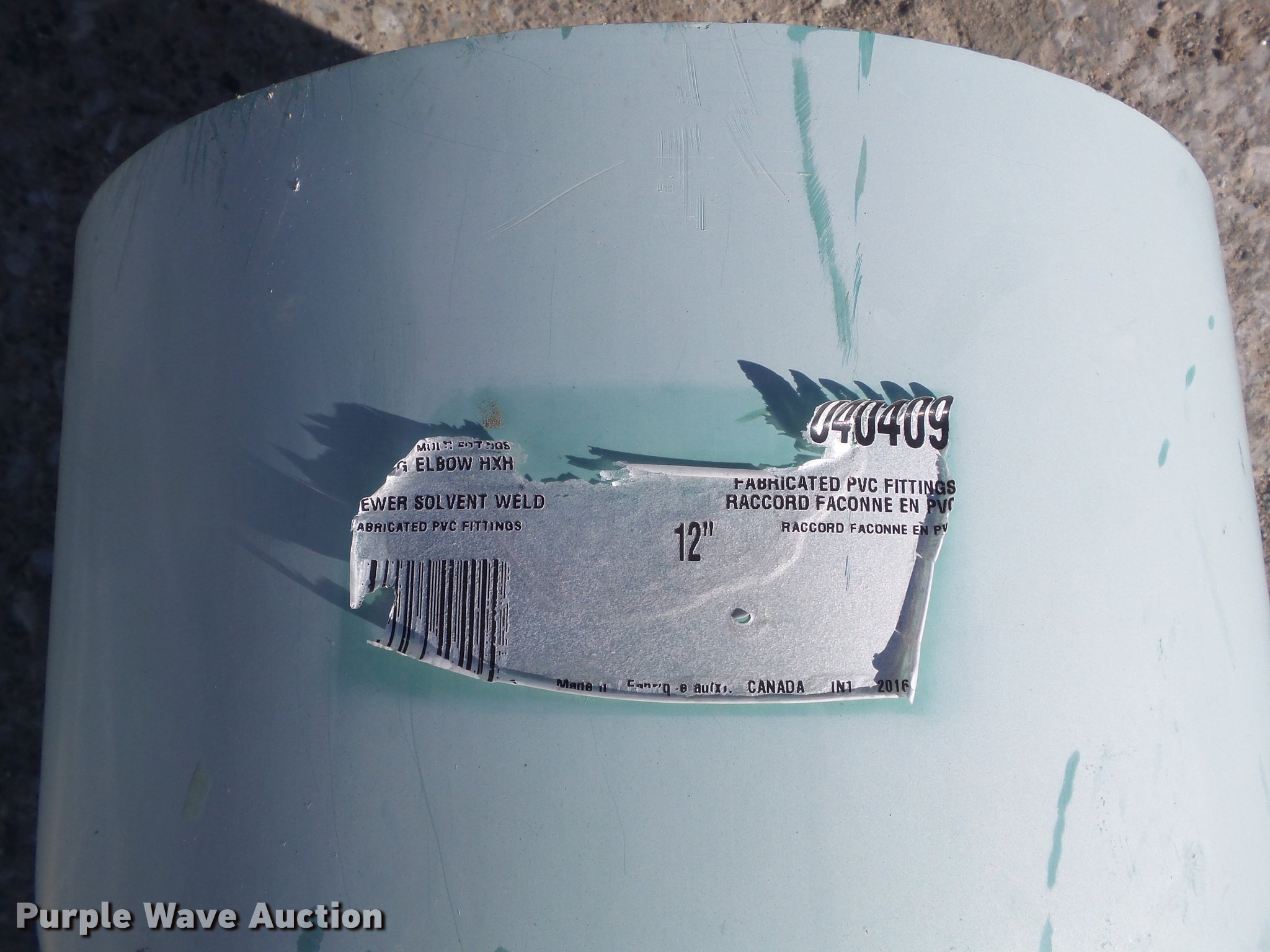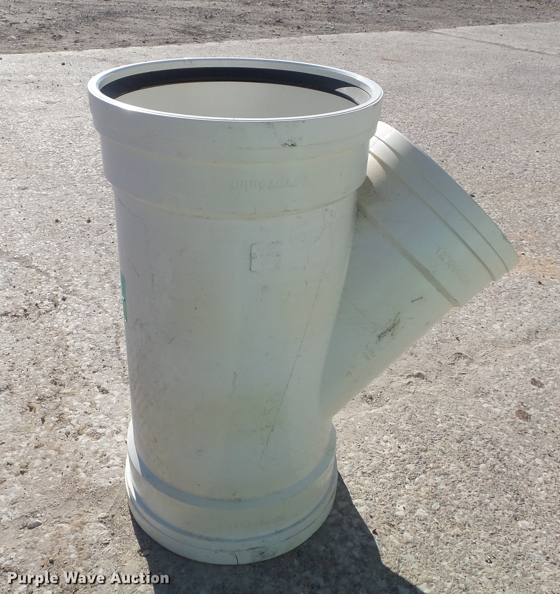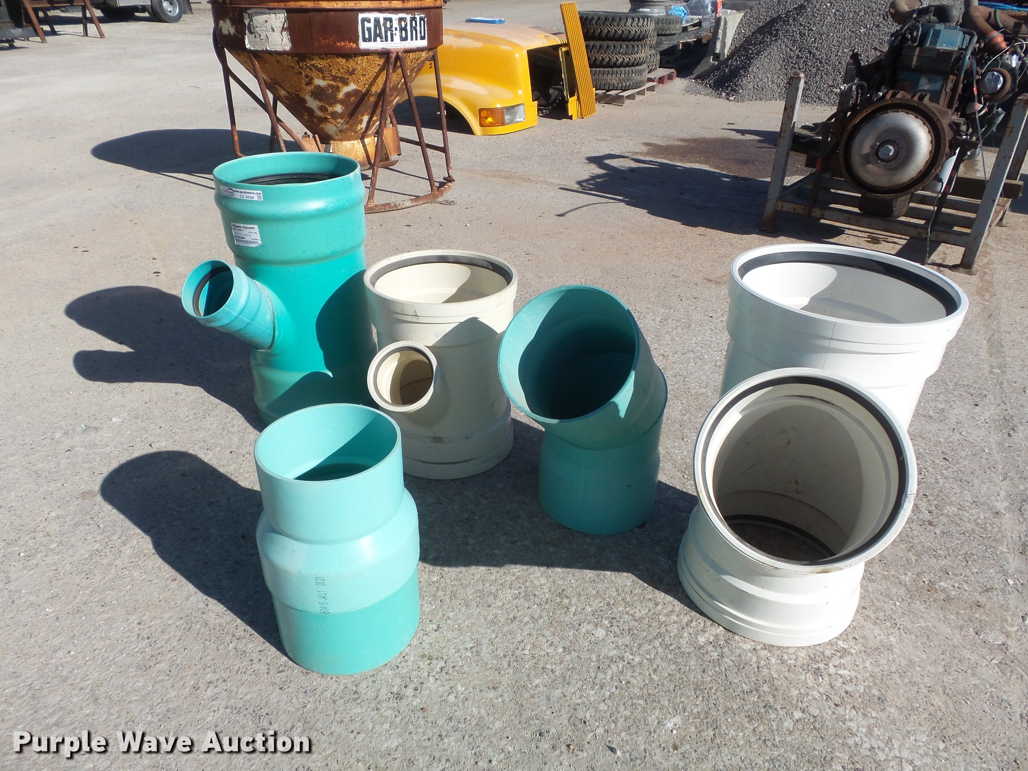 Purple Wave is selling a used Pipe in Missouri. This item is a PVC fittings with the following: (2) 45 degree wye, 15" x 15" x 6" openings, 45 degree elbow, 12" diameter, 12" x 10" extension bushing, 45 degree wye, 15" x 15" x 12" openings
