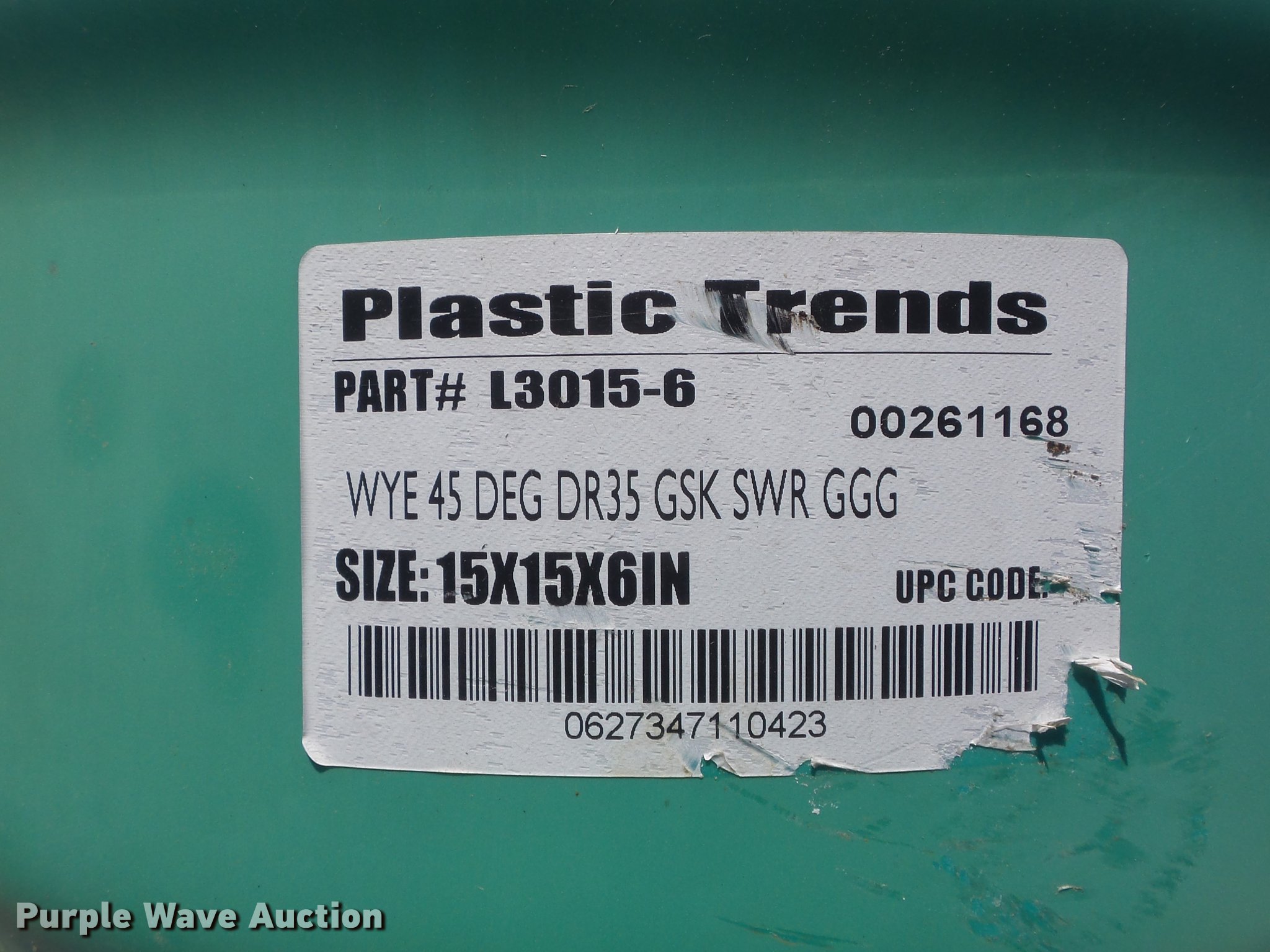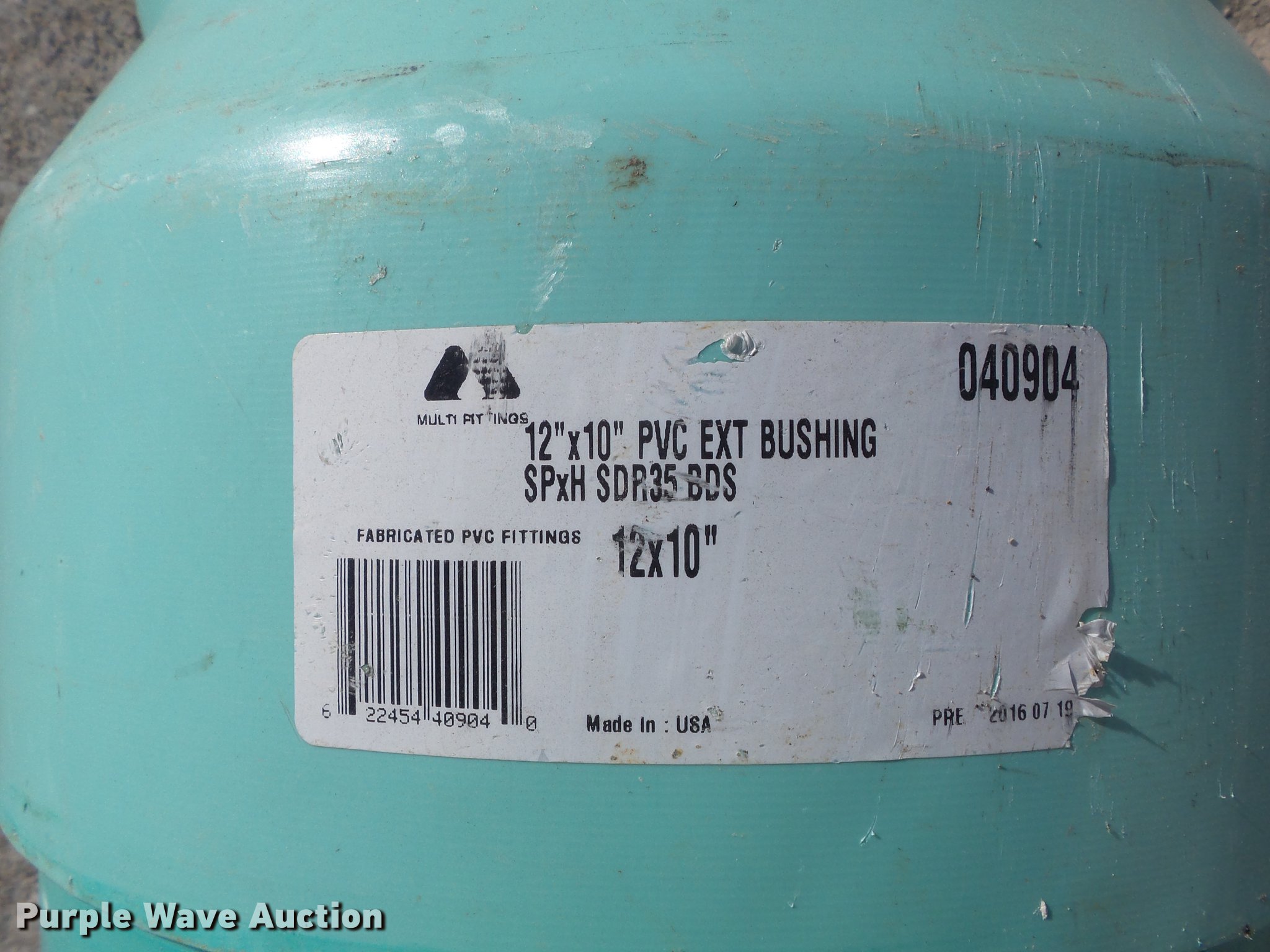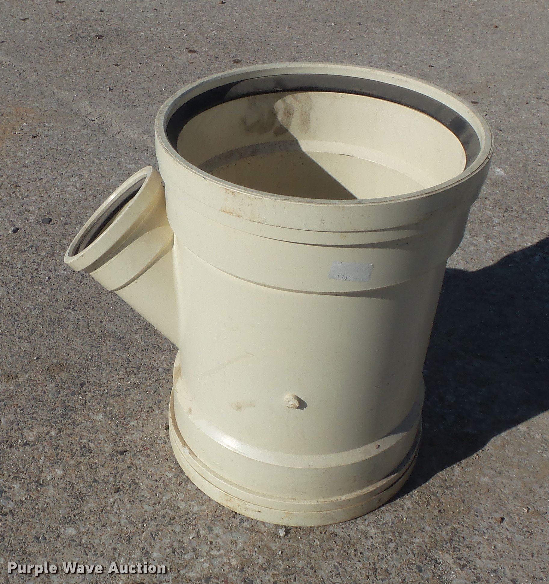 Purple Wave is selling a used Pipe in Missouri. This item is a PVC fittings with the following: (2) 45 degree wye, 15" x 15" x 6" openings, 45 degree elbow, 12" diameter, 12" x 10" extension bushing, 45 degree wye, 15" x 15" x 12" openings