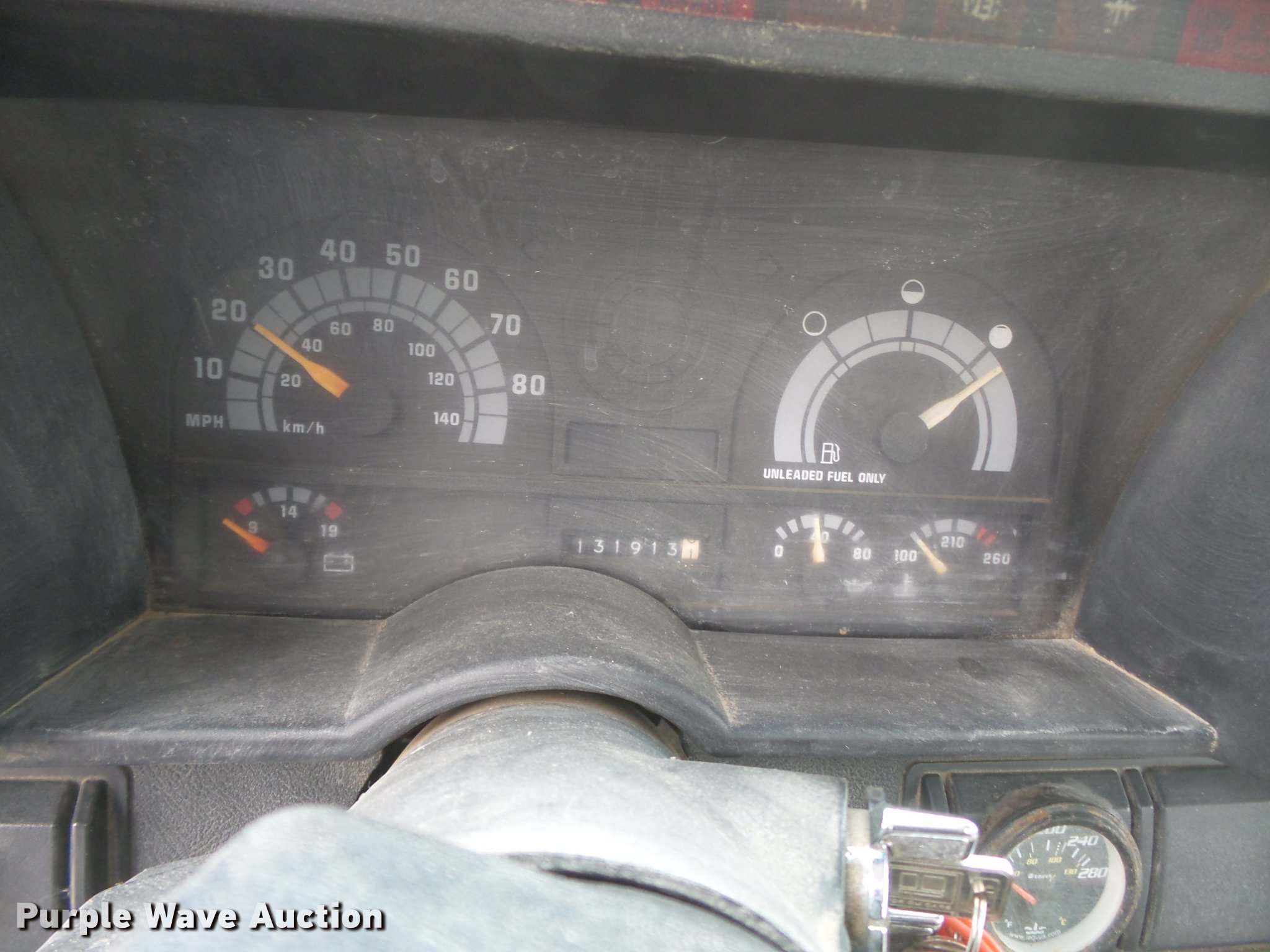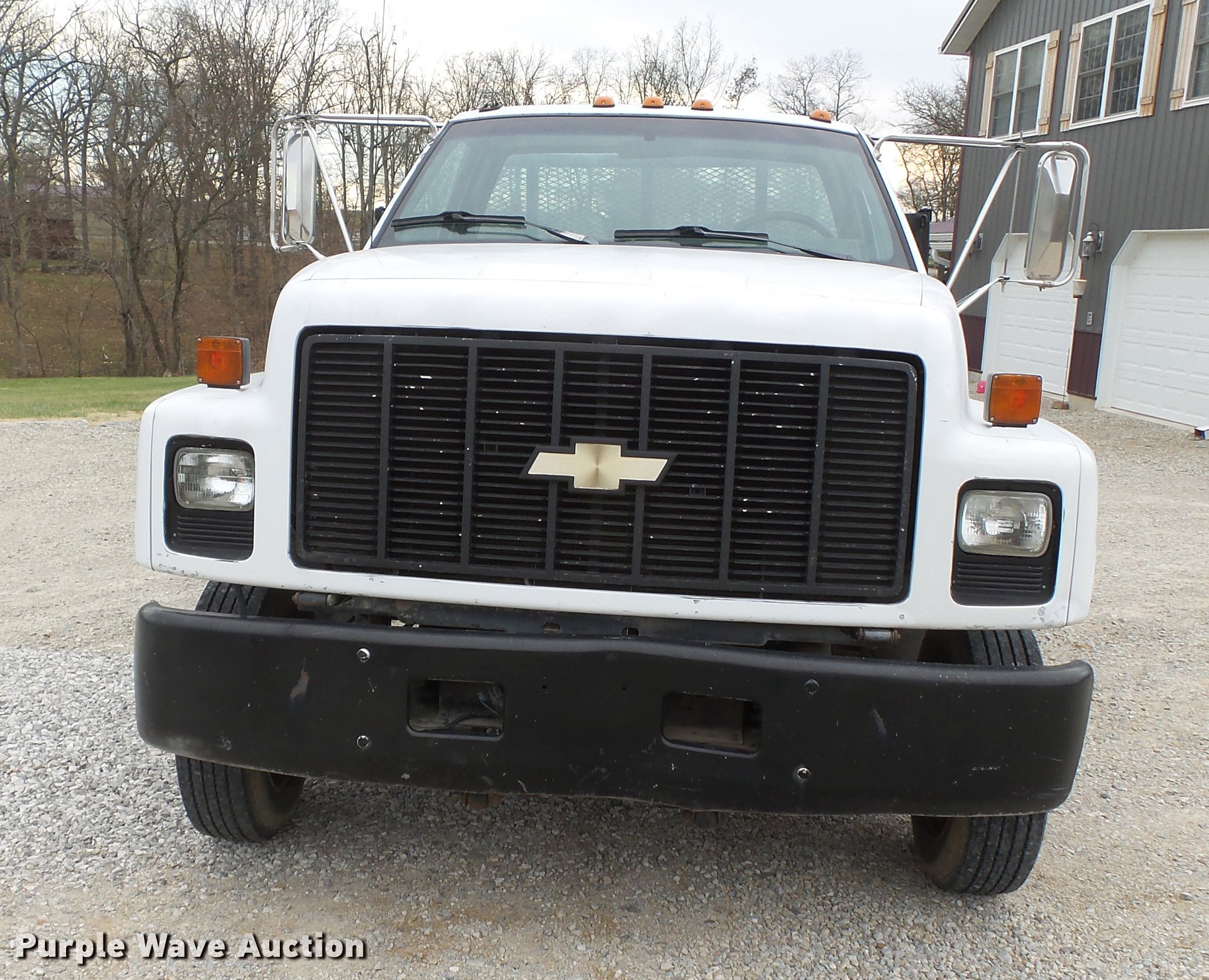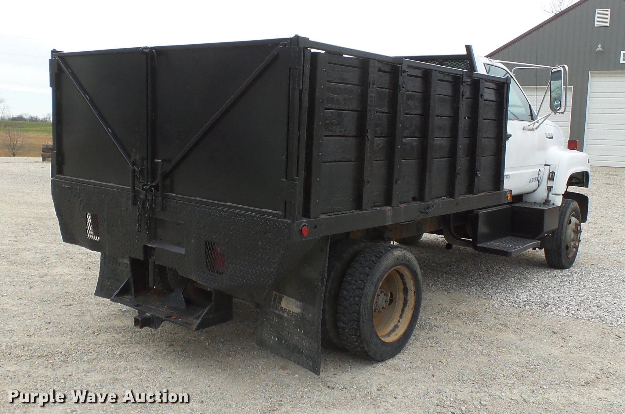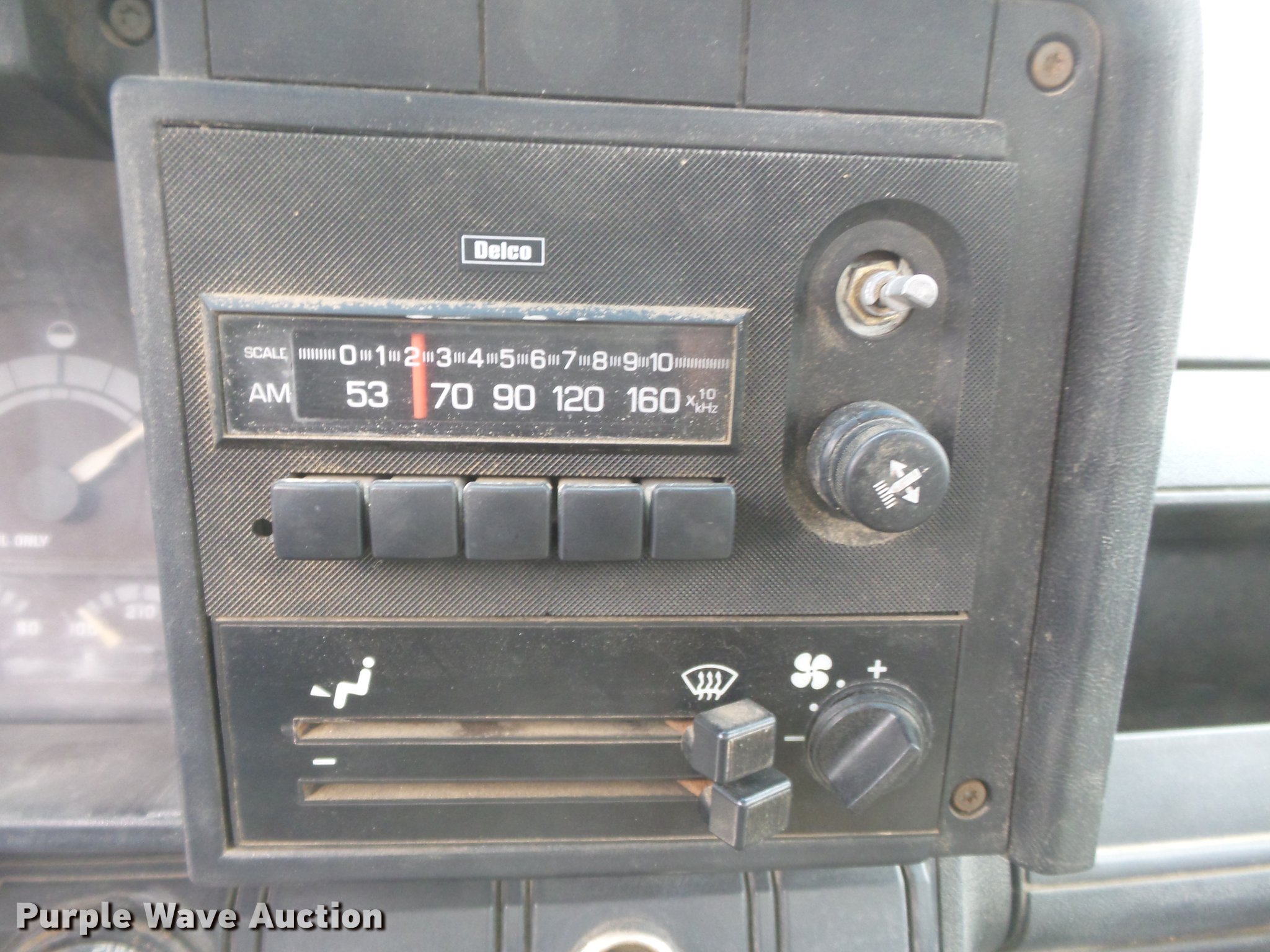Purple Wave is selling a used Construction Dump Truck in Missouri. This item is a 1990 Chevrolet Kodiak dump truck with the following: 131,913 miles on odometer, 6.0L V8 gas engine, Automatic transmission, Heat, AM/FM, Trailer brake controller, 9'L x 8'W steel dump bed, 36" side height, Single ram hoist, Manual operated end gate, Receiver hitch, 144" wheelbase, Spring suspension, Hydraulic brakes, 225/70R19.5 tires, No exhaust, Exhaust manifolds bad, Rust holes in floor