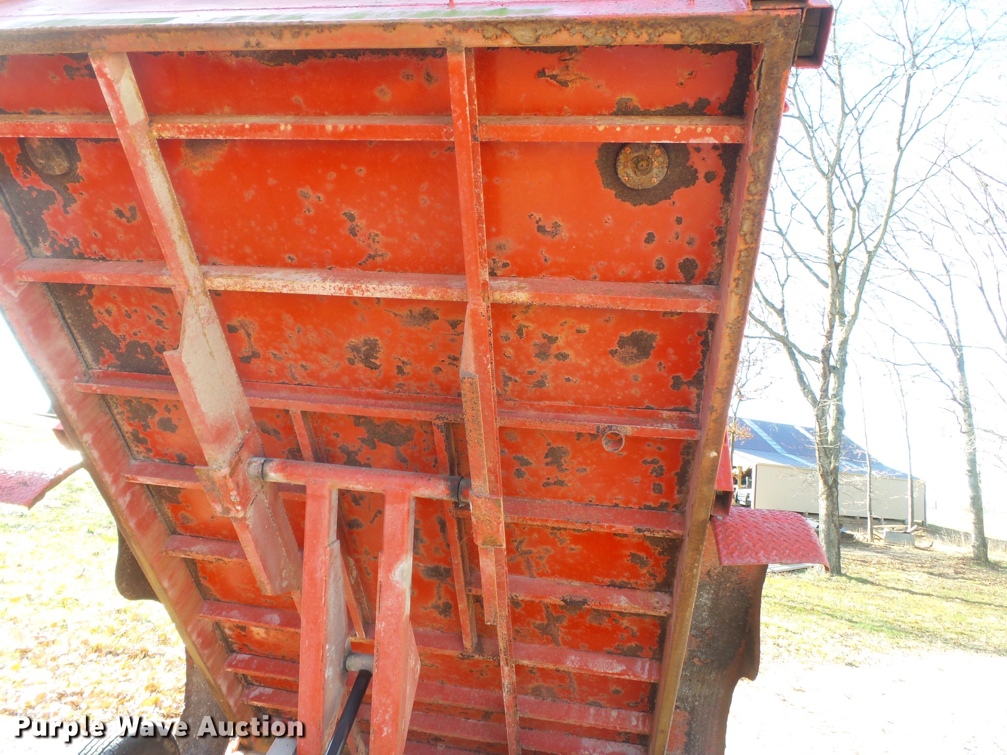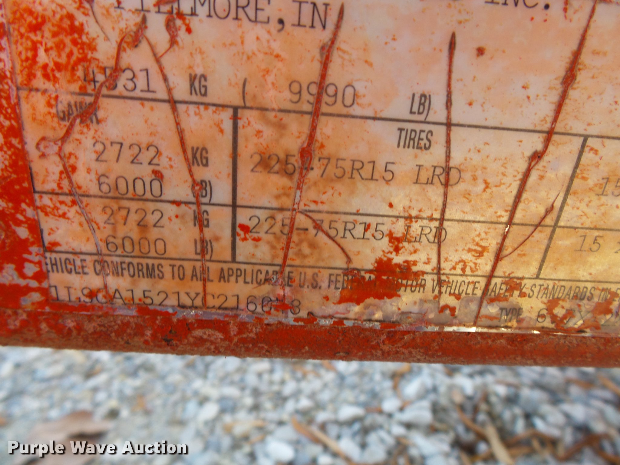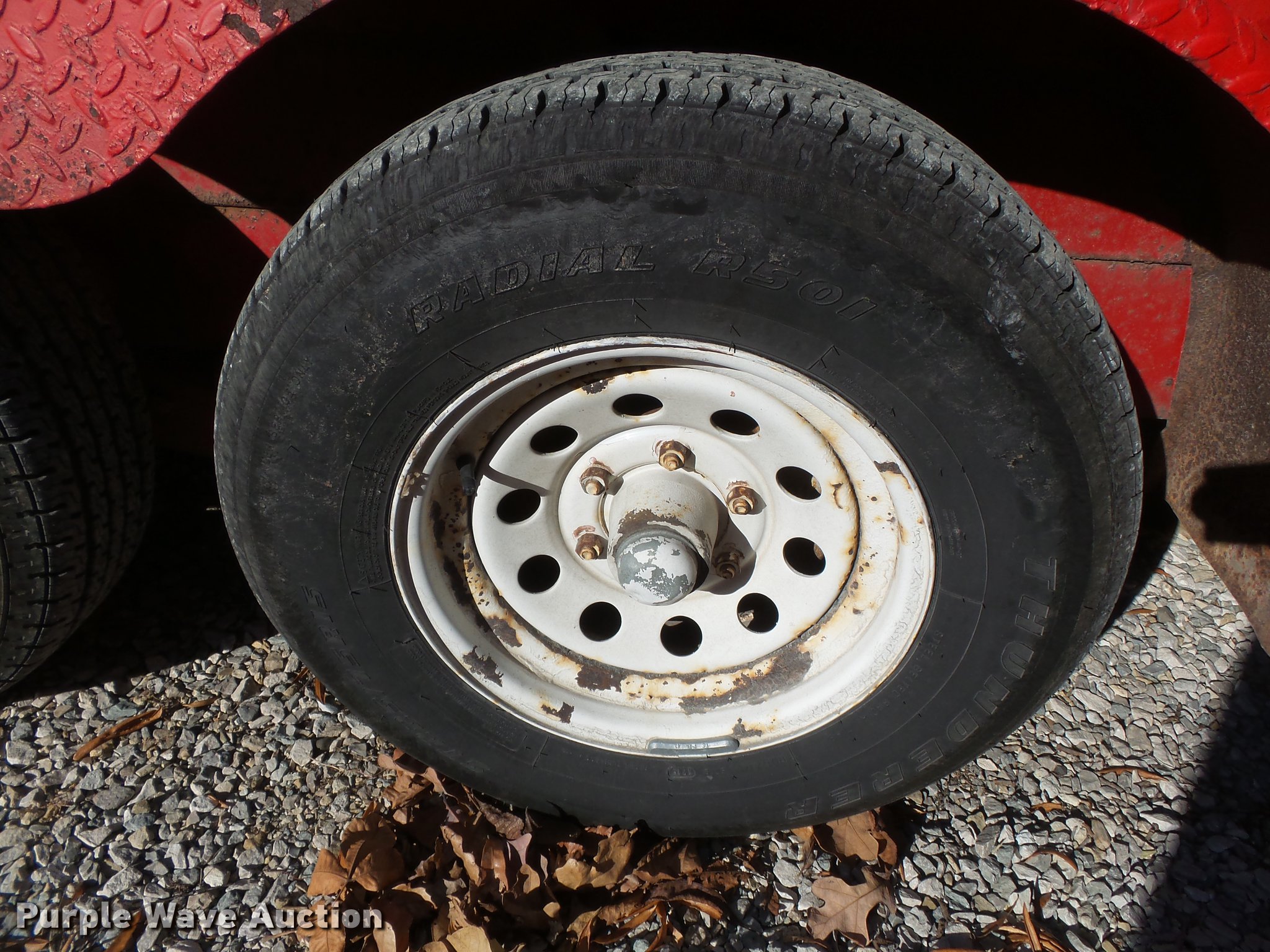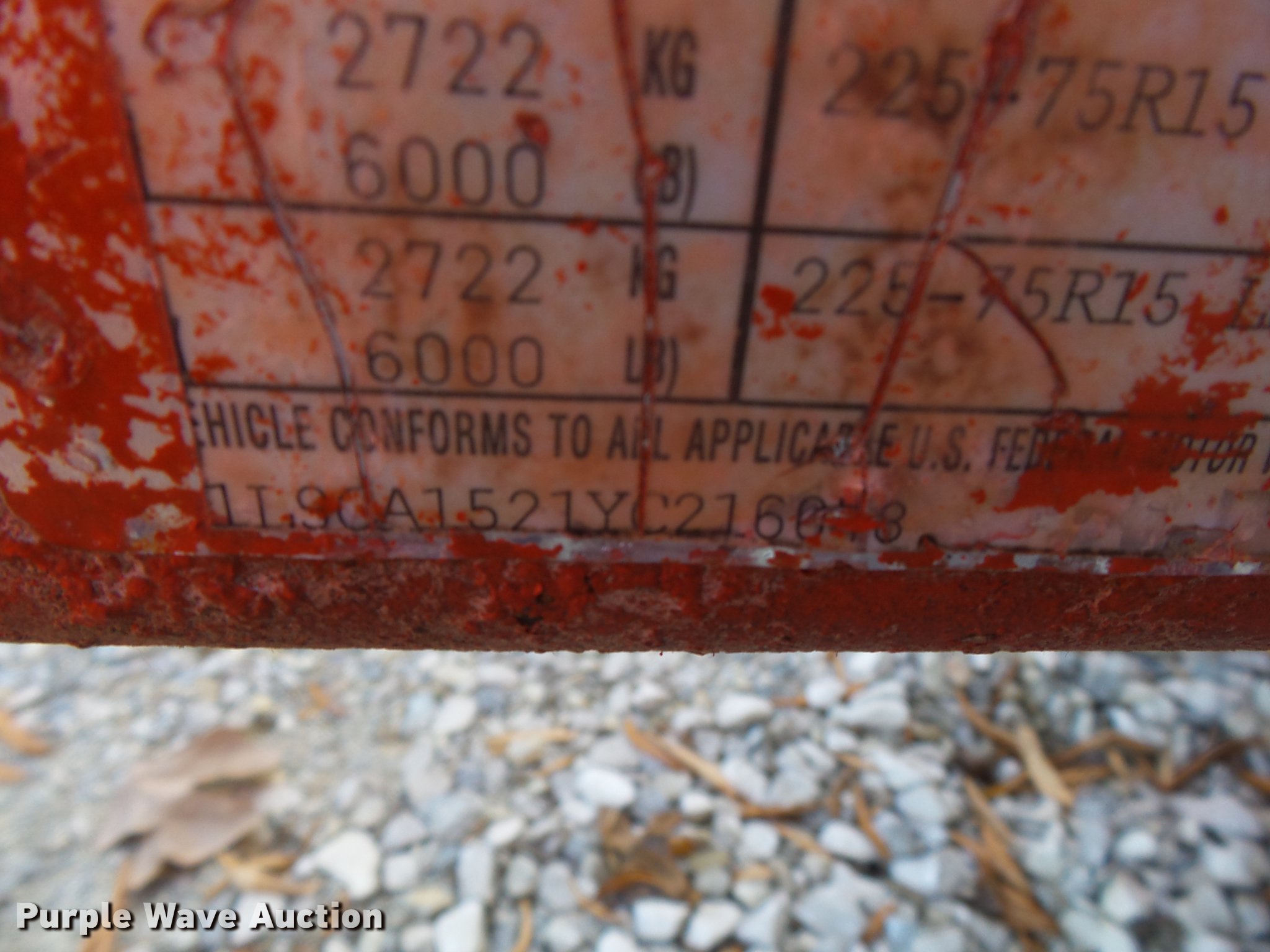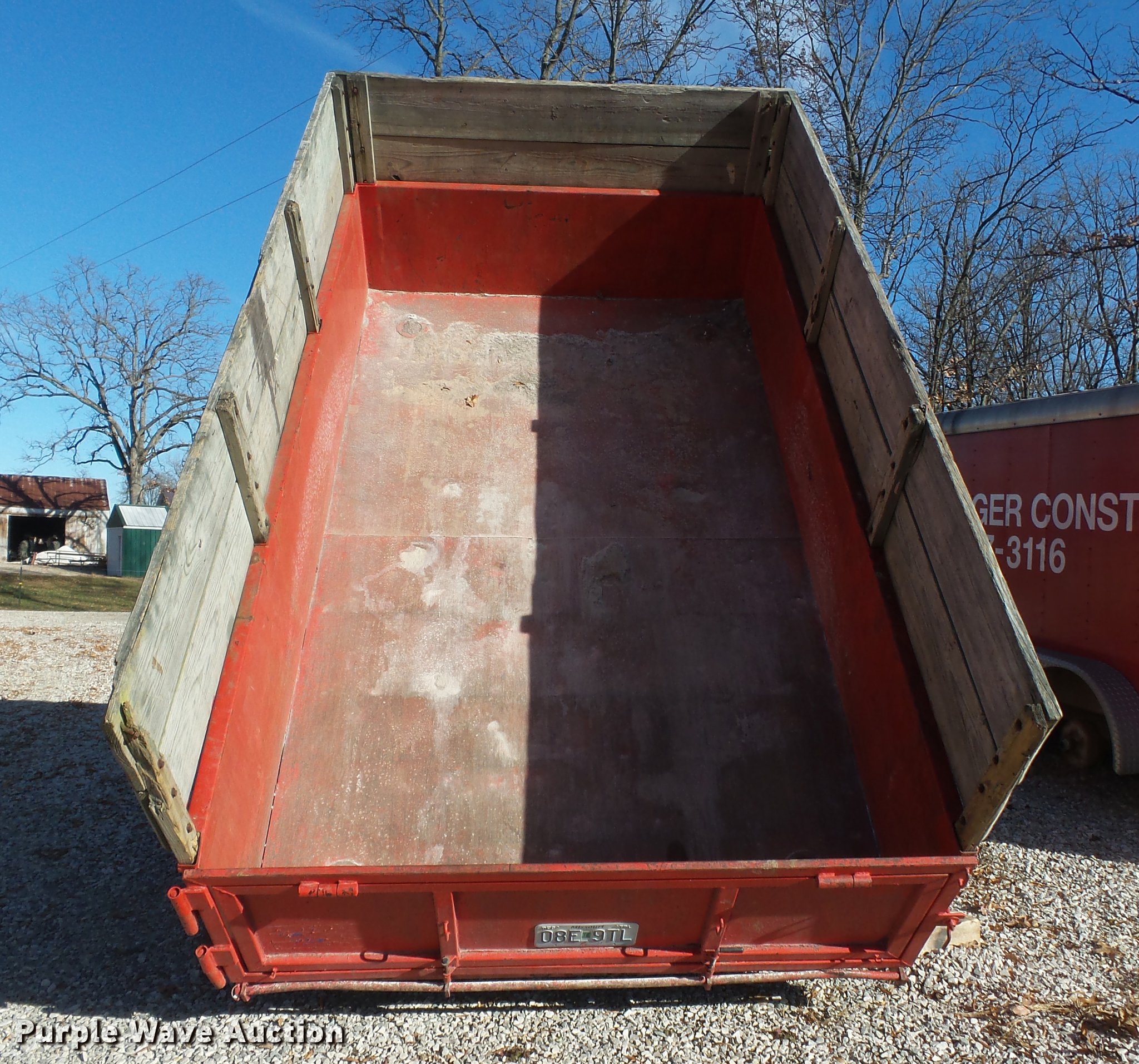 Purple Wave is selling a used Dump Trailer in Missouri. This item is a 2000 Liberty end dump trailer with the following: 16' overall length, 12'L x 84"W deck, 30" side height, 22"H side boards, 74"L ramps, Steel construction, Single ram hoist, End gate, Tethered remote, Toolbox, 2 5/16" ball hitch, Single leg landing gear, Tandem axle, Spring suspension, Electric brakes, Steel wheels, 225/75R15 tires, GVWR 9,990 lbs