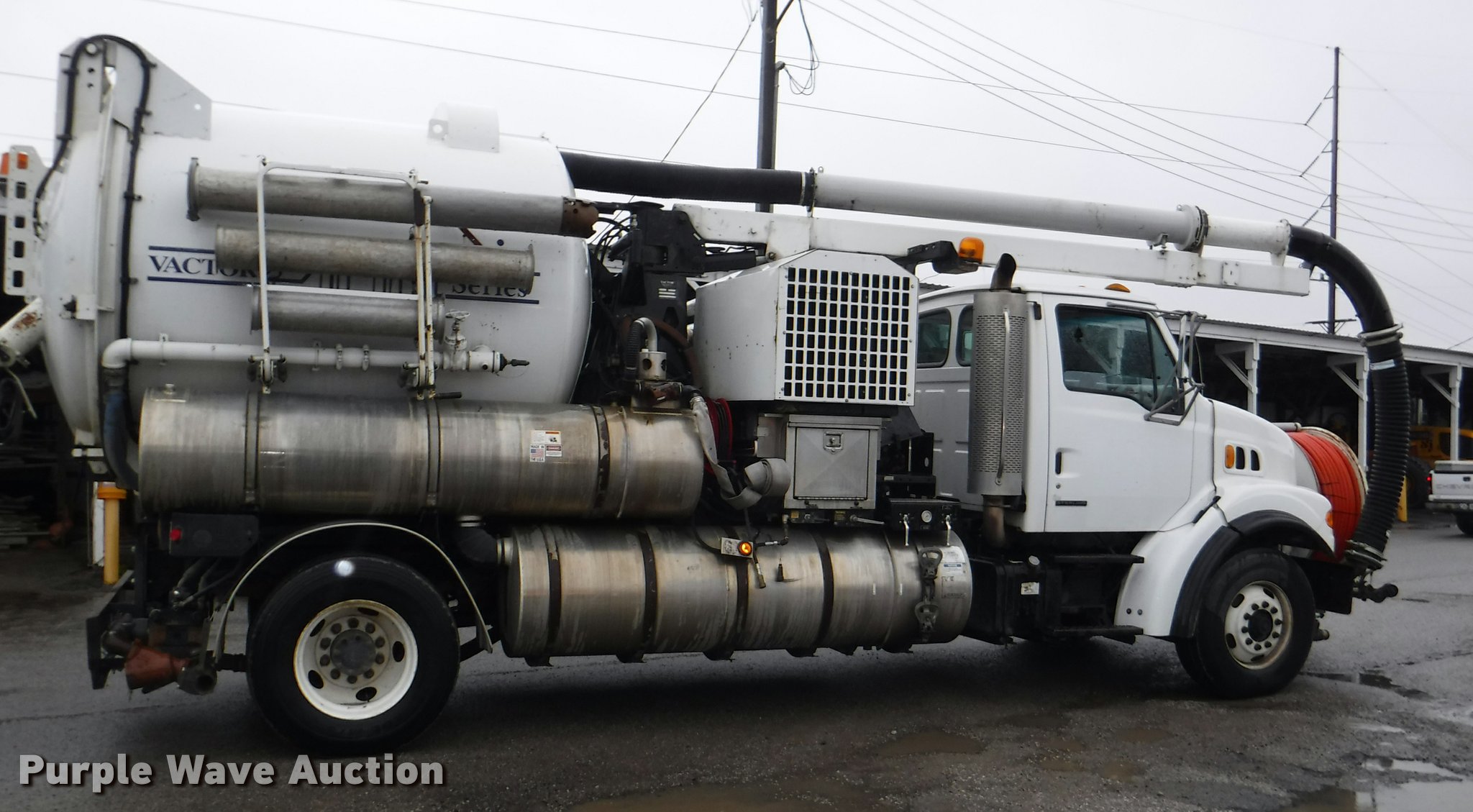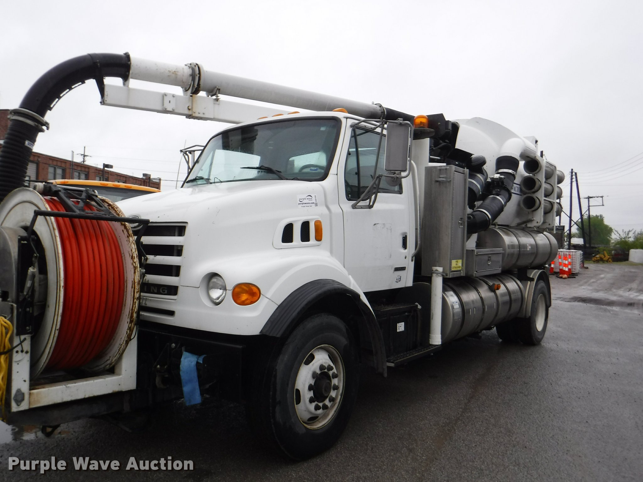 Purple Wave is selling a used Vacuum Truck in Missouri. This item is a 2004 Sterling L7500 vacuum truck with the following: 74,879 miles on odometer, Caterpillar C7 7.2L L6 turbo diesel engine, 275 HP, Automatic transmission, Single axle, AC and heat, Cruise, AM/FM, Air suspension seat, Vactor 2100 series vacuum bed, Model 2110-J6, John Deere 6.8L auxiliary diesel engine, 245 hours on meter, Hose reel, Serial 04-03V8867, Spring suspension, Air brakes, 315/80R22.5 front tires, 11R22.5 rear tires, GVWR 41,000 lbs, FAWR 18,000 lbs, RAWR 23,000 lbs