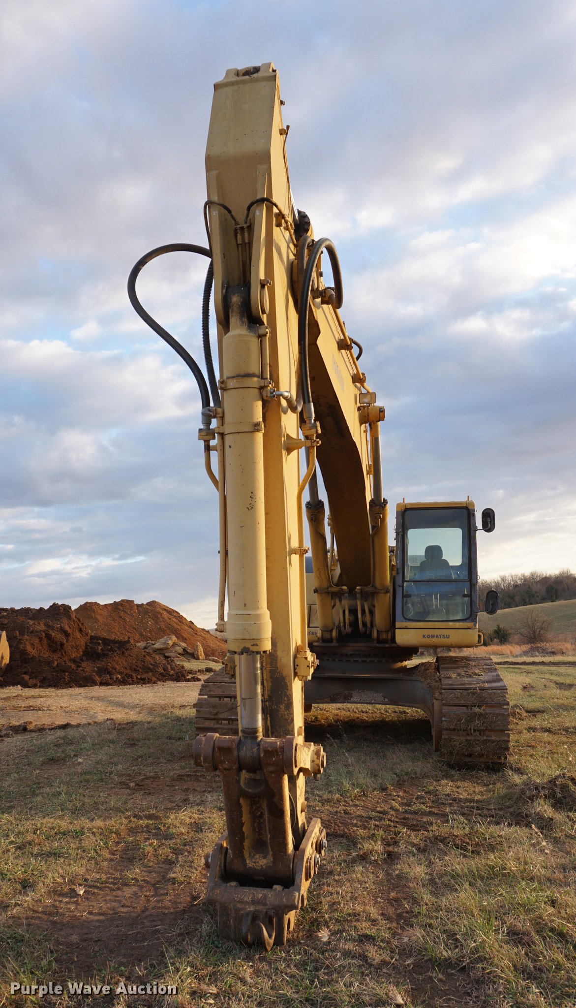1999 Komatsu PC400LC-6LK excavator. 14,672 hours on meter, Komatsu 11.04L six cylinder turbo diesel engine 320 HP, Hydrostatic transmission, EROPS, AC and heat, Suspension seat, Front work lights, Standard boom, 11'1" stick length, JB Hendrix hydraulic quick coupler, One way auxiliary hydraulics, 27.5"W steel triple grouser track pads, Serial A83081. Conley Siteworks and Utilities. 12000 230th St. Linwood, KS 66052