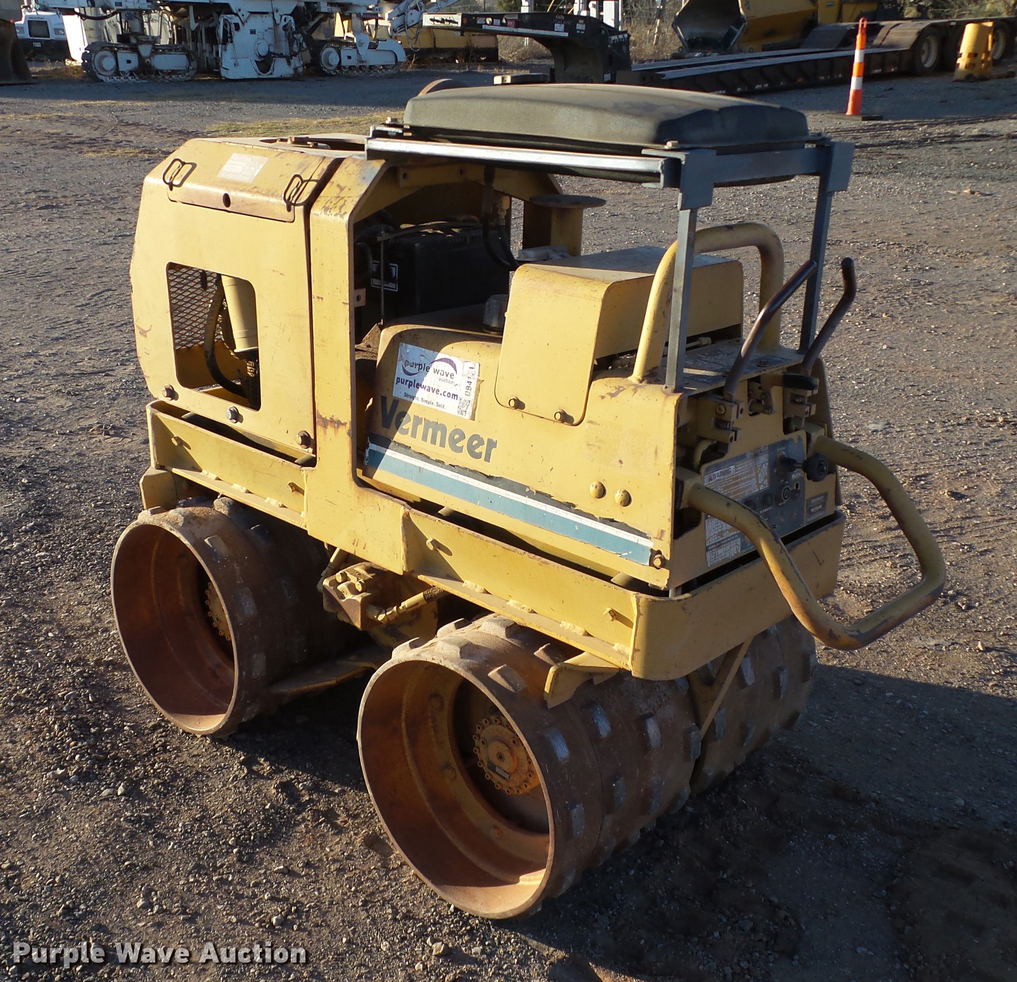 Purple Wave is selling a used Walk Behind Compactor in Oklahoma. This item is a Vermeer TC23-33 trench compactor with the following: Deutz F1L220D single cylinder diesel engine, Serial 7933819, Two speed hydrostatic transmission, 32"W x 20" diameter padfoot drums, Double vibratory system, Front and rear drum scrapers, Serial 1VRF06264M1000162, Unit# 701-288
