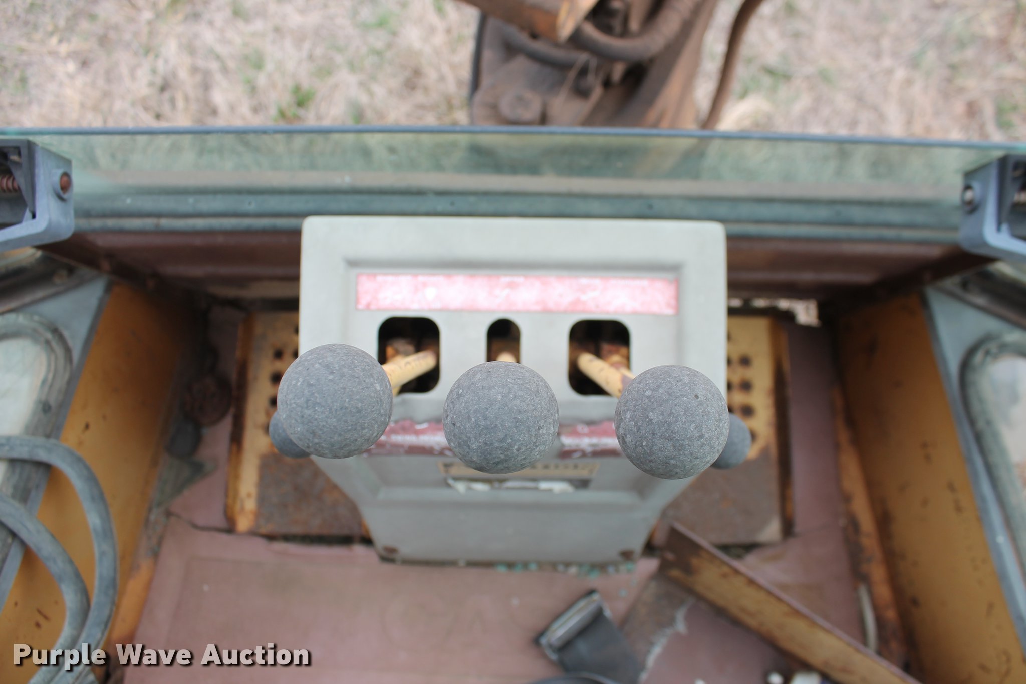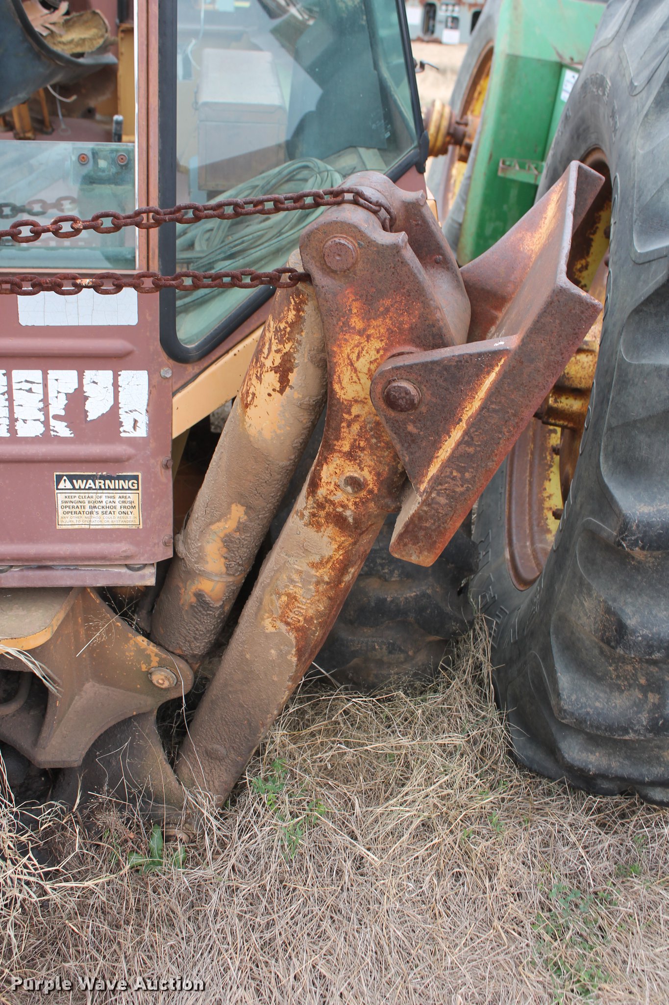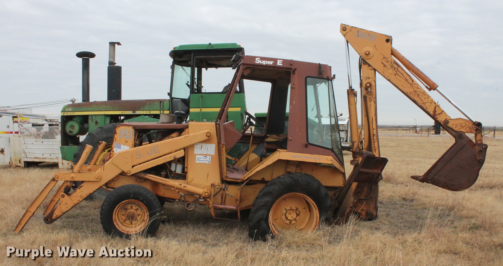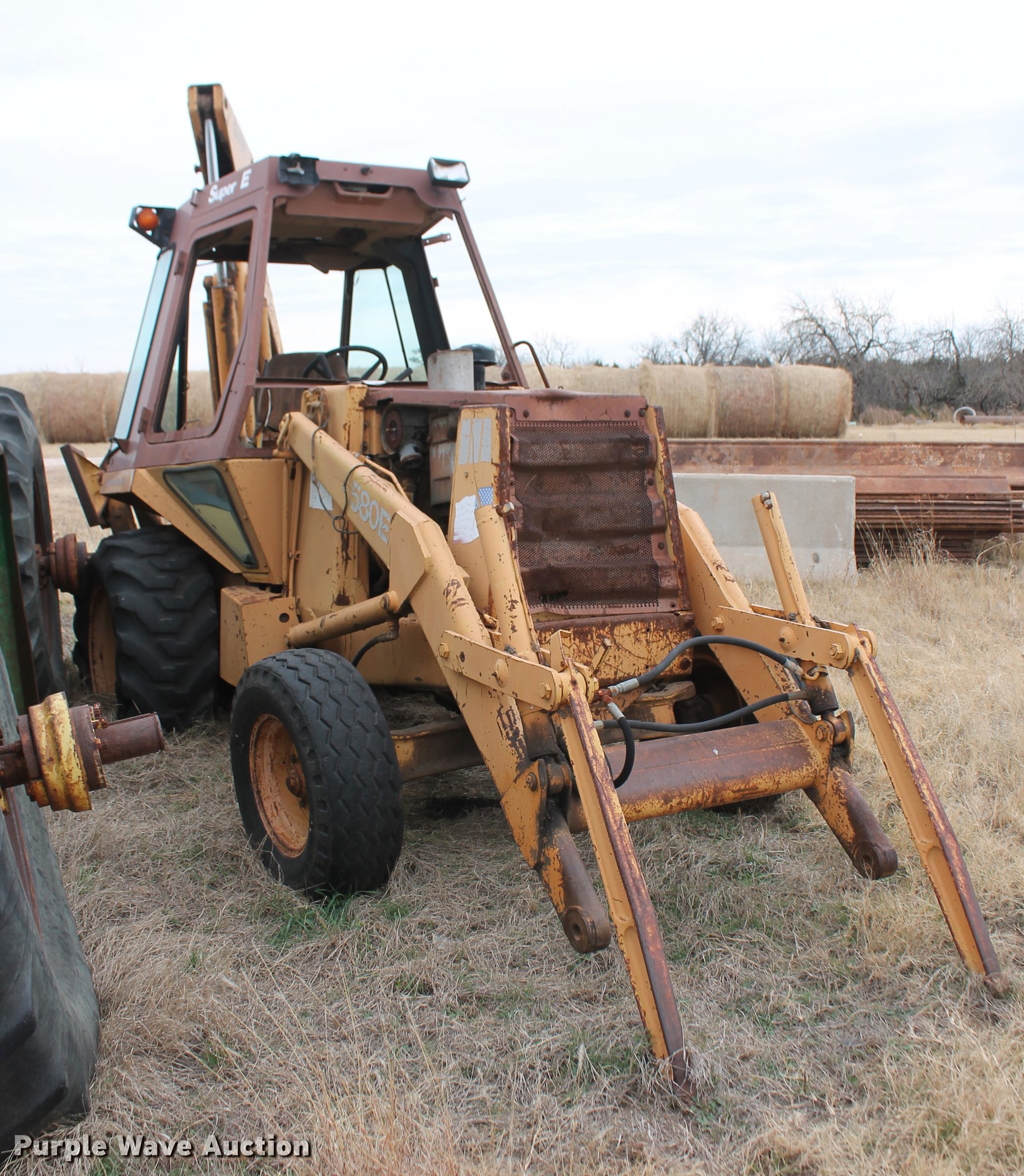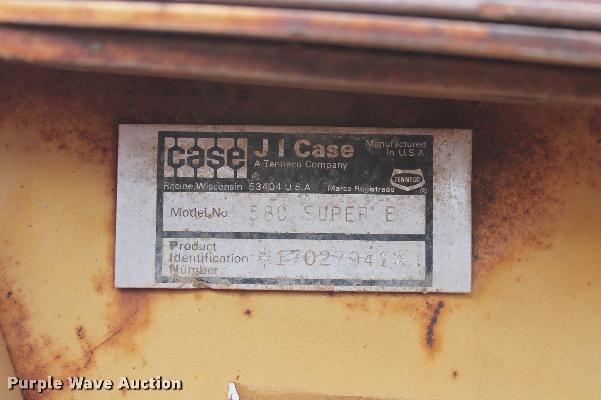 Purple Wave is selling a used Tractor Loader Backhoe in Oklahoma. This item is a 1985 Case 580 Super E backhoe with the following: 2,025 hours on meter, Case 4-390 3.9L four cylinder diesel engine, 69 HP, Serial 44132747, Shuttle shift transmission, 4F-4R gears, EROPS, AC and heat, Suspension seat, Three stick backhoe controls, Front work lights, 24"W backhoe bucket, (5) teeth, 11L-16 front tires, 17.5L-24 rear tires, Unknown running condition, Door missing, Glass missing, Serial 17027941