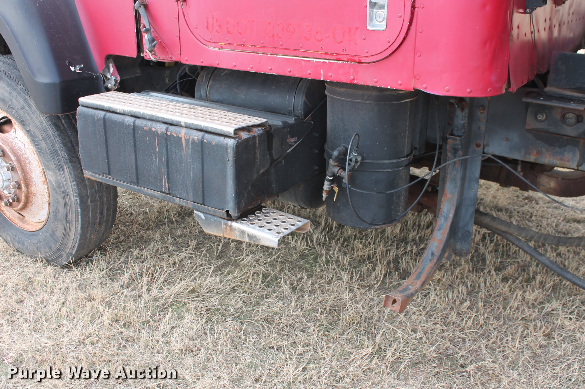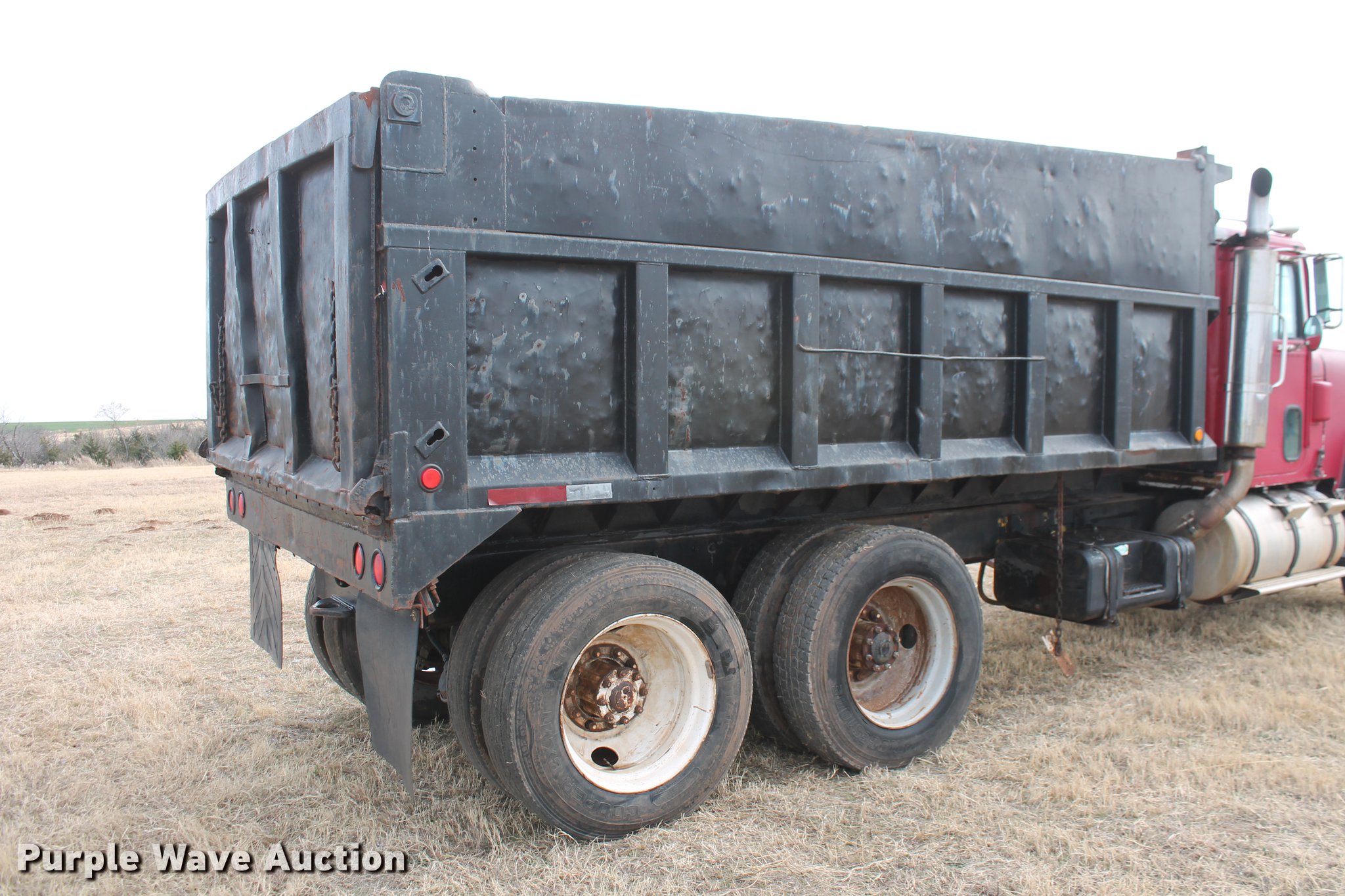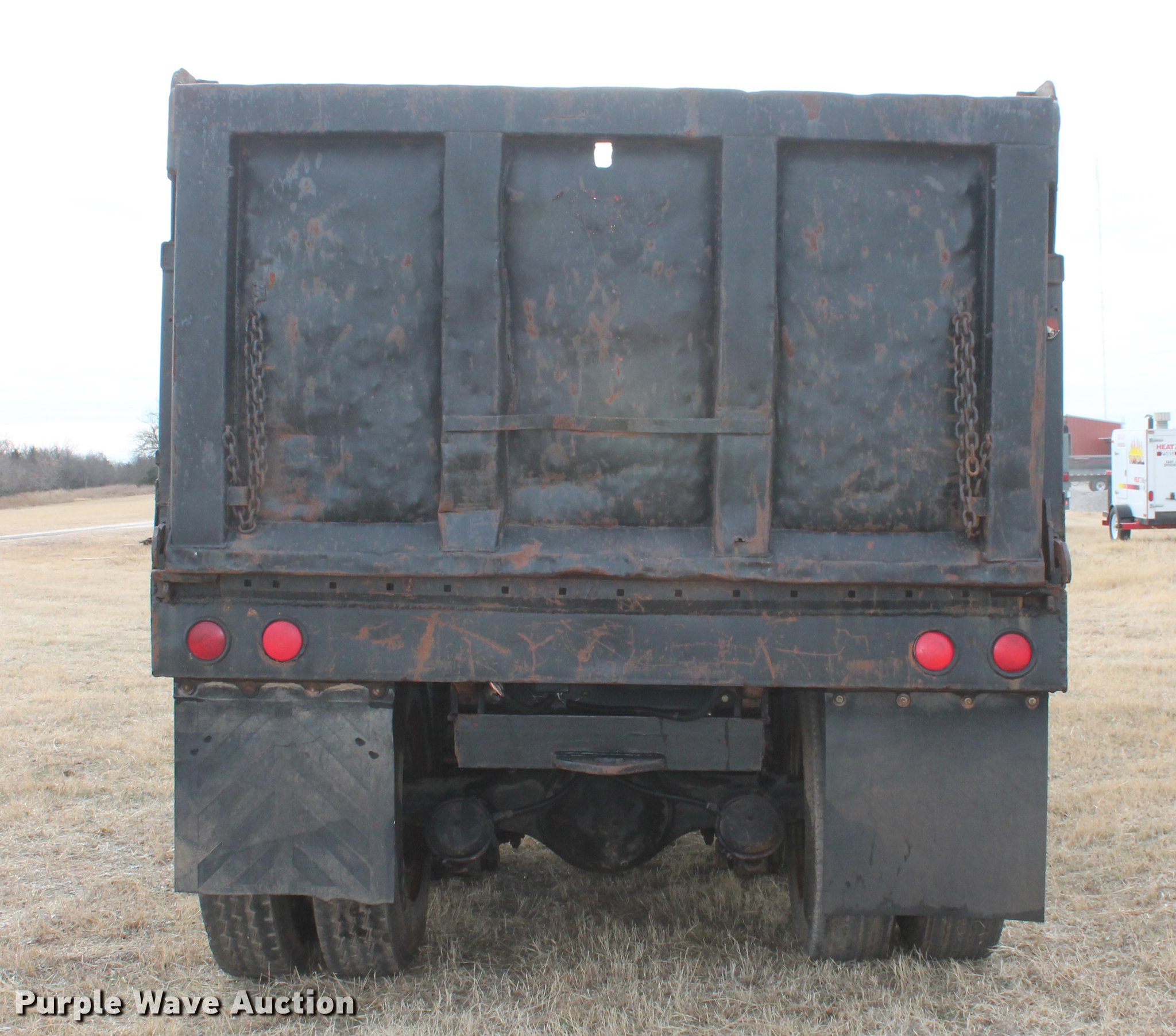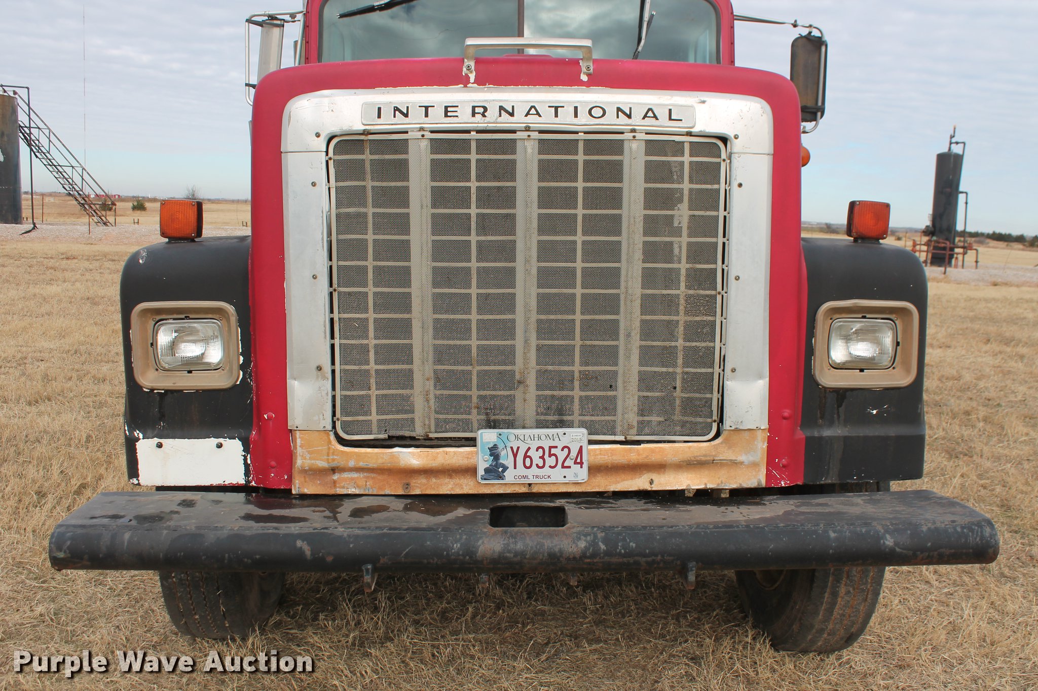 Purple Wave is selling a used Construction Dump Truck in Oklahoma. This item is a 1981 International F4370 Transter 4300 dump truck with the following: 387,935 miles on odometer, Caterpillar 3406 six cylinder turbo diesel engine, 380 HP, Serial 92U38991, Manual transmission, Tandem axle, AC and heat, AM/FM, Air suspension seat, PTO, Single exhaust stack, 15'L x 96"W steel dump bed, 52" to 60" tapered side height, Air operated end gate, Single ram hoist, Single fuel tank, Pin hitch, Spring suspension, Air brakes, 224" wheelbase, 11R24.5 tires
