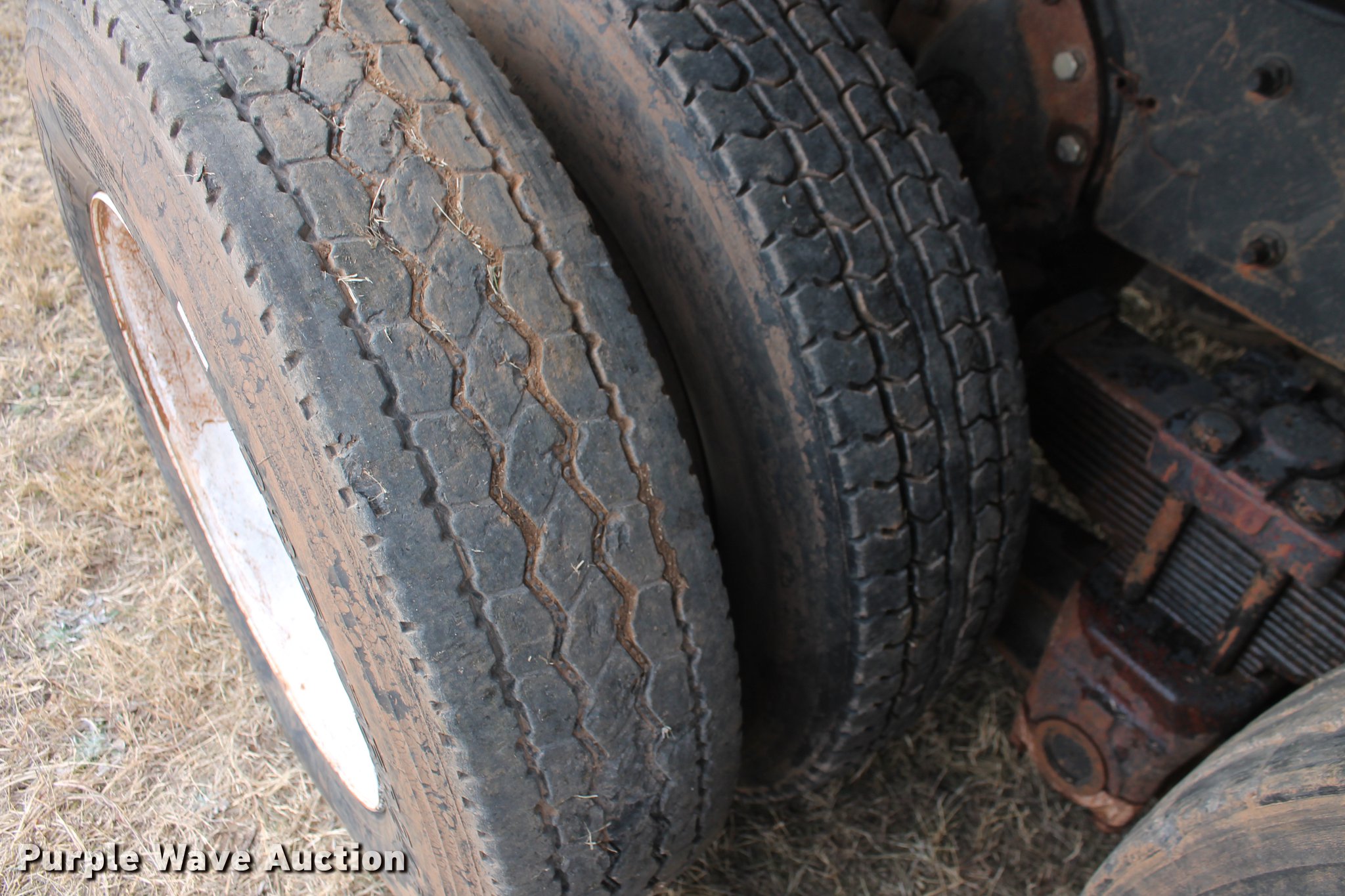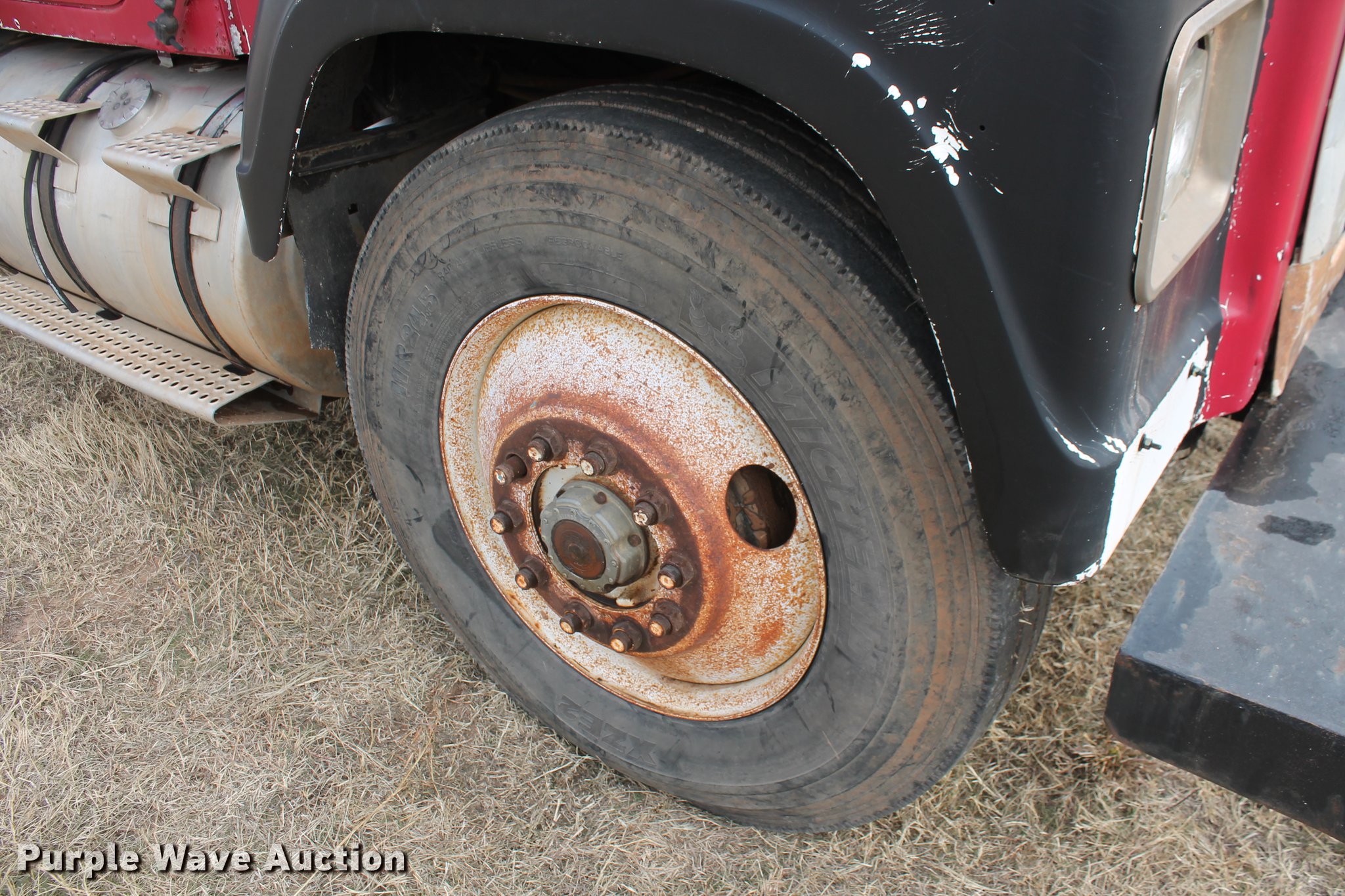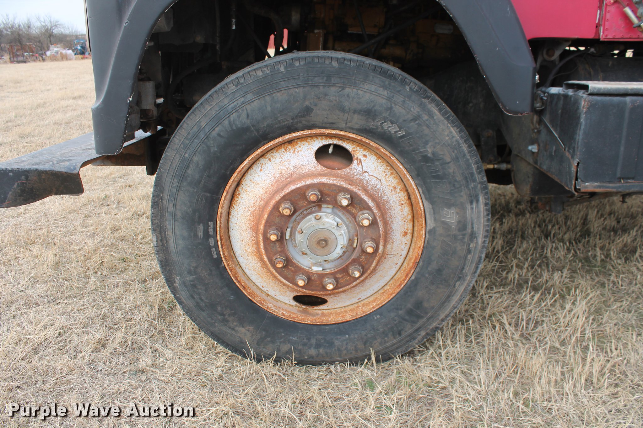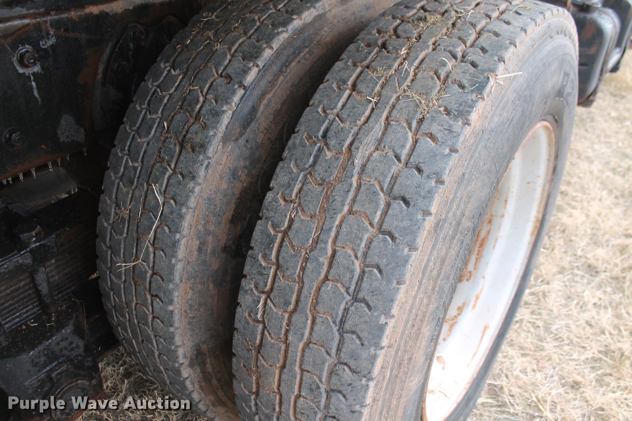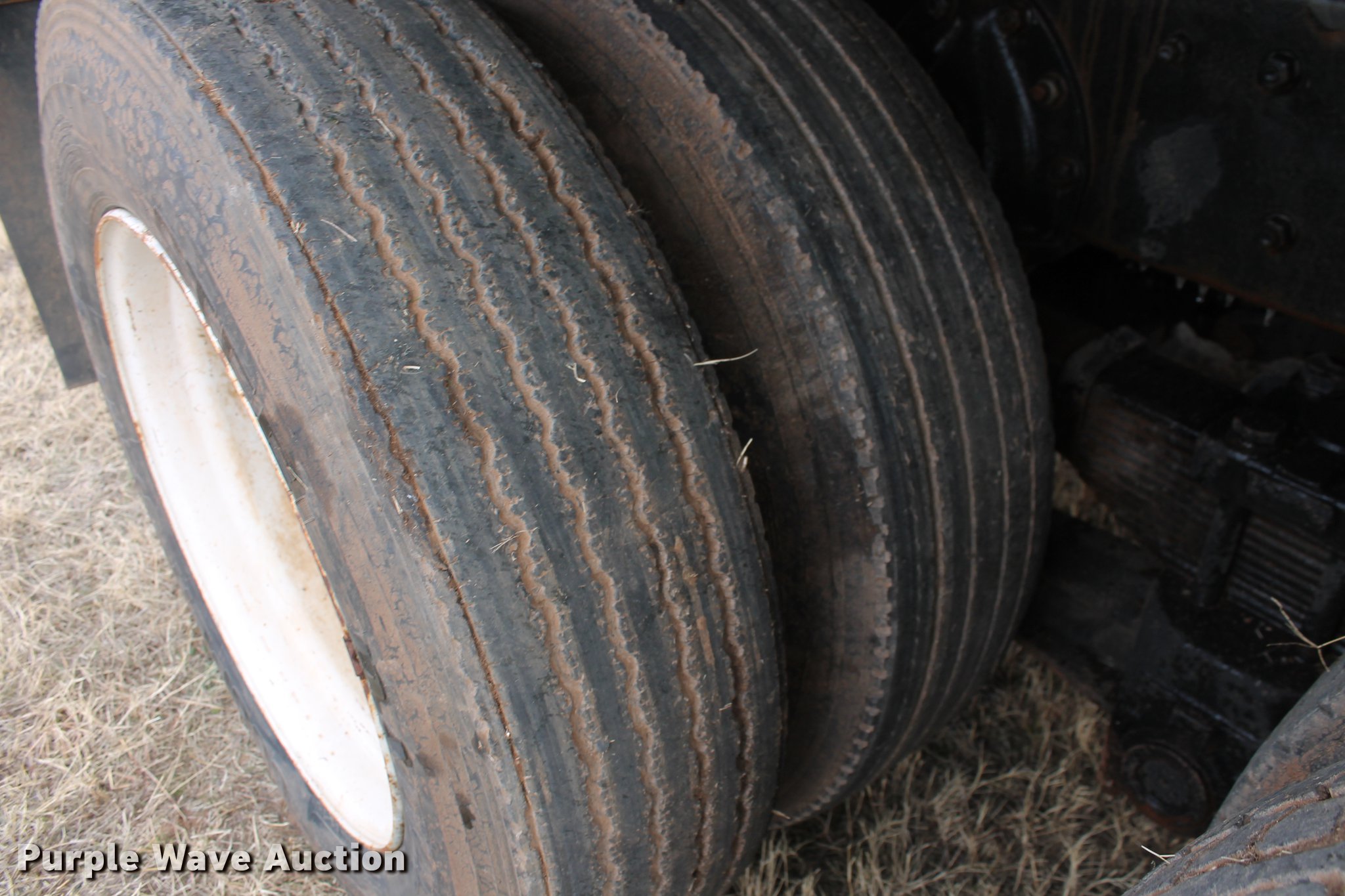 Purple Wave is selling a used Construction Dump Truck in Oklahoma. This item is a 1981 International F4370 Transter 4300 dump truck with the following: 387,935 miles on odometer, Caterpillar 3406 six cylinder turbo diesel engine, 380 HP, Serial 92U38991, Manual transmission, Tandem axle, AC and heat, AM/FM, Air suspension seat, PTO, Single exhaust stack, 15'L x 96"W steel dump bed, 52" to 60" tapered side height, Air operated end gate, Single ram hoist, Single fuel tank, Pin hitch, Spring suspension, Air brakes, 224" wheelbase, 11R24.5 tires