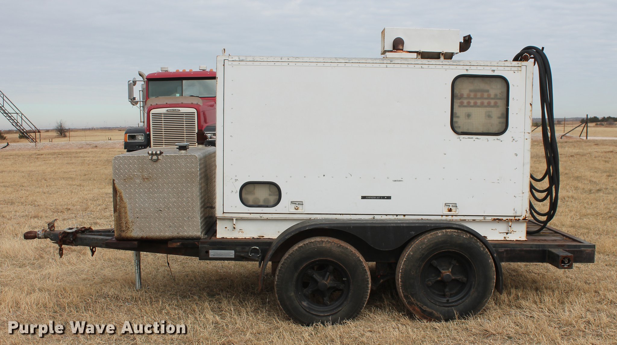Purple Wave is selling a used Generator Set in Oklahoma. This item is a All Power generator with the following: 1,281 hours on meter, Deutz Perkins D3.152 three cylinder diesel engine, Serial 07477981, Newage Stamford SC154E generator, 240/120V, 12.5 kVA, 10 kW, Single phase, Electric start, Integrated fuel tank, 14'L x 72"W overall, 9'L x 54"W deck, 2 5/16" ball hitch, Tandem axle, 8-14.5 tires