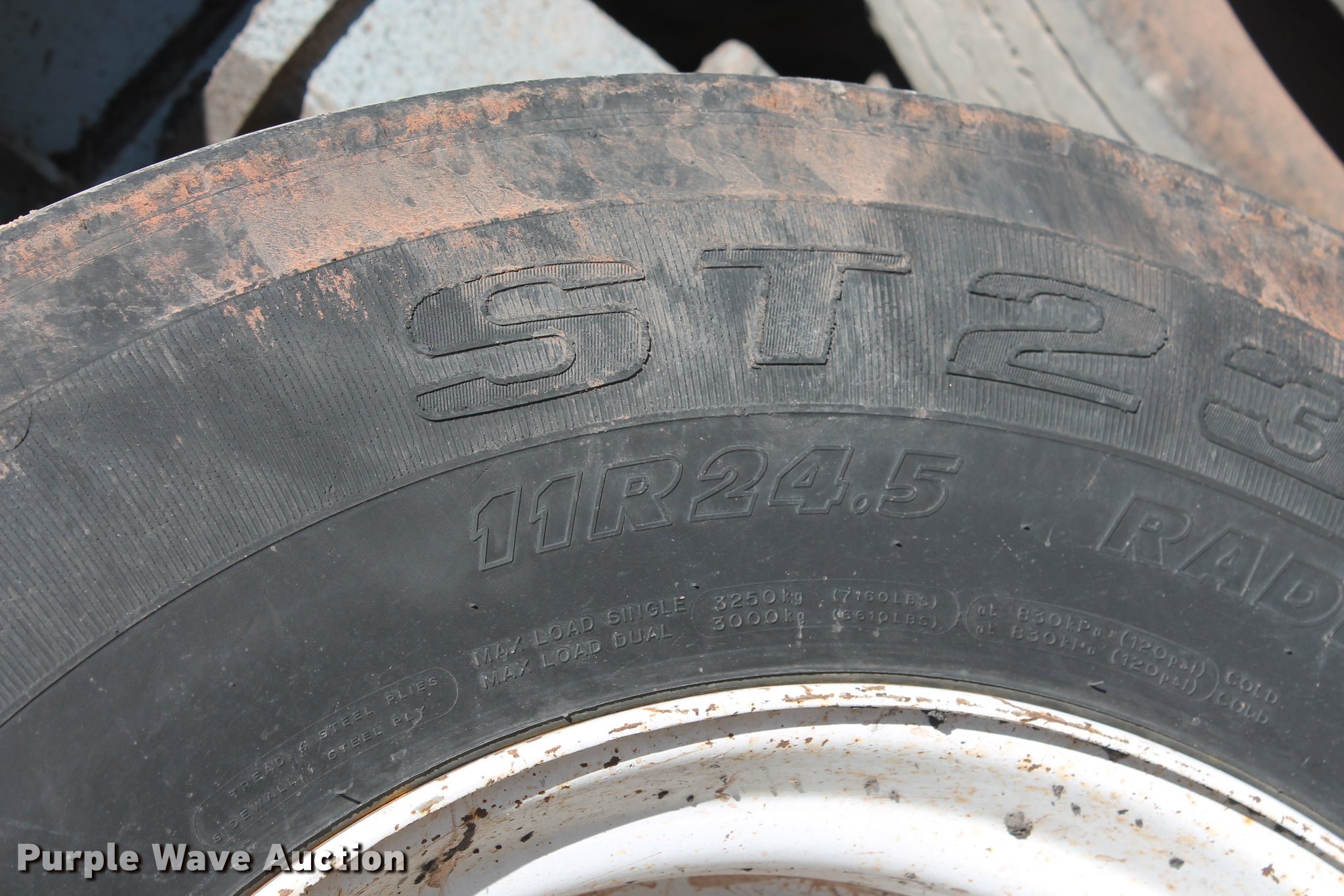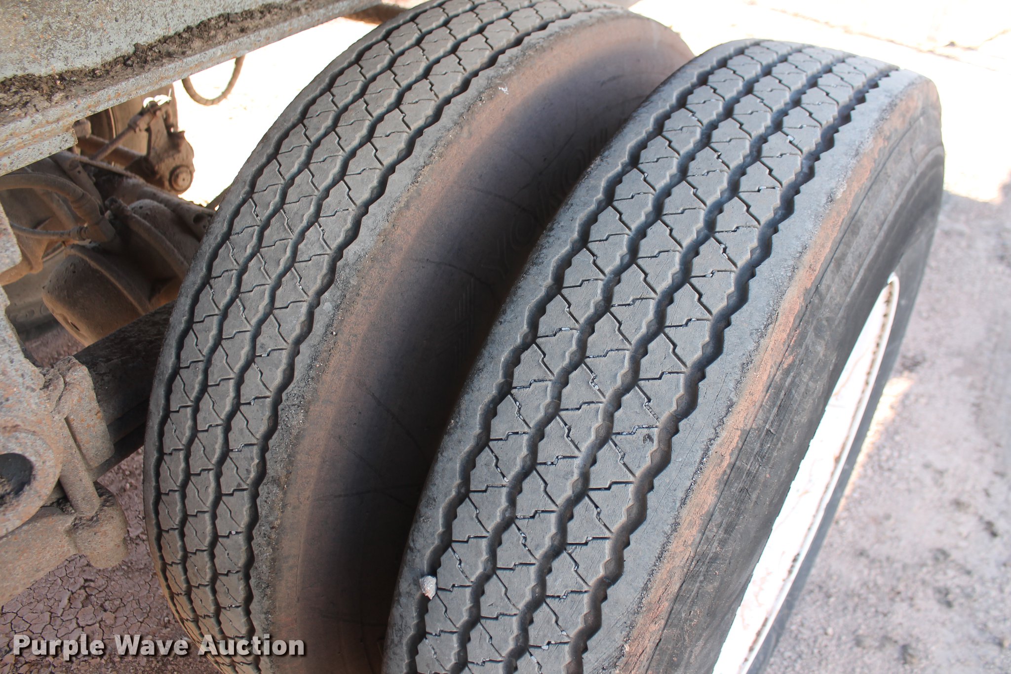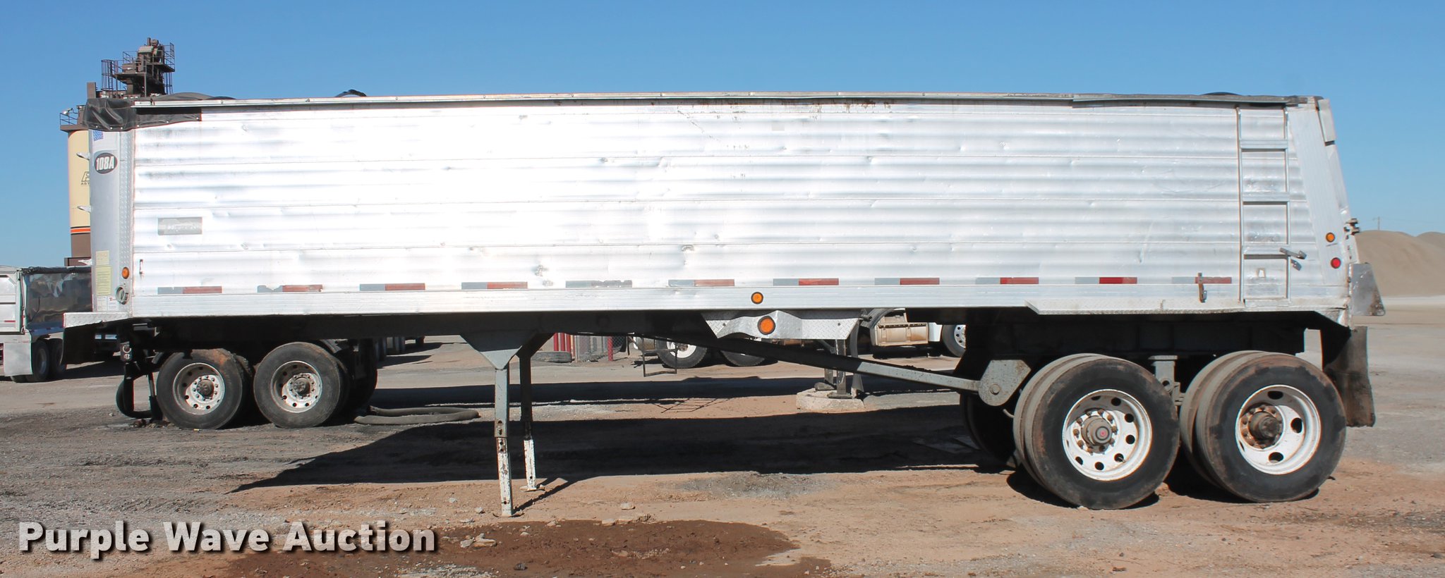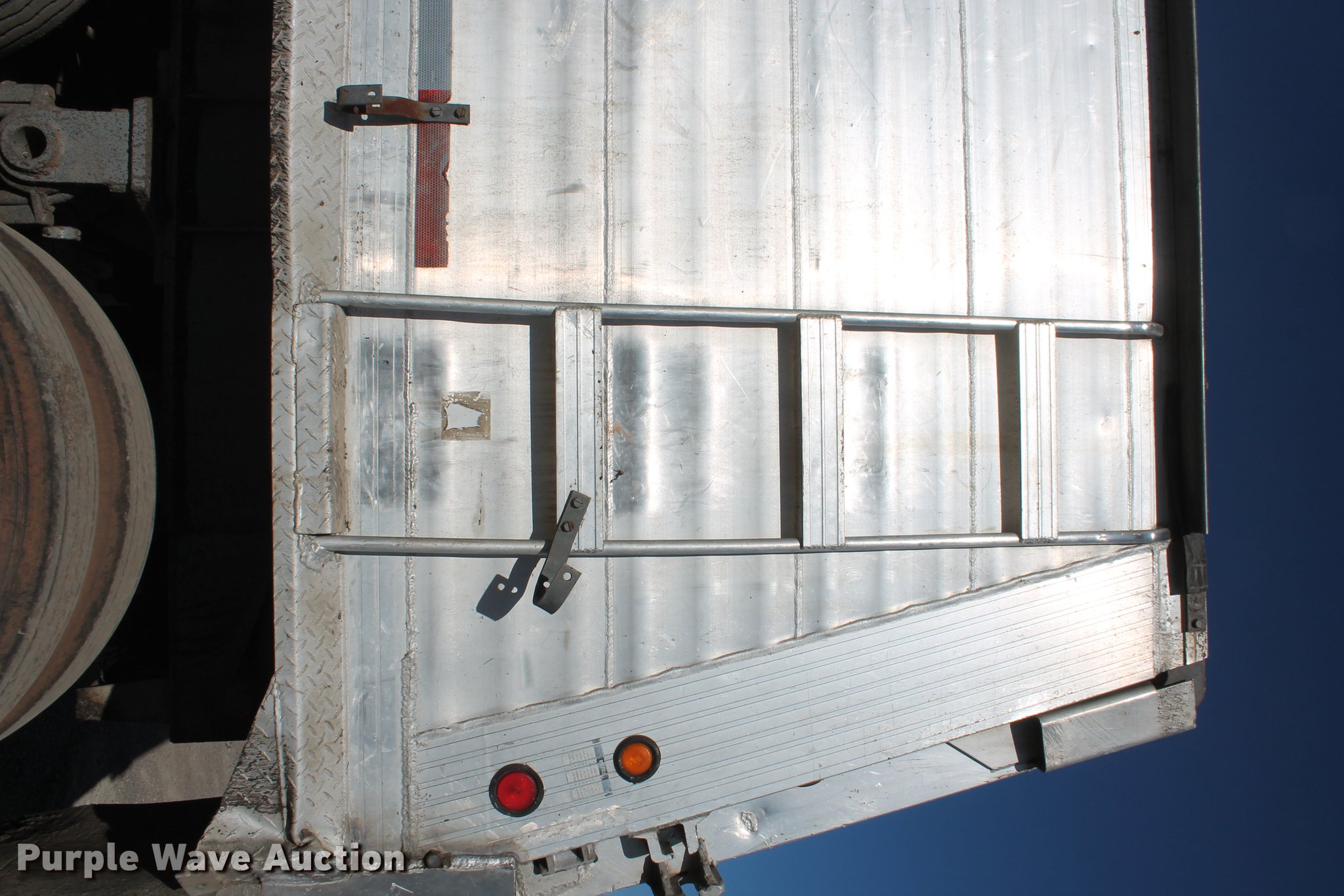 Purple Wave is selling a used End Dump Rock Trailer in Oklahoma. This item is a 2002 Travis S-96 end dump trailer with the following: 30'L x 96"W, 54" side height, Aluminum construction, Asphalt liner, Single hydraulic cylinder, End gate, Manual tarp, Access ladder, Dual leg landing gear, Fifth wheel plate, Tandem axle, Spring suspension, Air brakes, Steel wheels, 11R24.5 tires, GVWR 68,000 lbs, GAWR 20,000 lbs