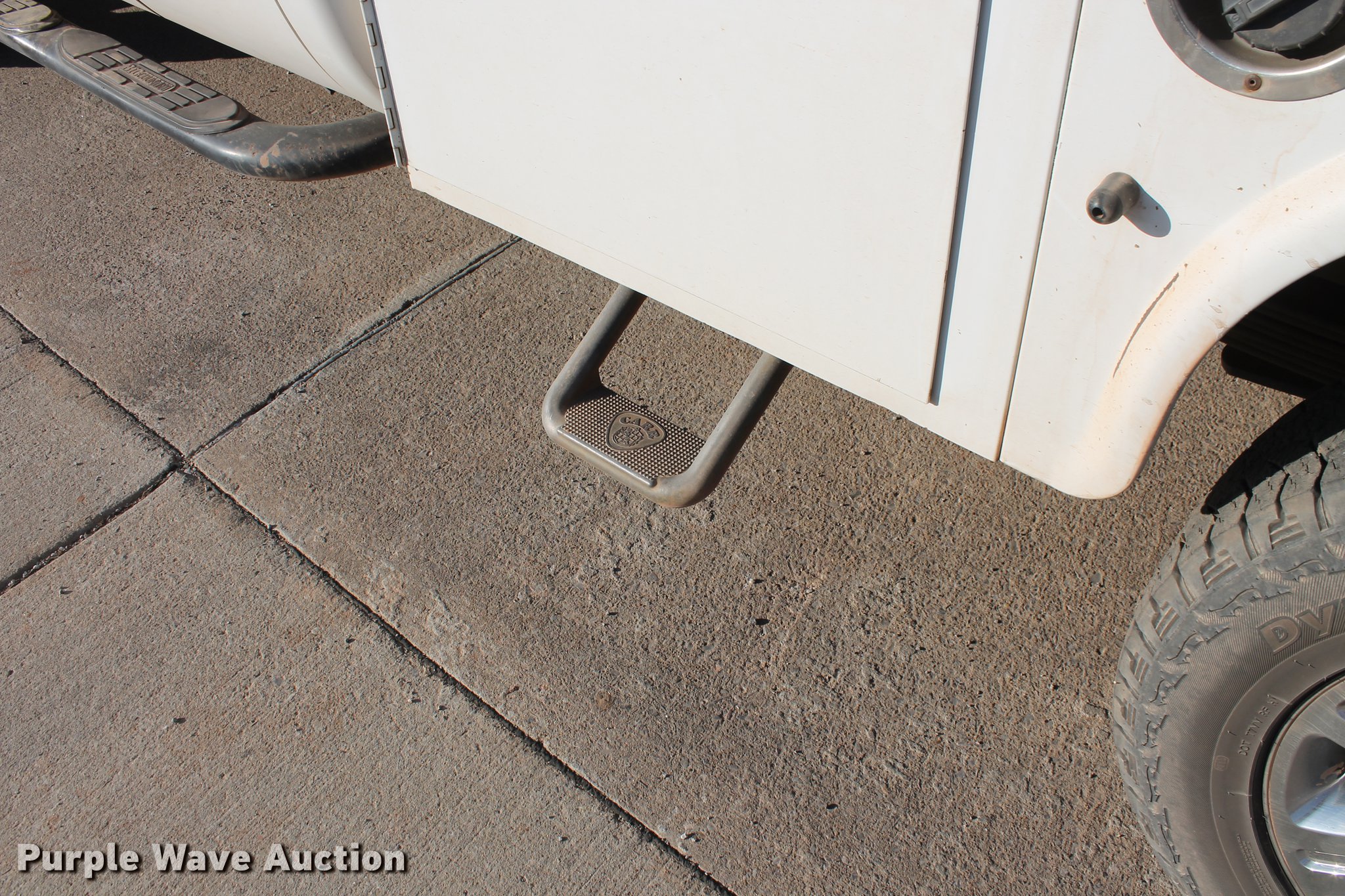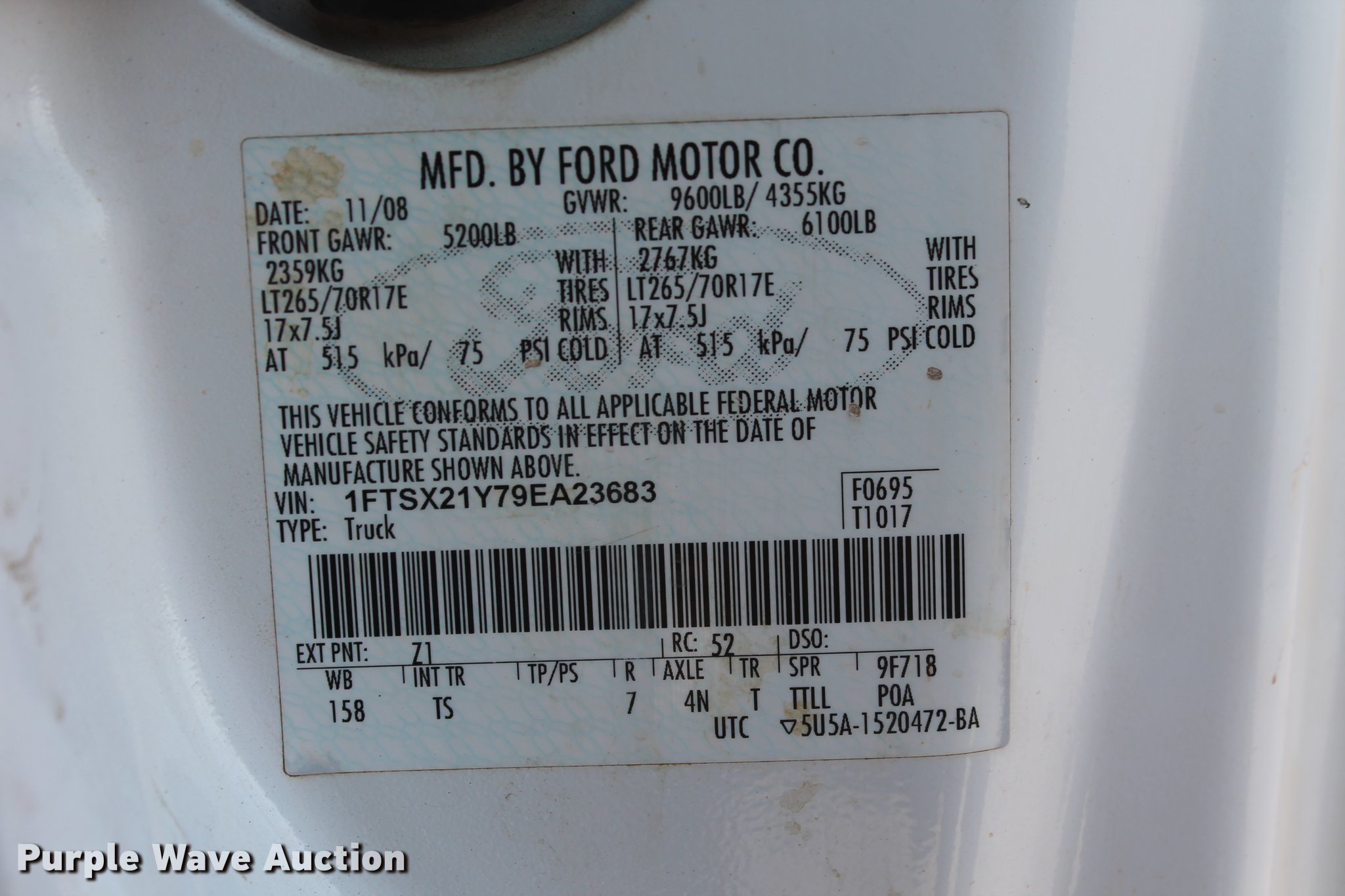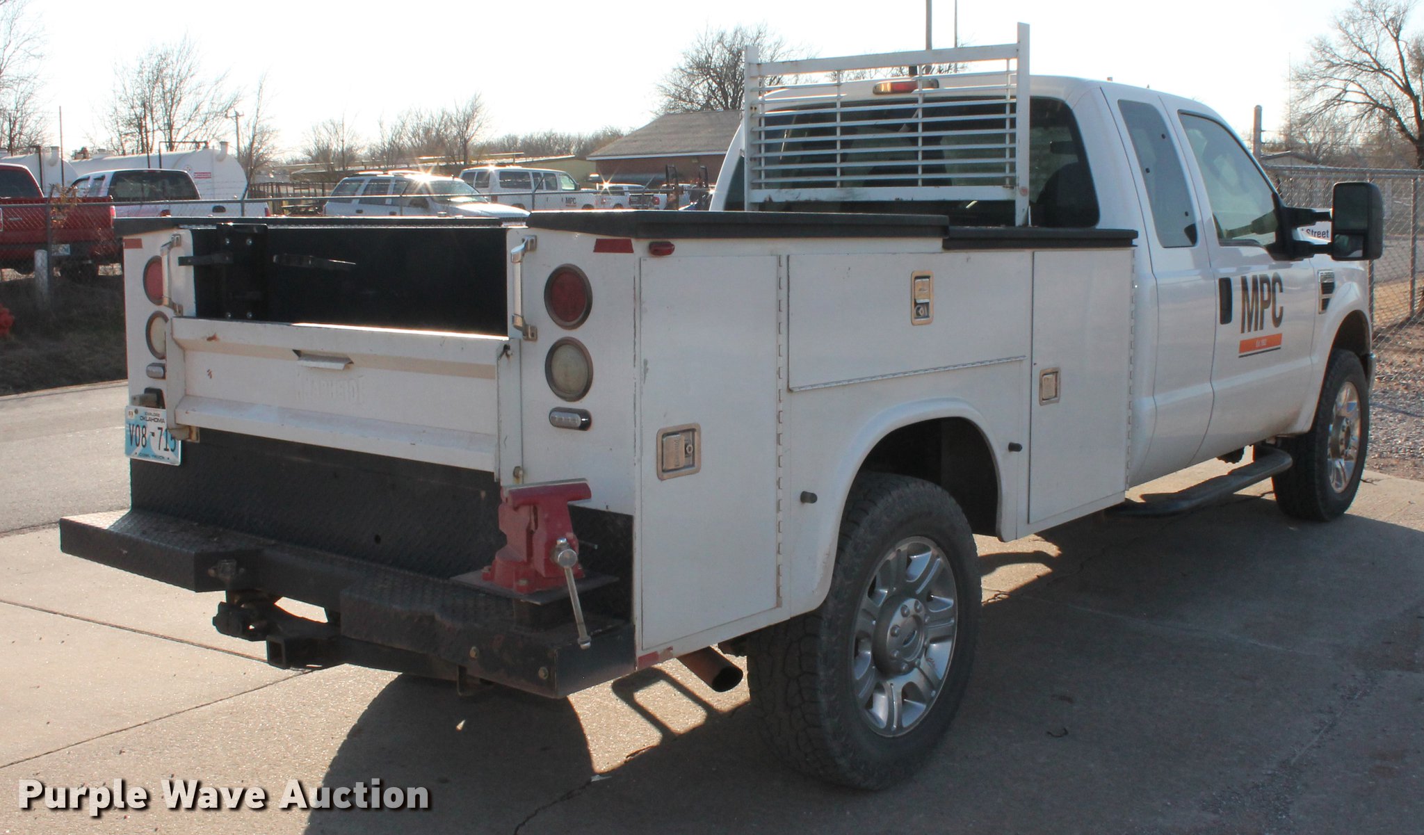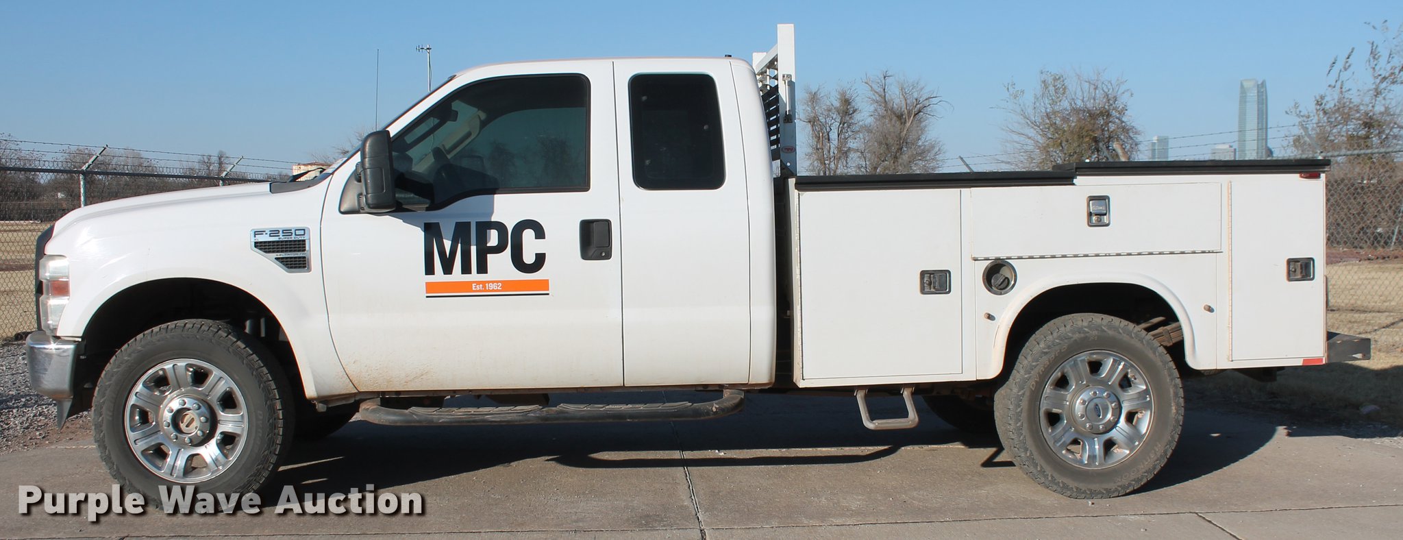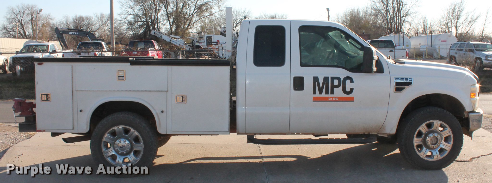 Purple Wave is selling a used 3/4 or 1 Ton Pickup or Van in Oklahoma. This item is a 2009 Ford F250 Super Duty XL SuperCab utility bed pickup truck with the following: 220,981 miles on odometer, 6.8L V10 SOHC 30V gas engine, Automatic transmission, Four wheel drive, AC and heat, AM/FM, Trailer brake controler, Auxiliary controls, Knapheide utility bed, 9'L, Shelving, Slideout drawers, Bed liner, Mounted vise, Running boards, Work lights, Front tow hooks, Single fuel tank, Receiver hitch, Trailer wiring, Spring suspension, Hydraulic brakes, Hankook Dynapro ATM LT275/65R20 tires, GVWR 9,600 lbs, Check engine light on, Glass cracked