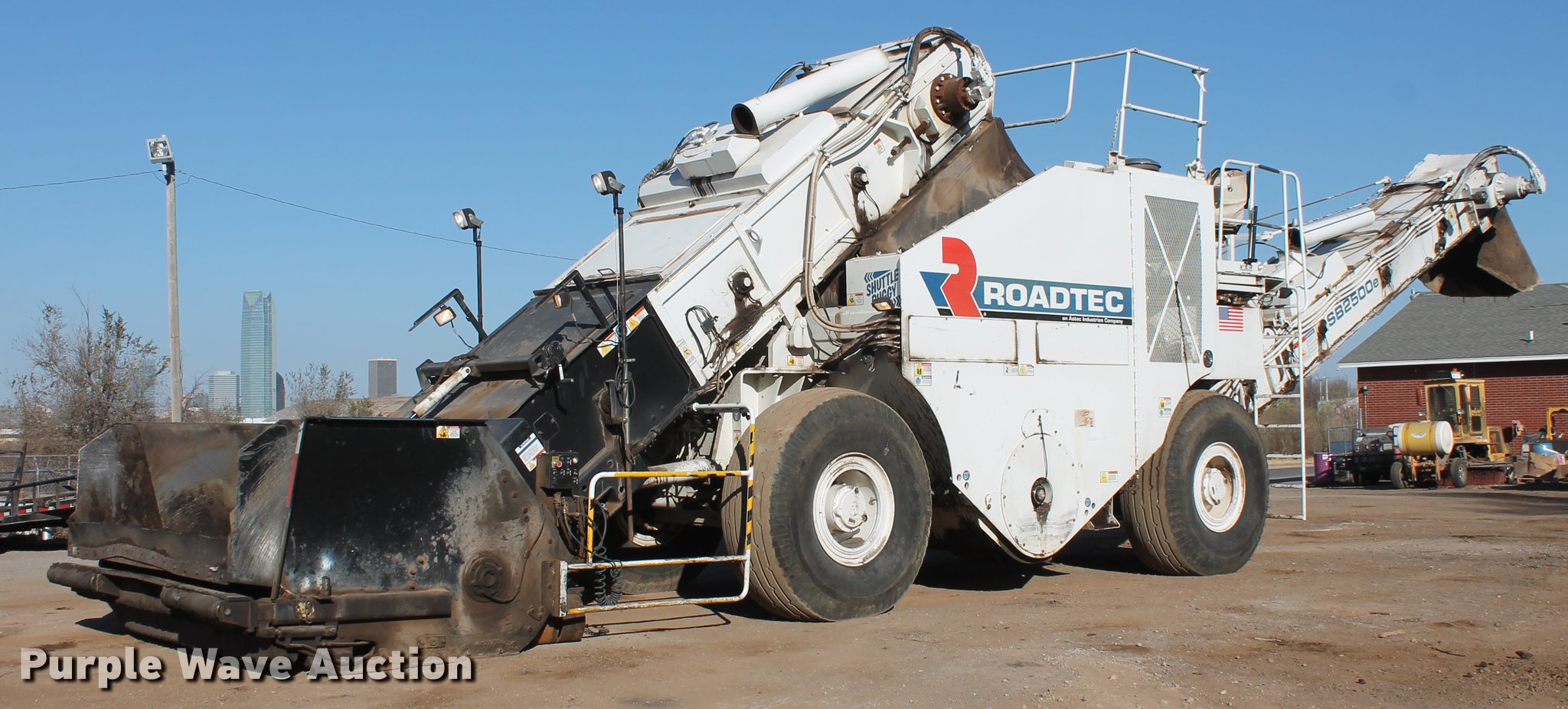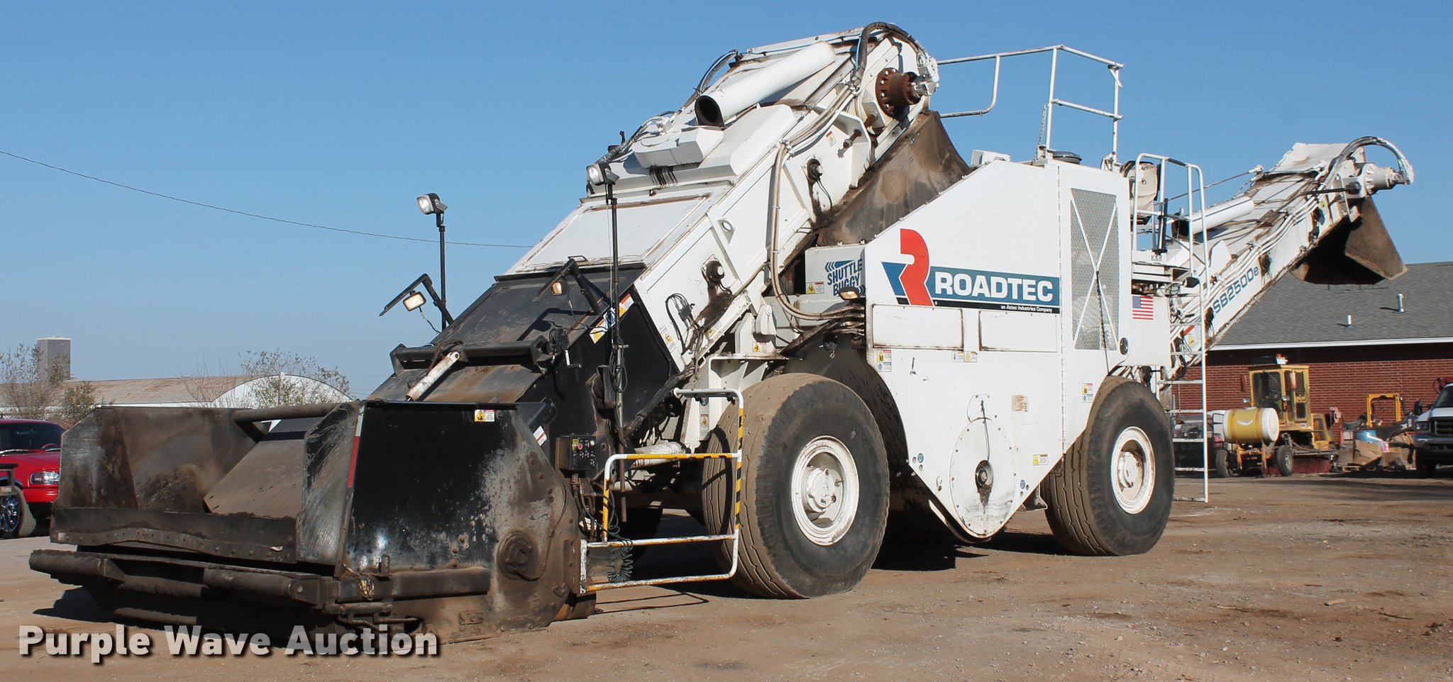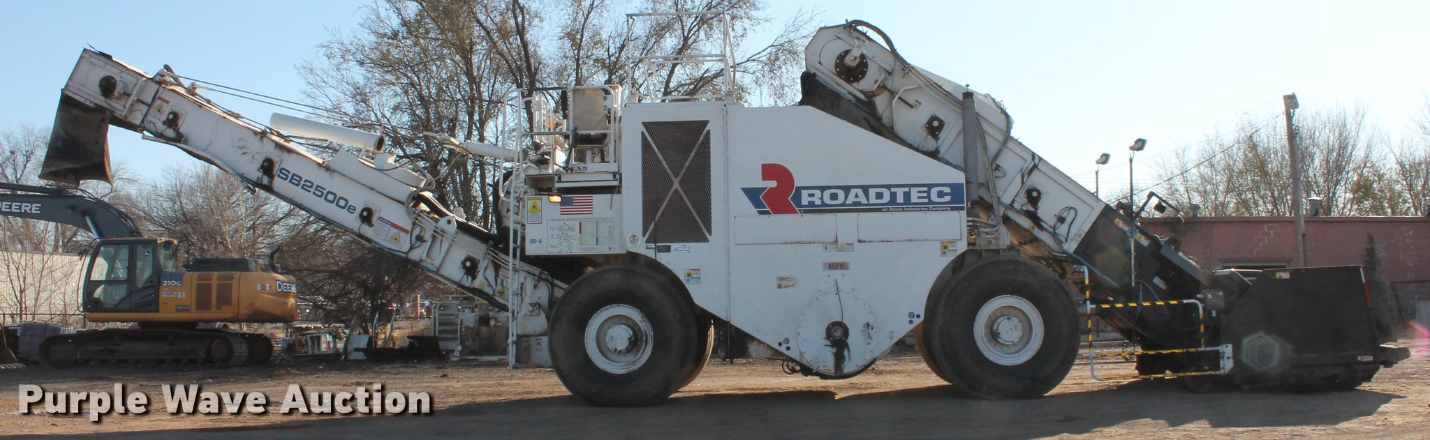 Purple Wave is selling a used Planer or Milling Machine in Oklahoma. This item is a 2013 Roadtec SB-2500E Shuttle Buggy material transfer vehicle with the following: 4,514 hours on meter, Caterpillar C9.3 six cylinder diesel engine, 300 HP, Serial C9N01239, Two speed hydrostatic transmission, Continuously variable speed control, Dual operator stations, Center pivot control console, Clearview fume extraction system, Truck unloading conveyor, C1, 1,000 TPH, Chrome-carbide clad wear plates, Dual roller bushing offset link chain, Surge bin unloading conveyor, C2, 600 TPH, Chrome-carbide clad wear plates, Dual roller bushing offset link chain, Paver loading conveyor, C3, 600 TPH, Chrome-carbide clad wear plates, Dual roller bushing offset link chain, Insulated floor, Guard rails, 100 degree swing, Interlocking controls, C1, C2, C3, Surge bin, 25 ton storage capacity, 29" diameter cast Ni-Hard segmented auger, Full width clean-out doors, 9'2"W dump hopper, Dual control boxes, Vibrating floor plate, Hydraulic adjustable push rollers, Hydraulic adjustable hopper baffle, 29" diameter cast Ni-Hard segmented auger, 150 gallon fuel tank, 96 gallon hydraulic tank, Pro-Trac 21.00-25 sand ribbed tires, Approximately 56'9"L x 9'10"W x 11'11"H shipping dimensions, Serial SB2500E-2104