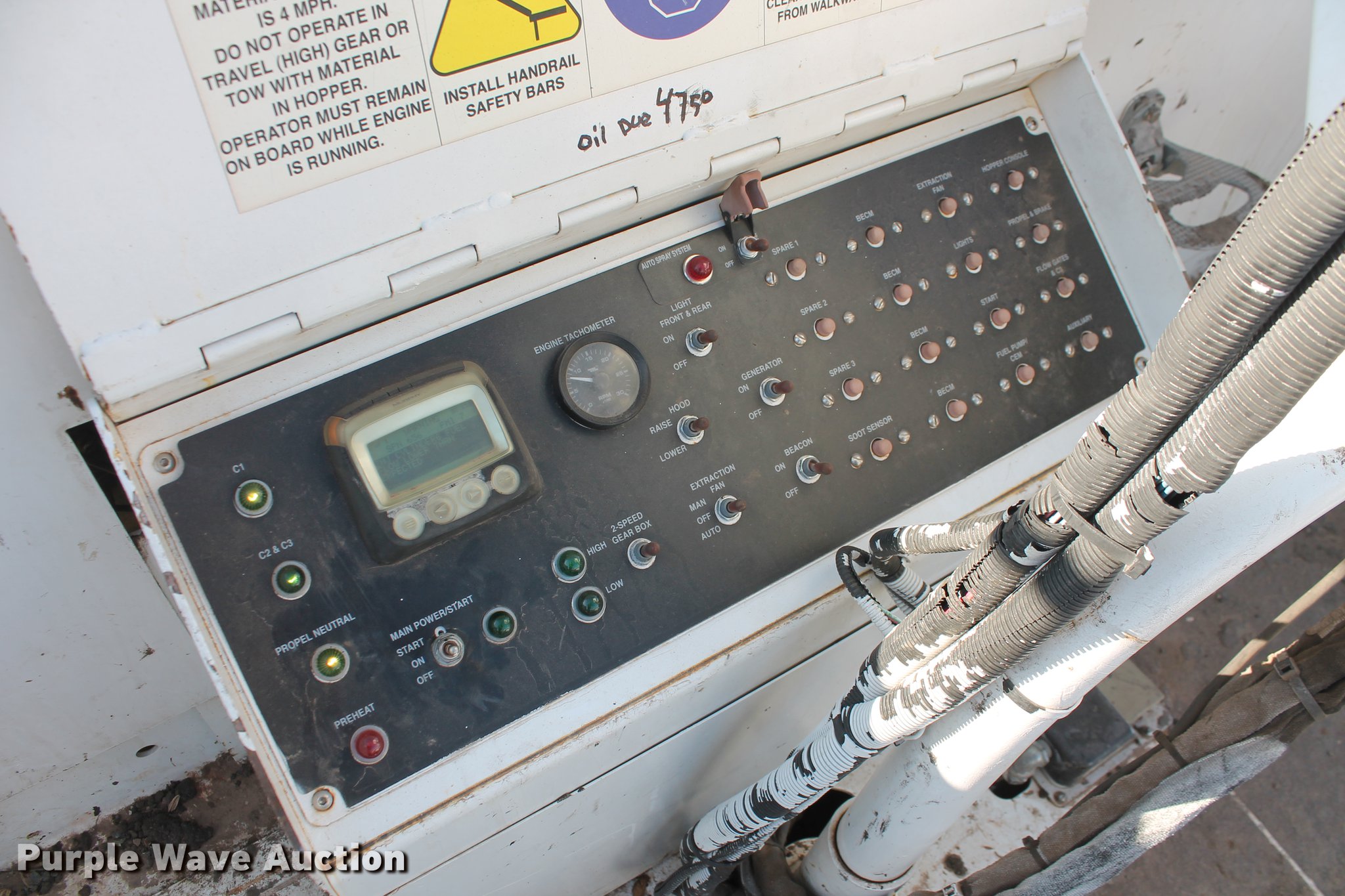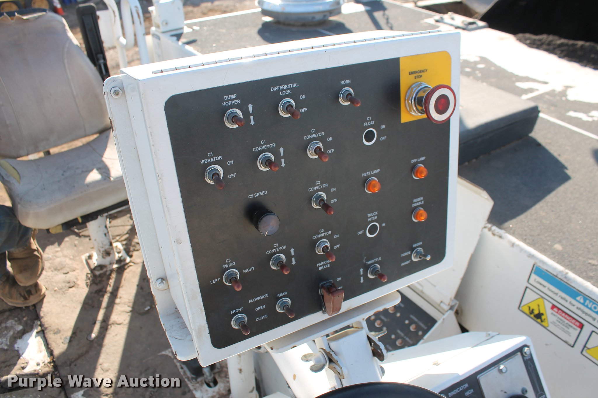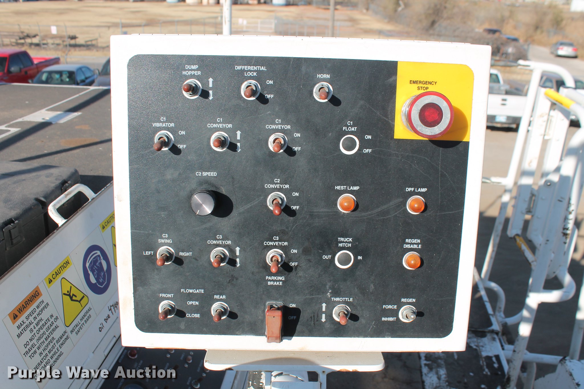 2013 Roadtec SB-2500E Shuttle Buggy material transfer vehicle. 4,514 hours on meter, Caterpillar C9.3 six cylinder diesel engine 300 HP, Serial C9N01239, Two speed hydrostatic transmission Continuously variable speed control, Dual operator stations Center pivot control console, Clearview fume extraction system, Truck unloading conveyor, C1 1,000 TPH, Chrome-carbide clad wear plates, Dual roller bushing offset link chain, Surge bin unloading conveyor, C2 600 TPH, Chrome-carbide clad wear plates, Dual roller bushing offset link chain, Paver loading conveyor, C3 600 TPH, Chrome-carbide clad wear plates, Dual roller bushing offset link chain, Insulated floor, Guard rails, 100 degree swing, Interlocking controls, C1, C2, C3, Surge bin 25 ton storage capacity, 29" diameter cast Ni-Hard segmented auger, Full width clean-out doors, 9'2"W dump hopper Dual control boxes, Vibrating floor plate, Hydraulic adjustable push rollers, Hydraulic adjustable hopper baffle, 29" diameter cast Ni-Hard segmented auger, 150 gallon fuel tank, 96 gallon hydraulic tank, Pro-Trac 21.00-25 sand ribbed tires, Approximately 56'9"L x 9'10"W x 11'11"H shipping dimensions, Serial SB2500E-2104. View repairs. Markwell Paving Company - Open inspection December 27. 1428 N Portland Ave. Newcastle, OK 73065