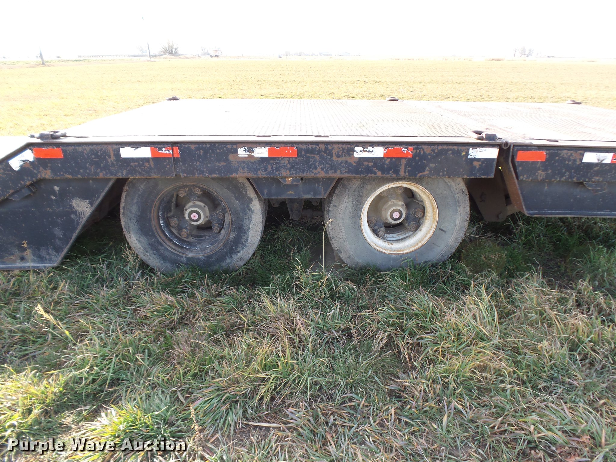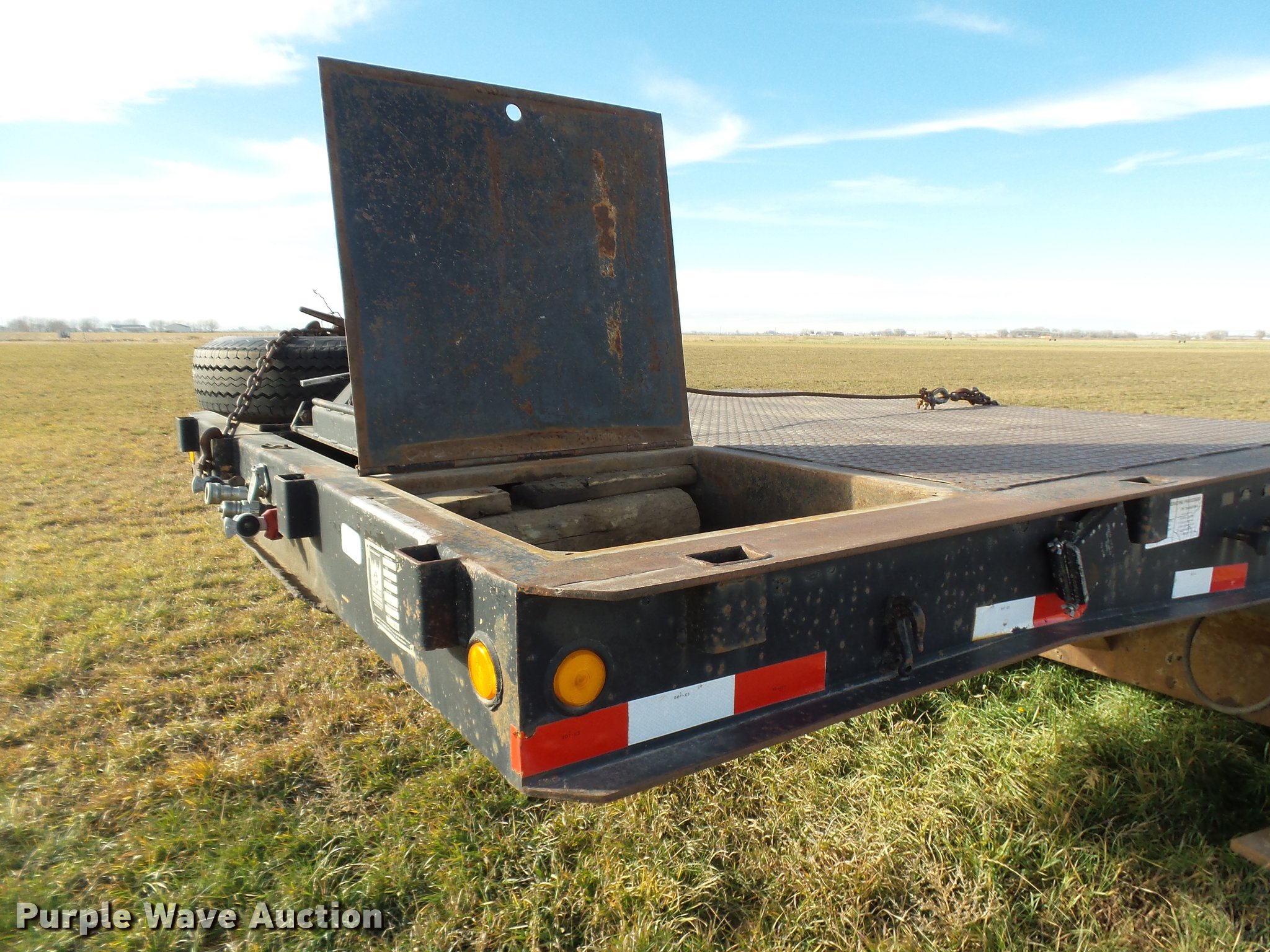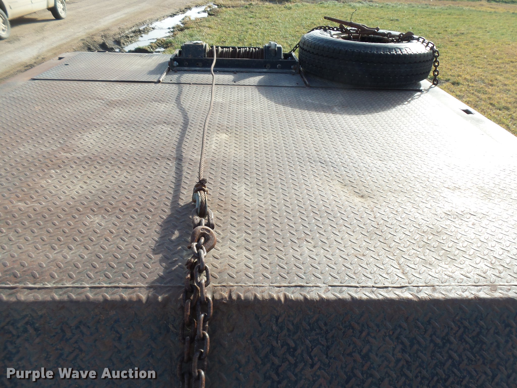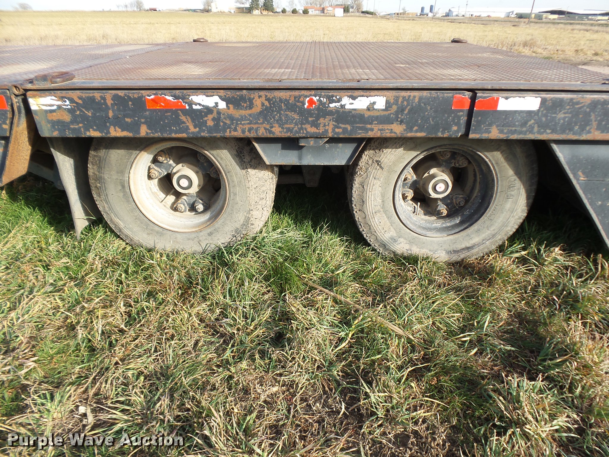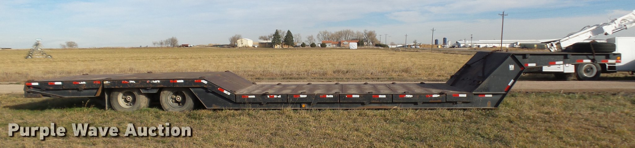 Purple Wave is selling a used Equip. Trailer in Colorado. This item is a 1989 Trail King TK60HTXL462 double drop deck equipment trailer with the following: 46' overall length, 8'L x 102"W top deck, 17'10" well length, 14'4" rear deck length, 6'L hydraulic ramps, 35"L hydratail, Steel pullout outriggers, Steel deck, D-ring tie downs, Stake side pockets, Winch, Manual hydraulic controls, Recessed toolbox, Dual leg landing gear, Fifth wheel plate, Tandem axle, Spring suspension, Air brakes, Steel wheels, 10R17.5 tires, GVWR 77,200 lbs, GAWR 17,640 lbs