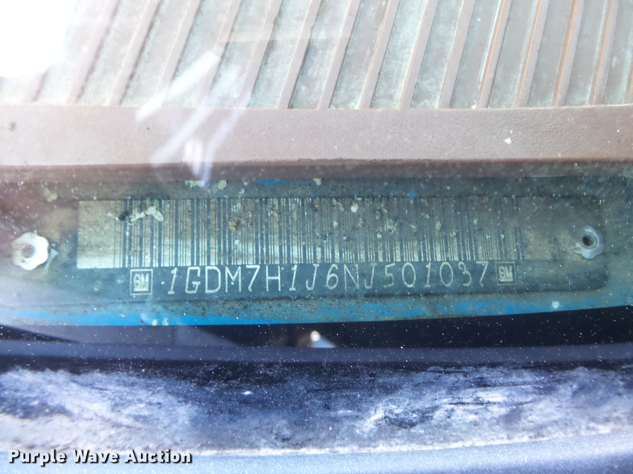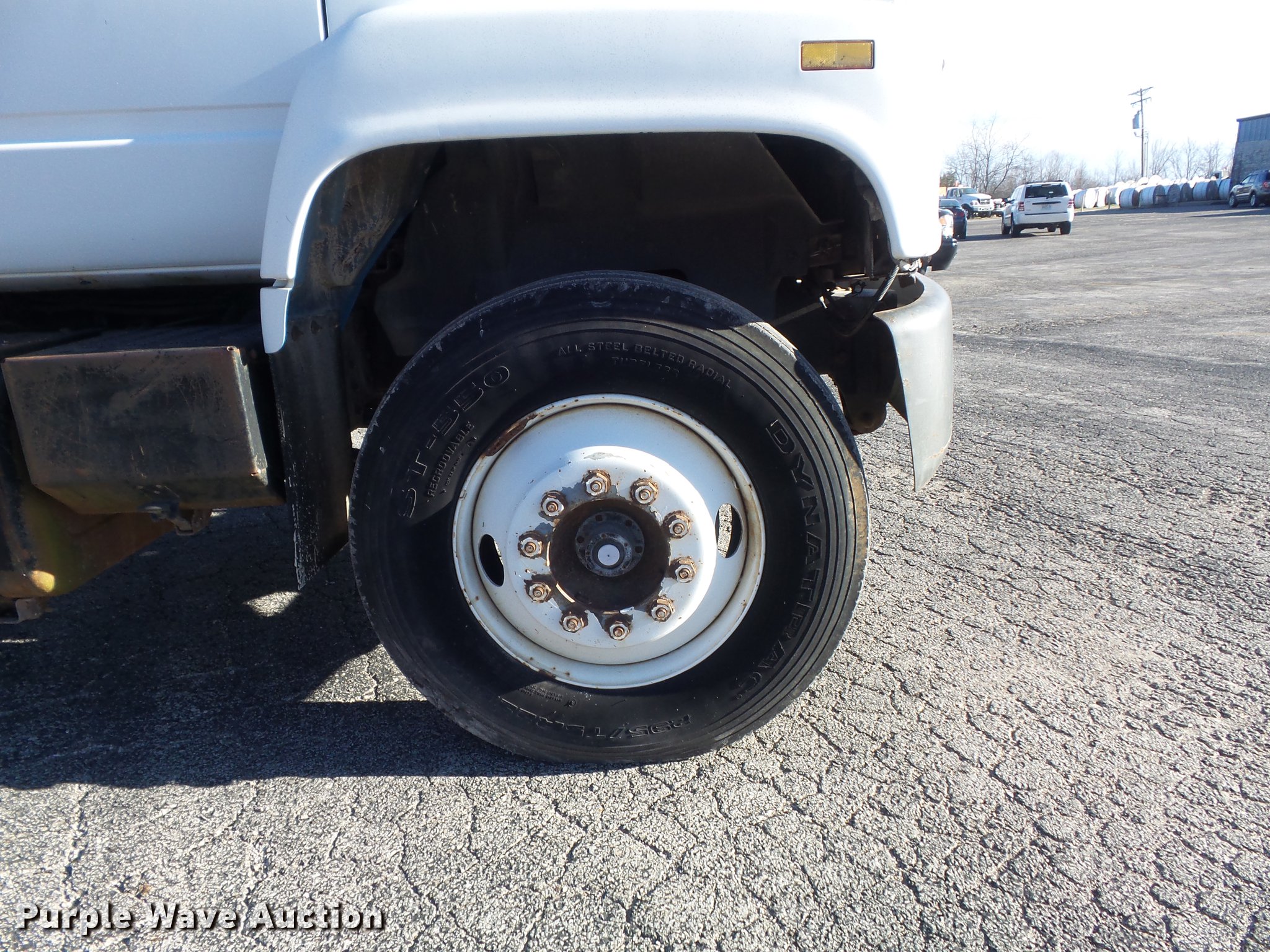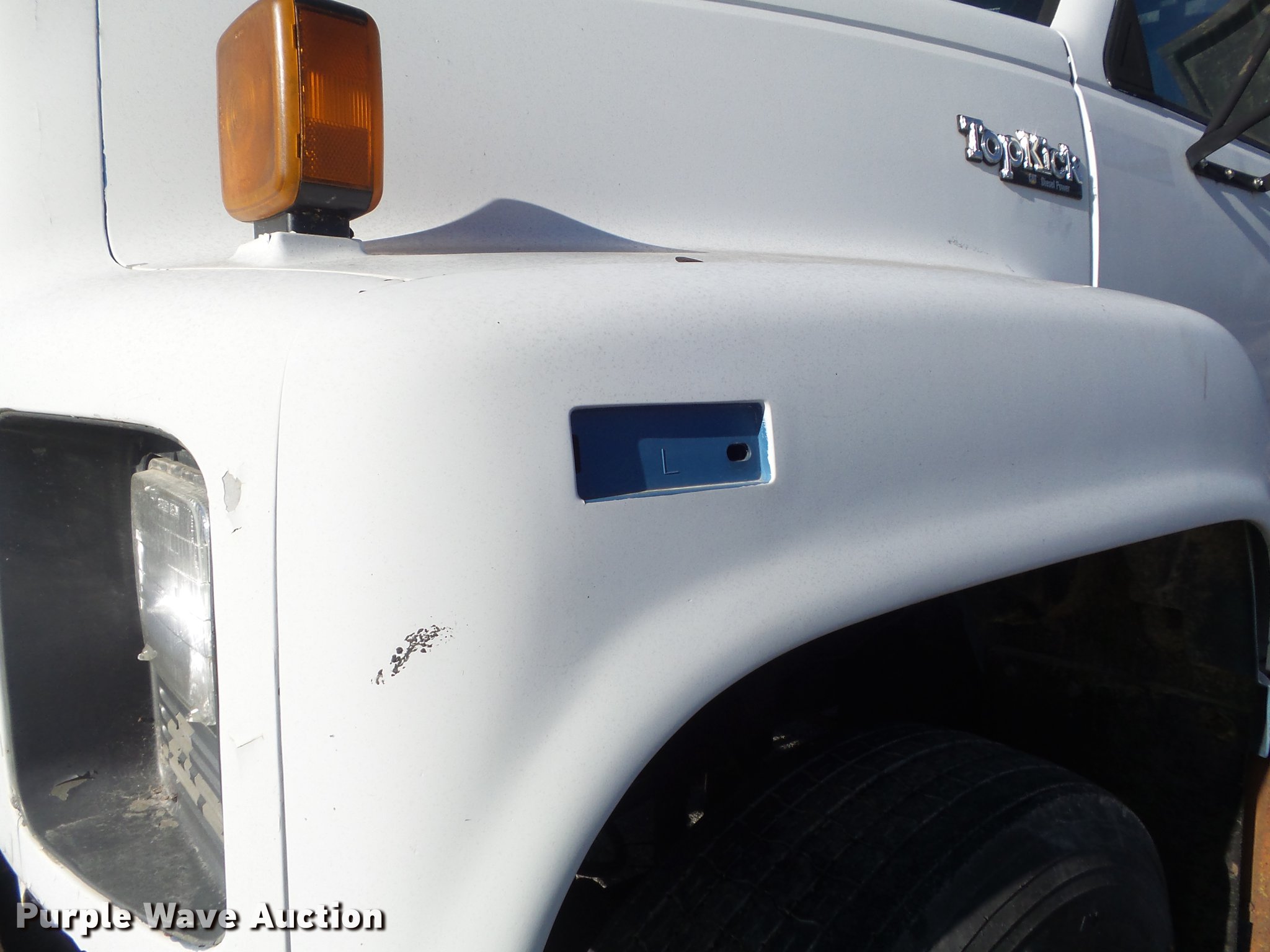 Purple Wave is selling a used Flat Bed Truck in Missouri. This item is a 1992 GMC TopKick flatbed truck with the following: 429,767 miles on odometer, Caterpillar 3116 6.6L six cylinder turbo diesel engine, 215 HP, Serial 7HJ04376, Six speed manual transmission, Single axle, AC, AM/FM/cassette, Air suspension seat, Brake controller, Beacon light, 15'L x 96"W flatbed, Steel floor, Stake pockets, Removable sides, Toolbox, Delta fuel tank, 50 gallon capacity, Hand pump,, Dual fuel tanks, Pintle hitch, Trailer wiring, Spring suspension, Air brakes, 198" wheelbase, 295/75R22.5 front tires, 275/80R22.5 rear tires, GVWR 30,000 lbs