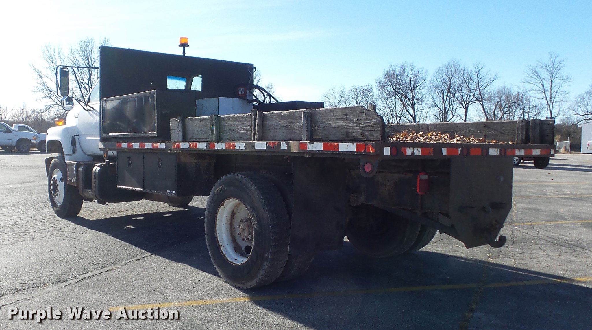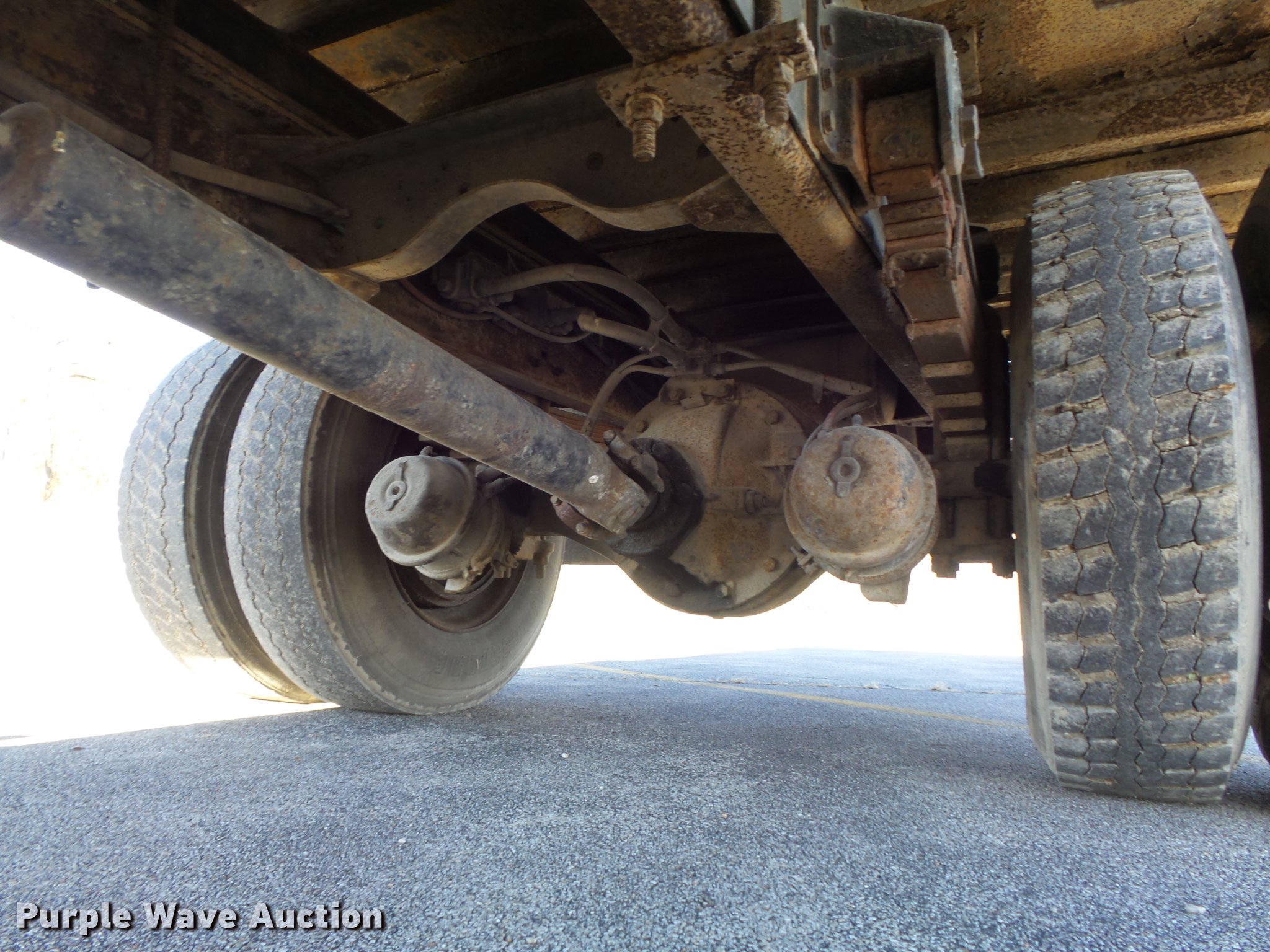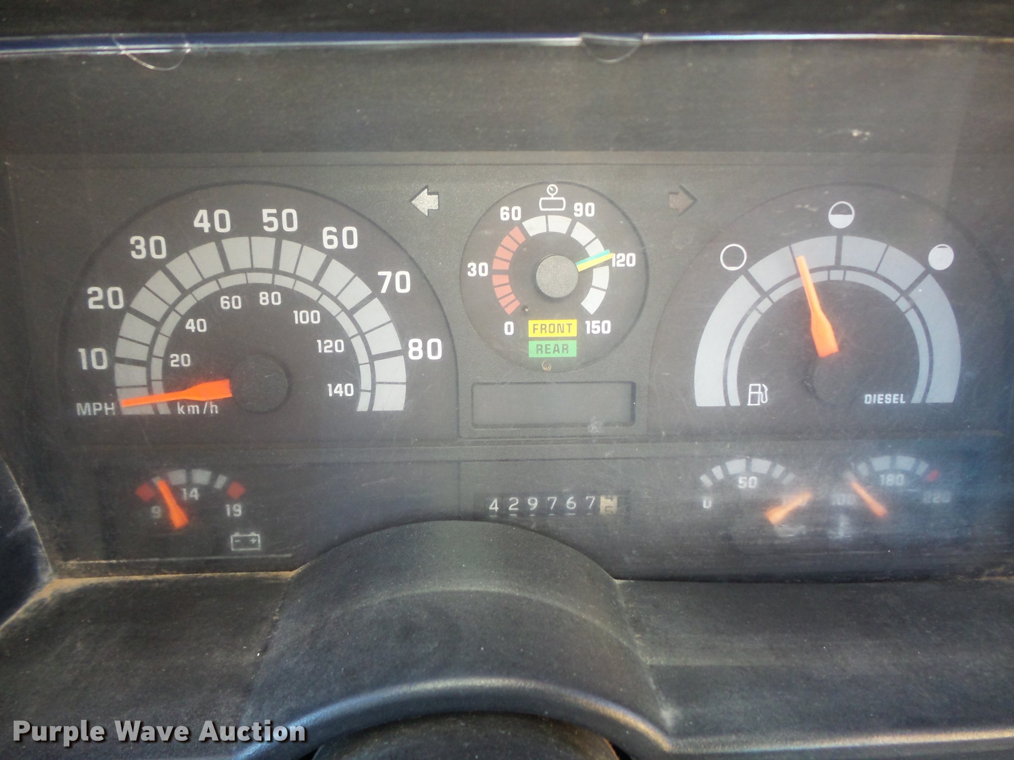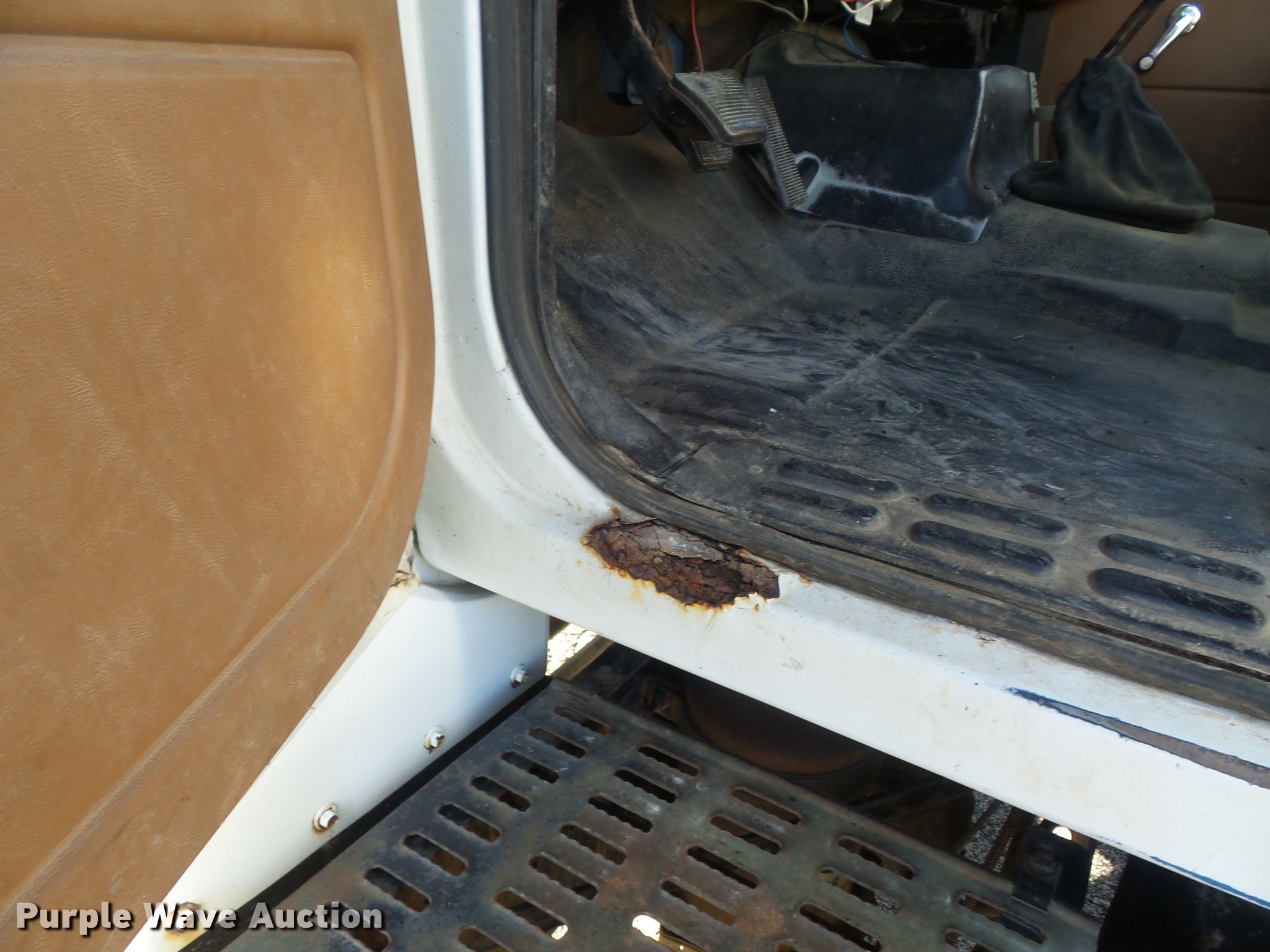 Purple Wave is selling a used Flat Bed Truck in Missouri. This item is a 1992 GMC TopKick flatbed truck with the following: 429,767 miles on odometer, Caterpillar 3116 6.6L six cylinder turbo diesel engine, 215 HP, Serial 7HJ04376, Six speed manual transmission, Single axle, AC, AM/FM/cassette, Air suspension seat, Brake controller, Beacon light, 15'L x 96"W flatbed, Steel floor, Stake pockets, Removable sides, Toolbox, Delta fuel tank, 50 gallon capacity, Hand pump,, Dual fuel tanks, Pintle hitch, Trailer wiring, Spring suspension, Air brakes, 198" wheelbase, 295/75R22.5 front tires, 275/80R22.5 rear tires, GVWR 30,000 lbs
