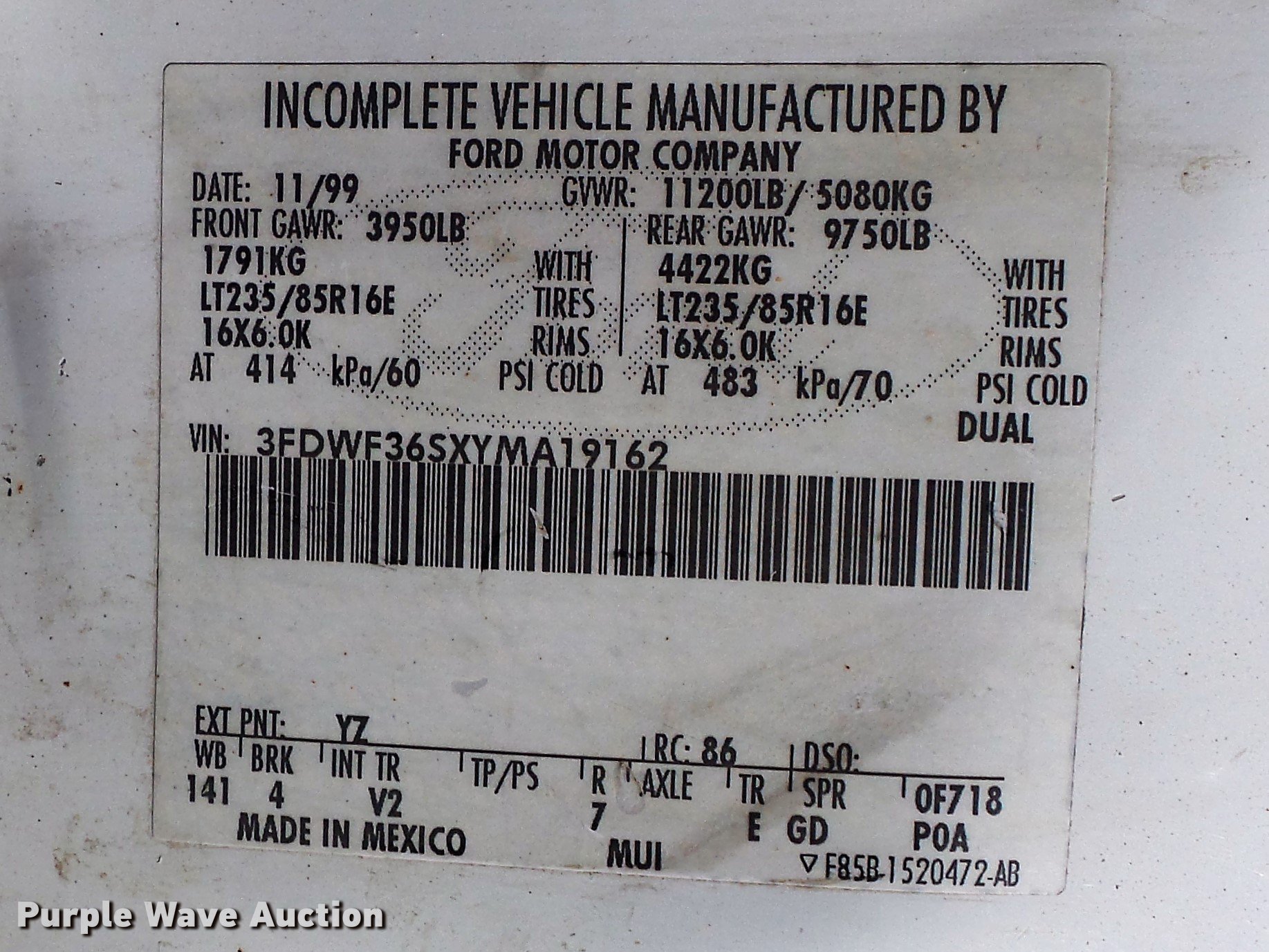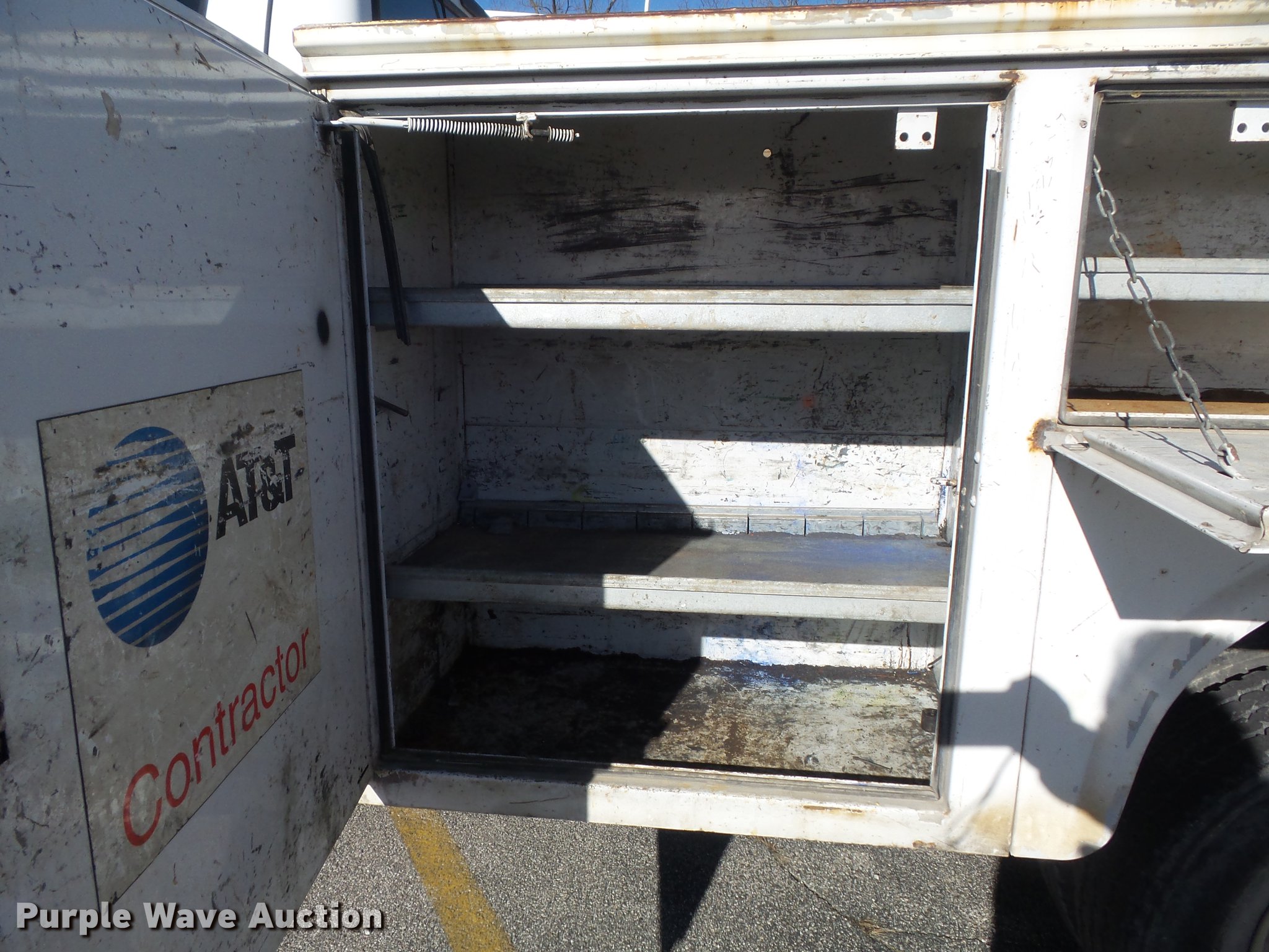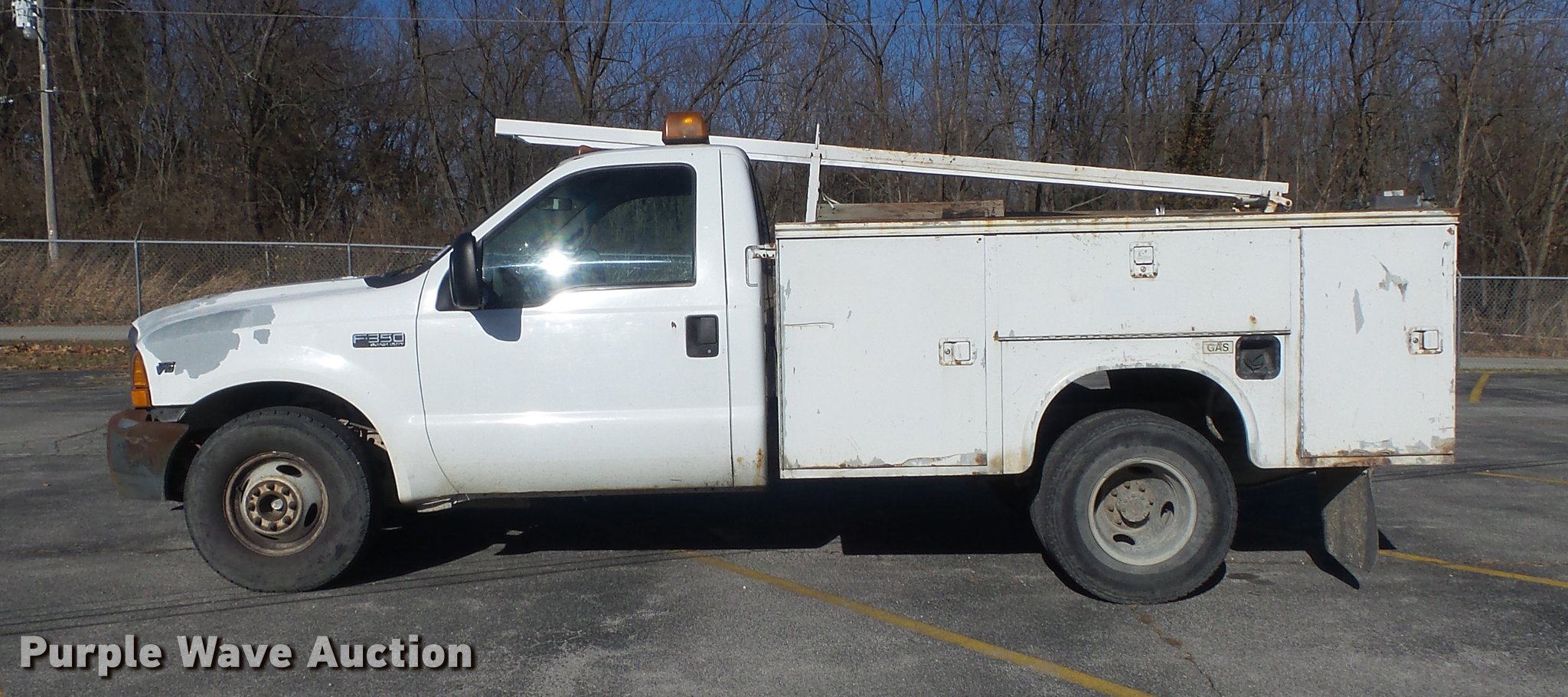 Purple Wave is selling a used 3/4 or 1 Ton Pickup or Van in Missouri. This item is a 2000 Ford F350 Super Duty XL utility bed pickup truck with the following: 252,894 miles on odometer, 6.8L V10 SOHC gas engine, Automatic transmission, Single axle, AC and heat, AM/FM, Brake controller, Front tow hooks, Beacon light, Knapheide 6108D utility bed, Shelving, 110V power inverter, Single fuel tank, Pintle hitch, Trailer wiring, Spring suspension, Hydraulic brakes, 141" wheelbase, LT235/85R16 tires, GVWR 11,200 lbs, Cracked windshield