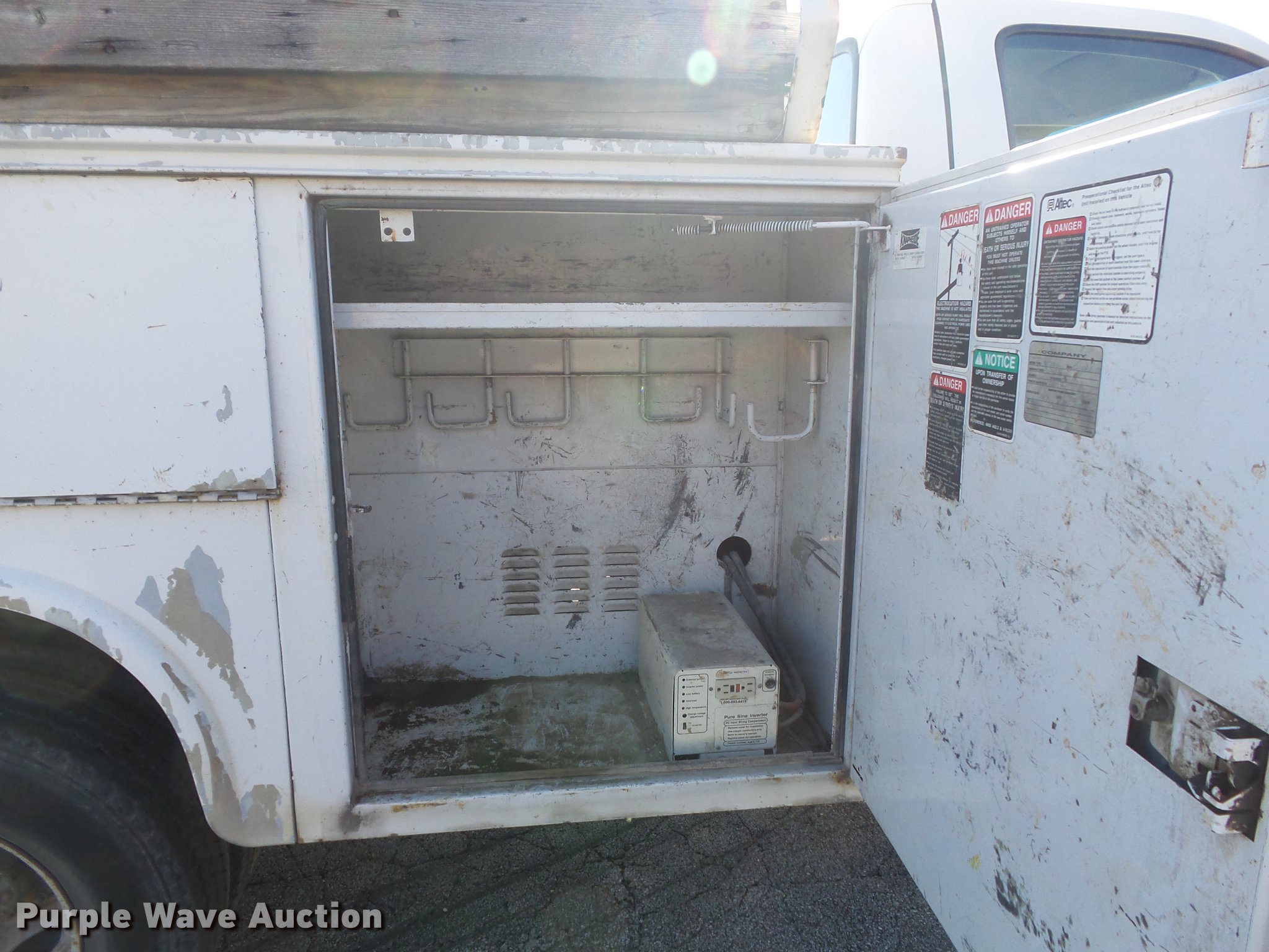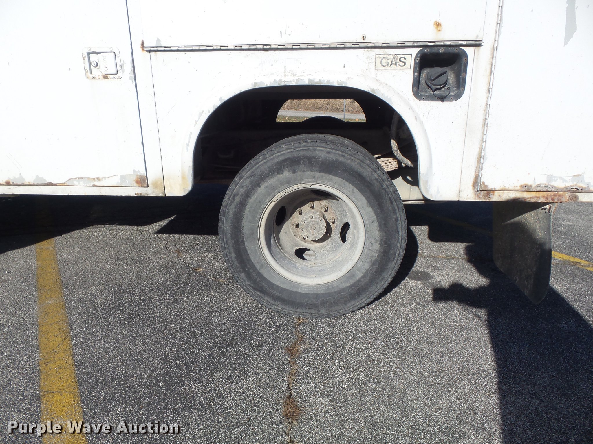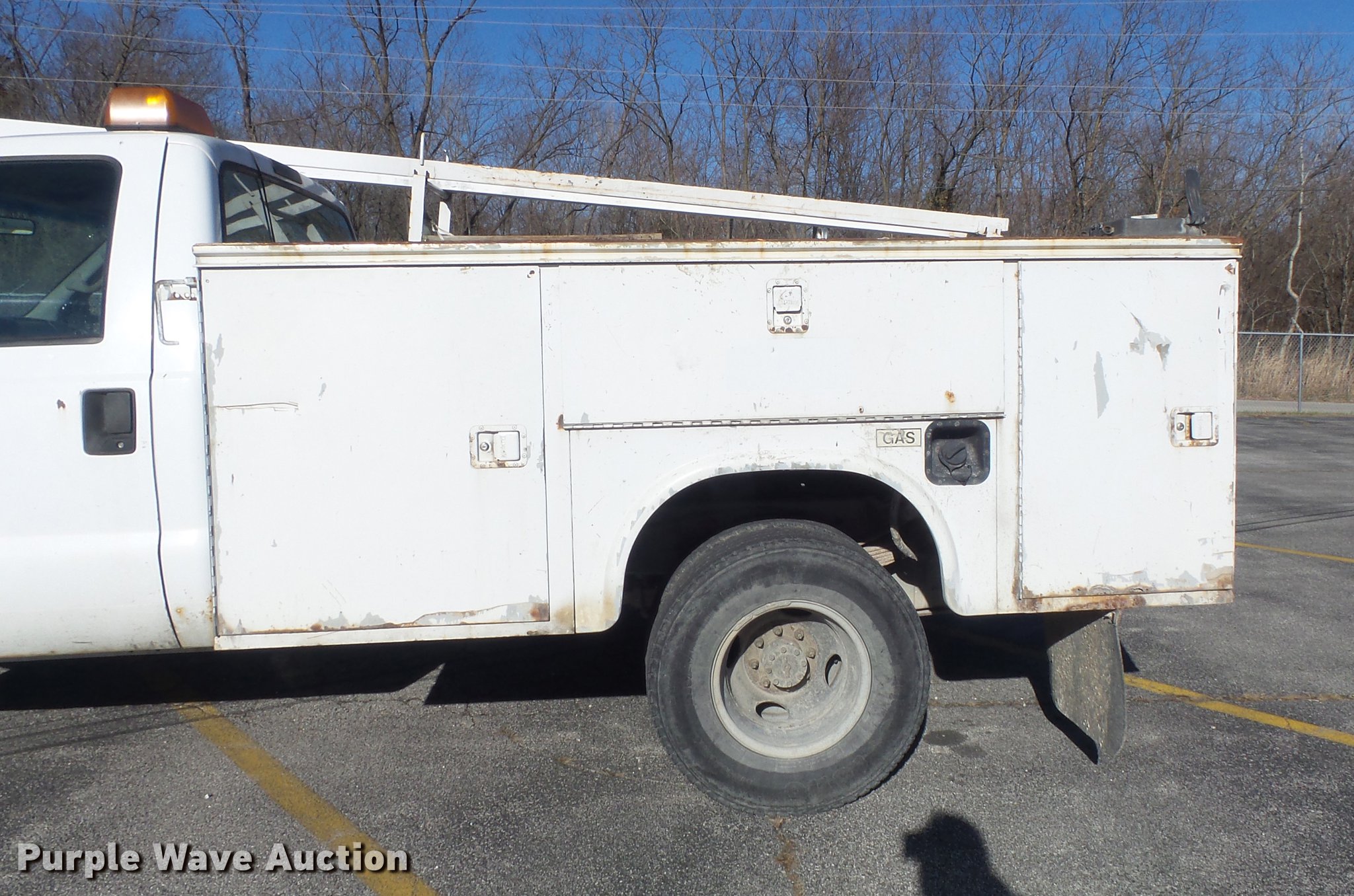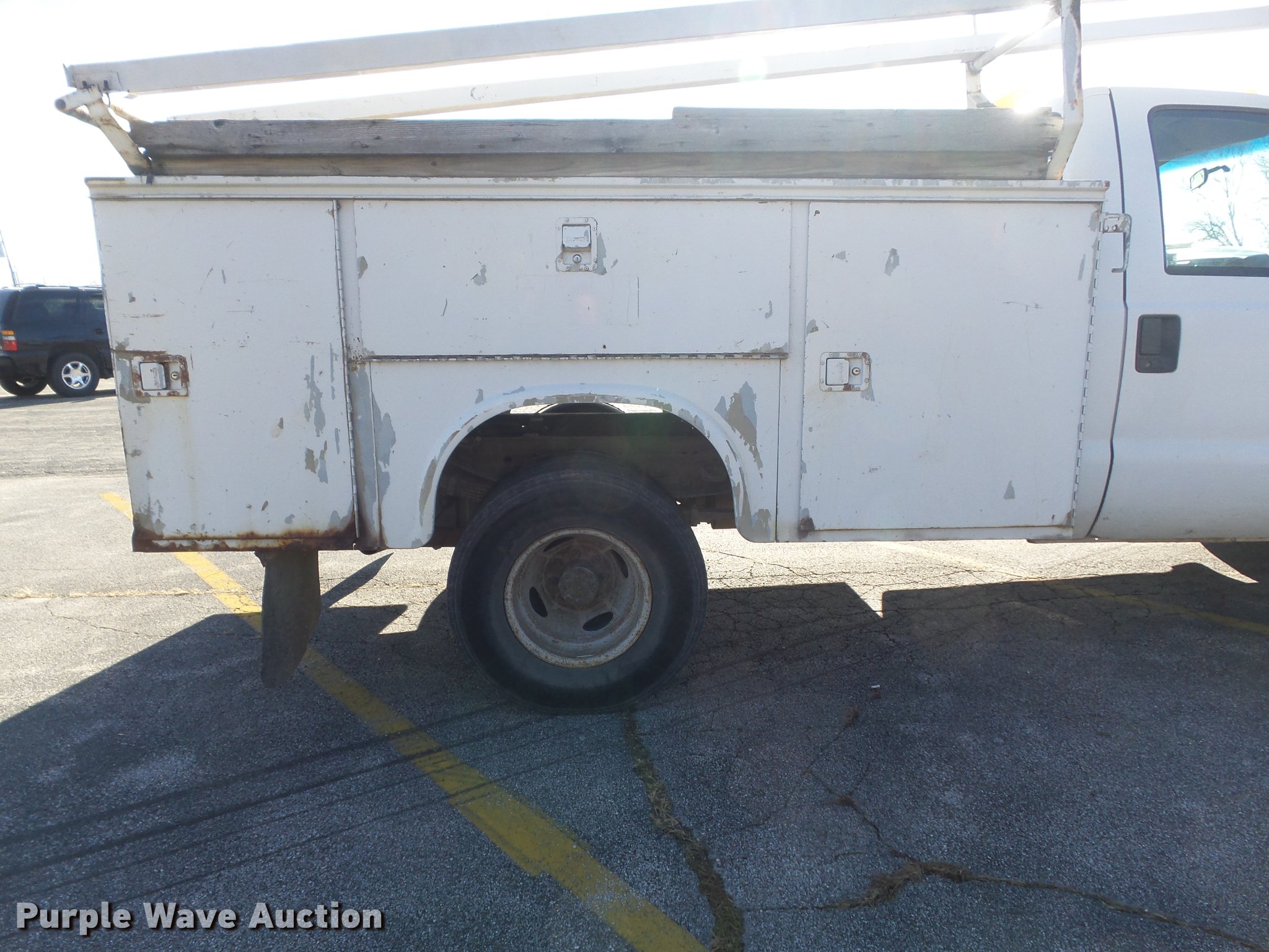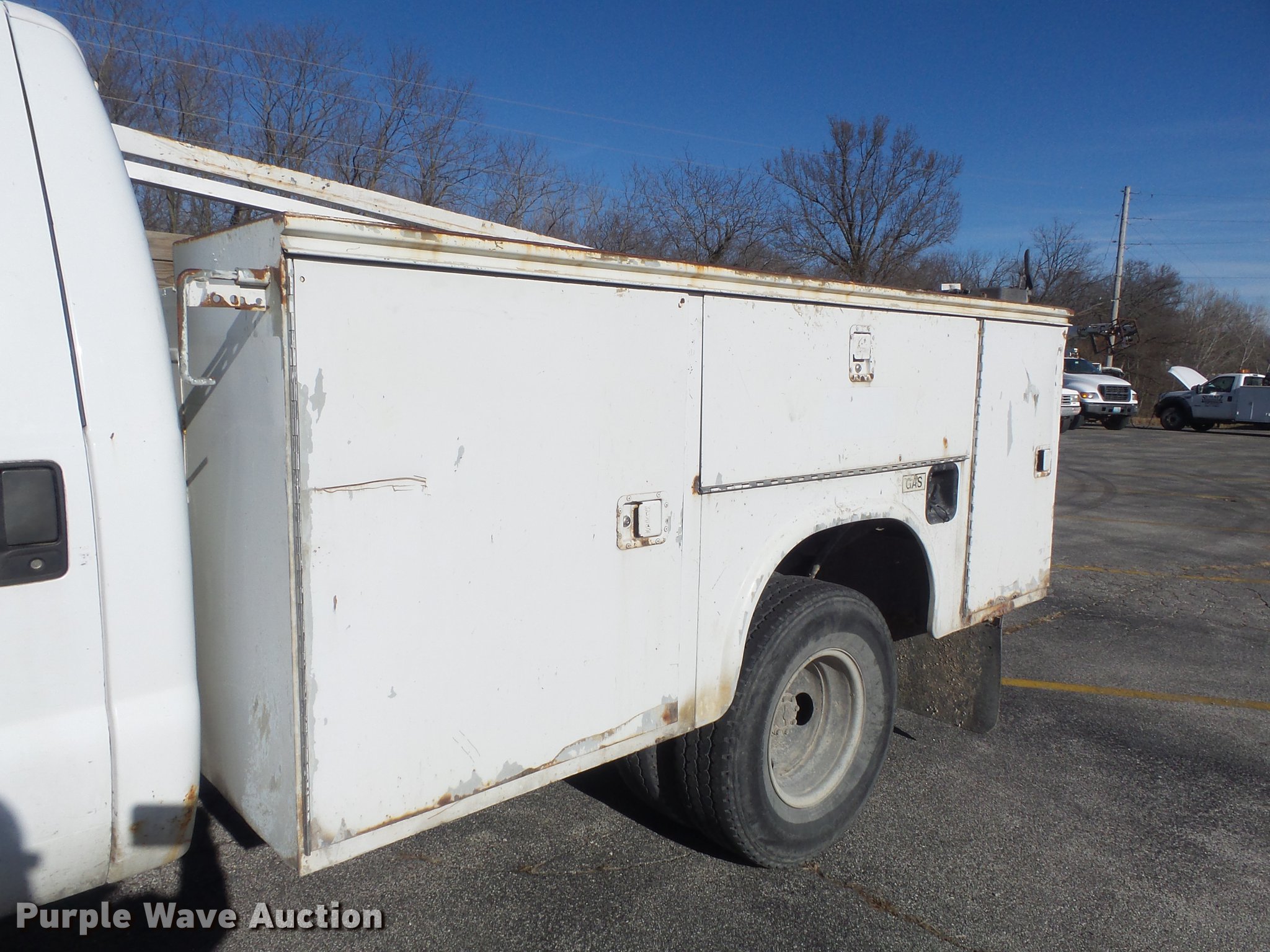 2000 Ford F350 Super Duty XL utility bed pickup truck. 252,894 miles on odometer, 6.8L V10 SOHC gas engine, Automatic transmission, Single axle, AC and heat, AM/FM, Brake controller, Front tow hooks, Beacon light, Knapheide 6108D utility bed Shelving, 110V power inverter, Single fuel tank, Pintle hitch, Trailer wiring, Spring suspension, Hydraulic brakes, 141" wheelbase, LT235/85R16 tires, GVWR 11,200 lbs, Cracked windshield. Missouri title. 3FDWF36SXYMA19162. Schatz Underground, Inc.. Villa Ridge, MO 63089