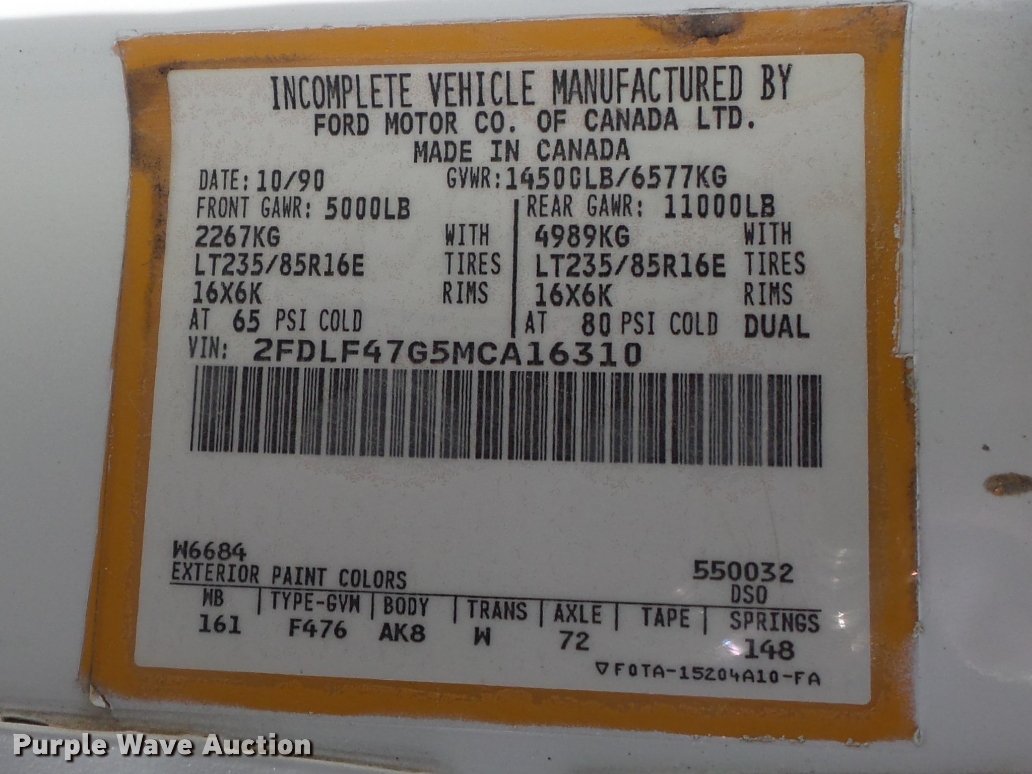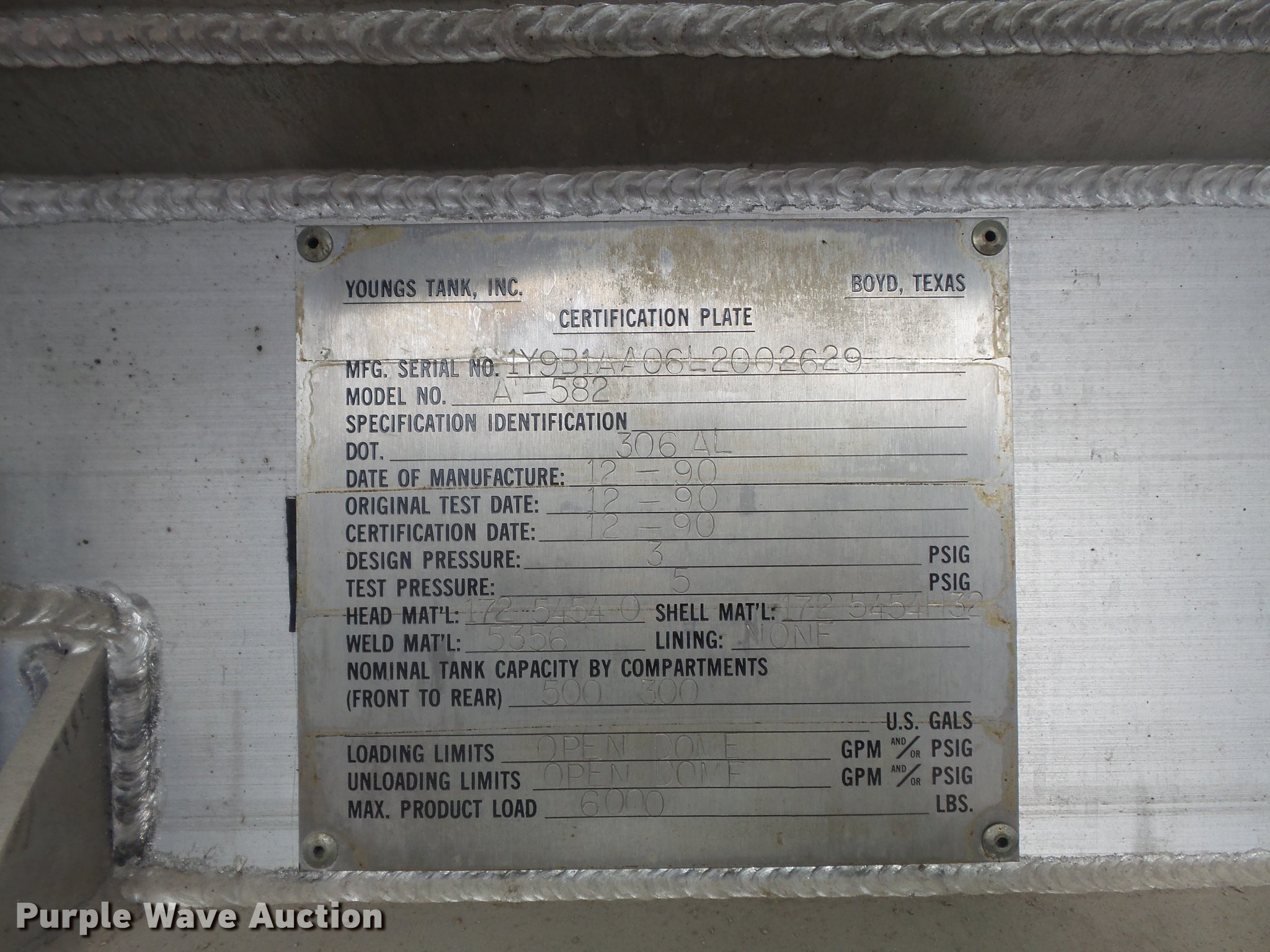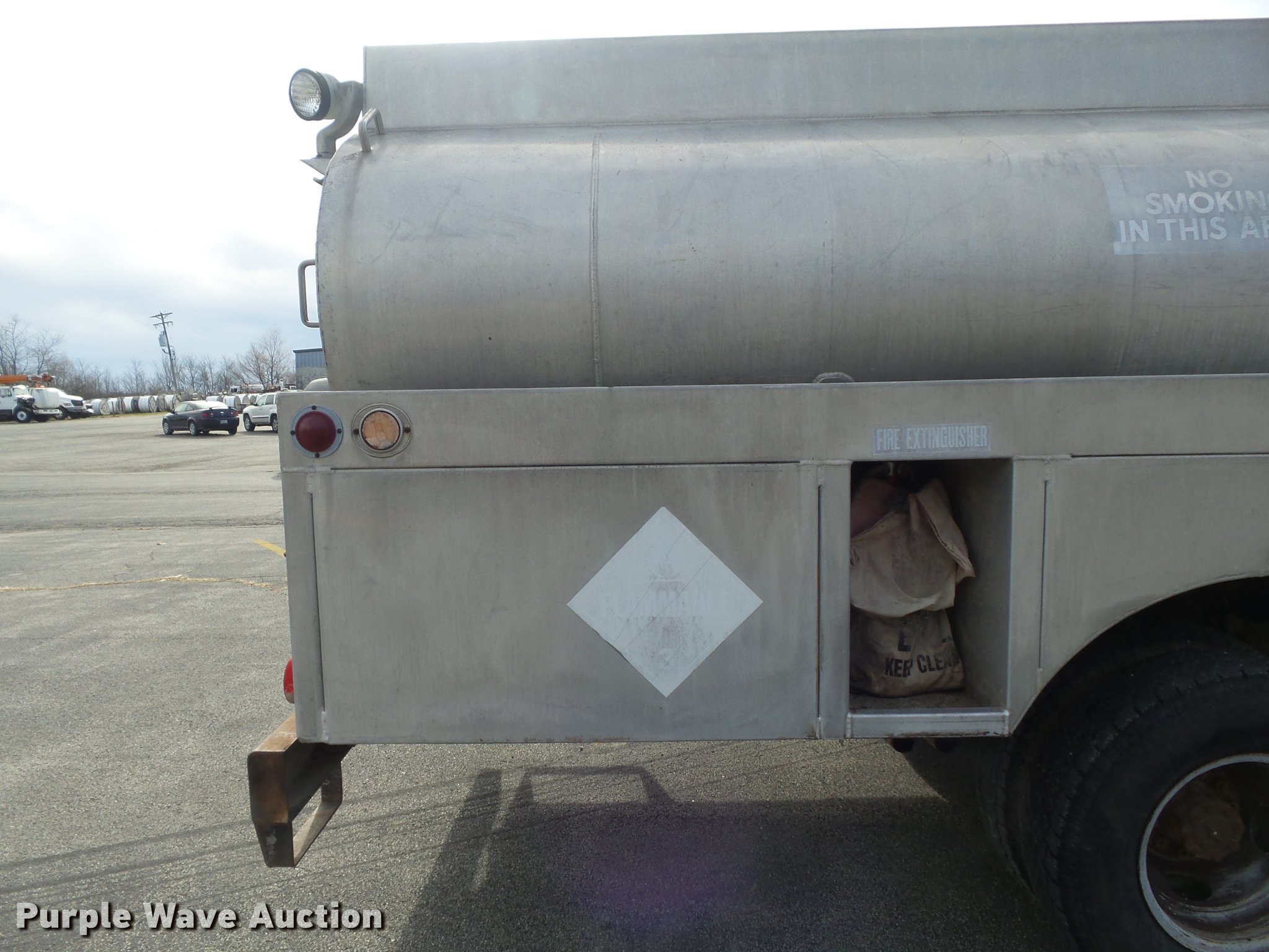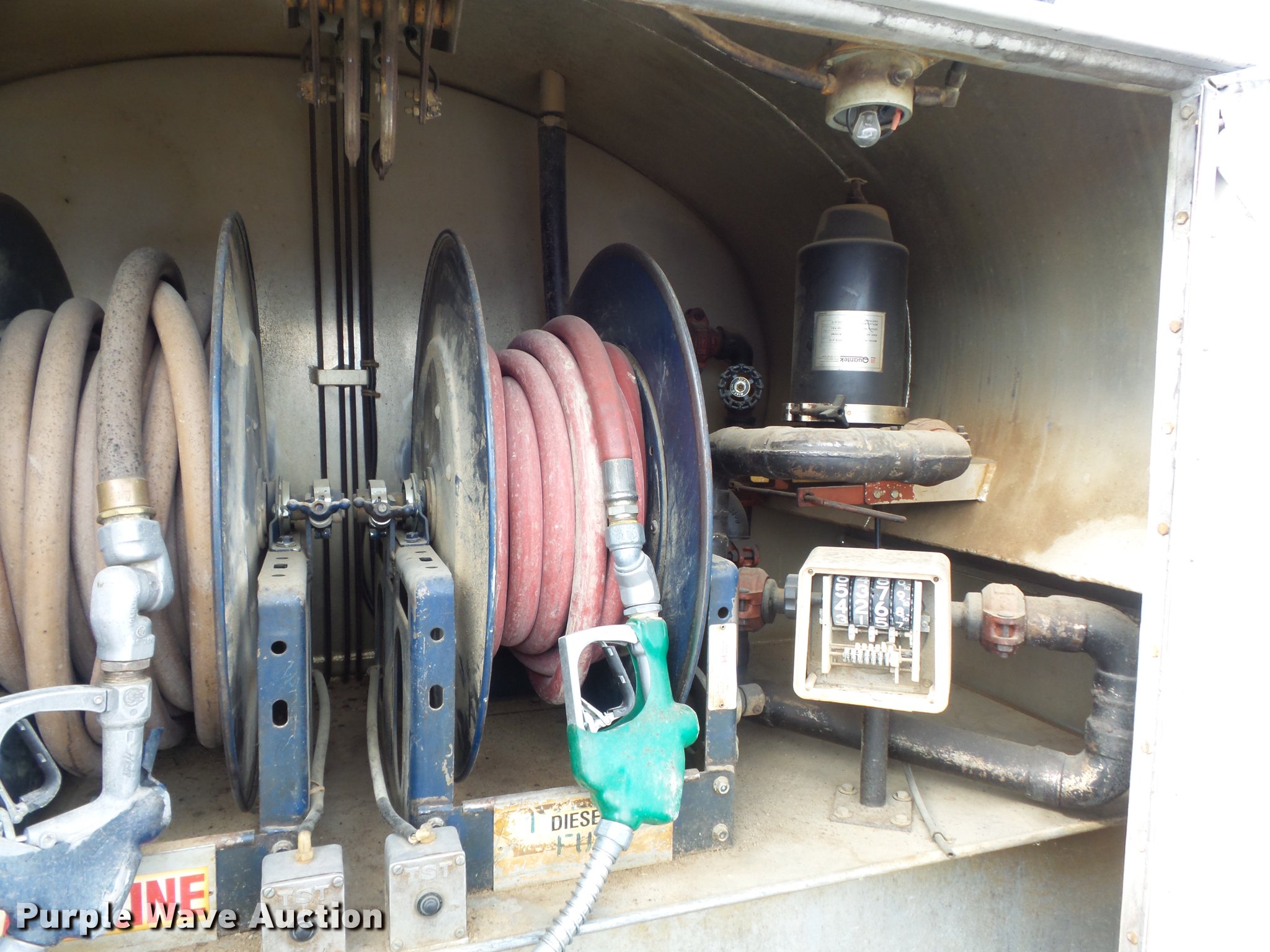 Purple Wave is selling a used Fuel Truck in Missouri. This item is a 1991 Ford F450 Super Duty fuel truck with the following: 4,700 miles on odometer, 7.5L V8 gas engine, Five speed manual transmission, Single axle, Heat, PTO, Tri-State Tank Co. A-582 fuel bed, (2) compartments, 500 gallon capacity, 300 gallon capacity, (2) hose reels, 1.5" hose, (2) Tokheim metered pumps, Nozzles,, Single fuel tank, Spring suspension, Hydraulic brakes, 161" wheelbase, LT235/85R16 tires, GVWR 14,500 lbs